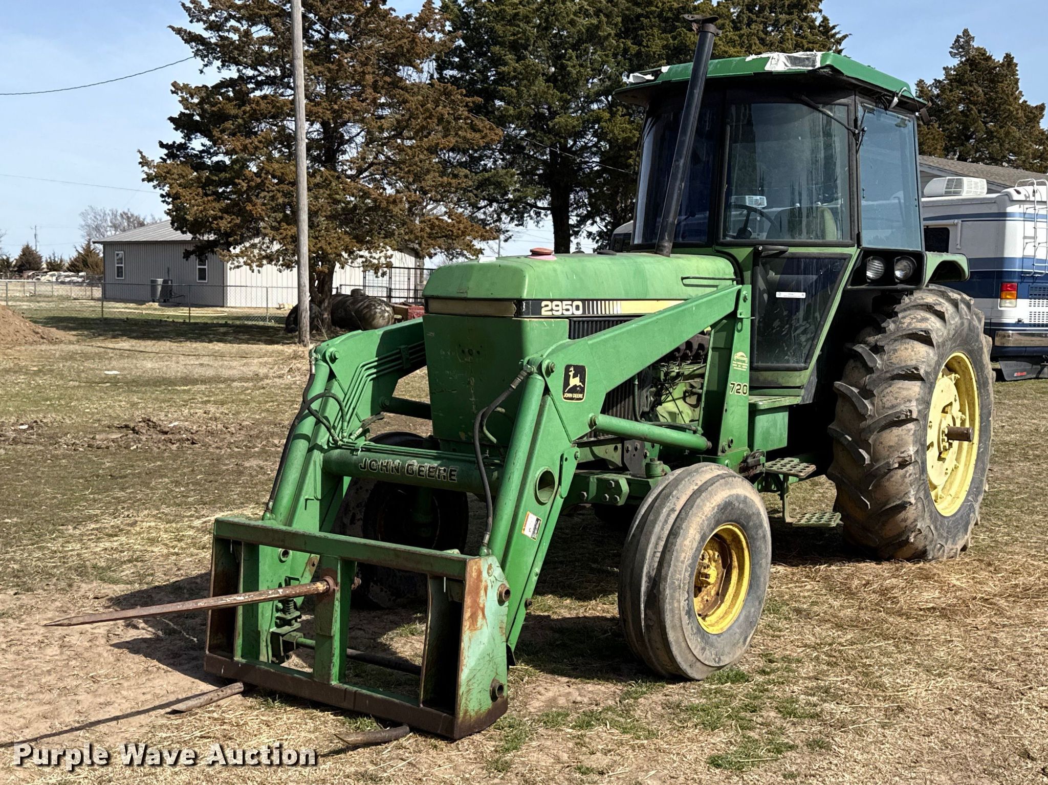 Purple Wave is selling a used Tractor in Oklahoma. This item is a 1983 John Deere 2950 tractor with the following: Hours: 1,932 on meter, Serial: L02950T463140