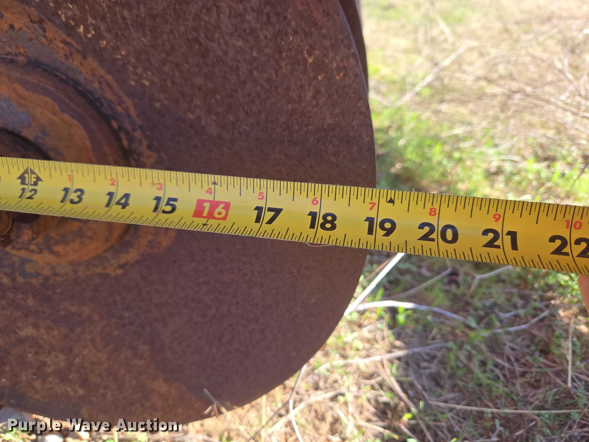 Purple Wave is selling a used Disk in Oklahoma. This item is a Cook 18 off-set disk with the following: Overall width: 15' 6", Serial: OSF18115