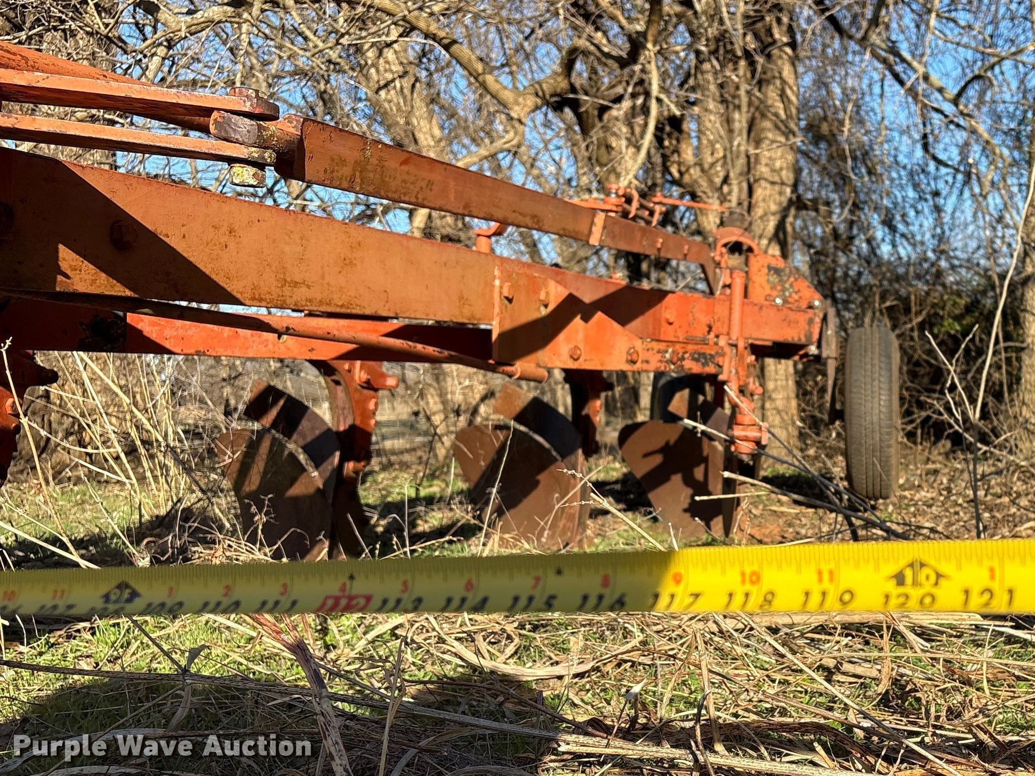 Purple Wave is selling a used Plow in Oklahoma. This item is a Allis-Chalmers plow with the following: Overall width: 120"