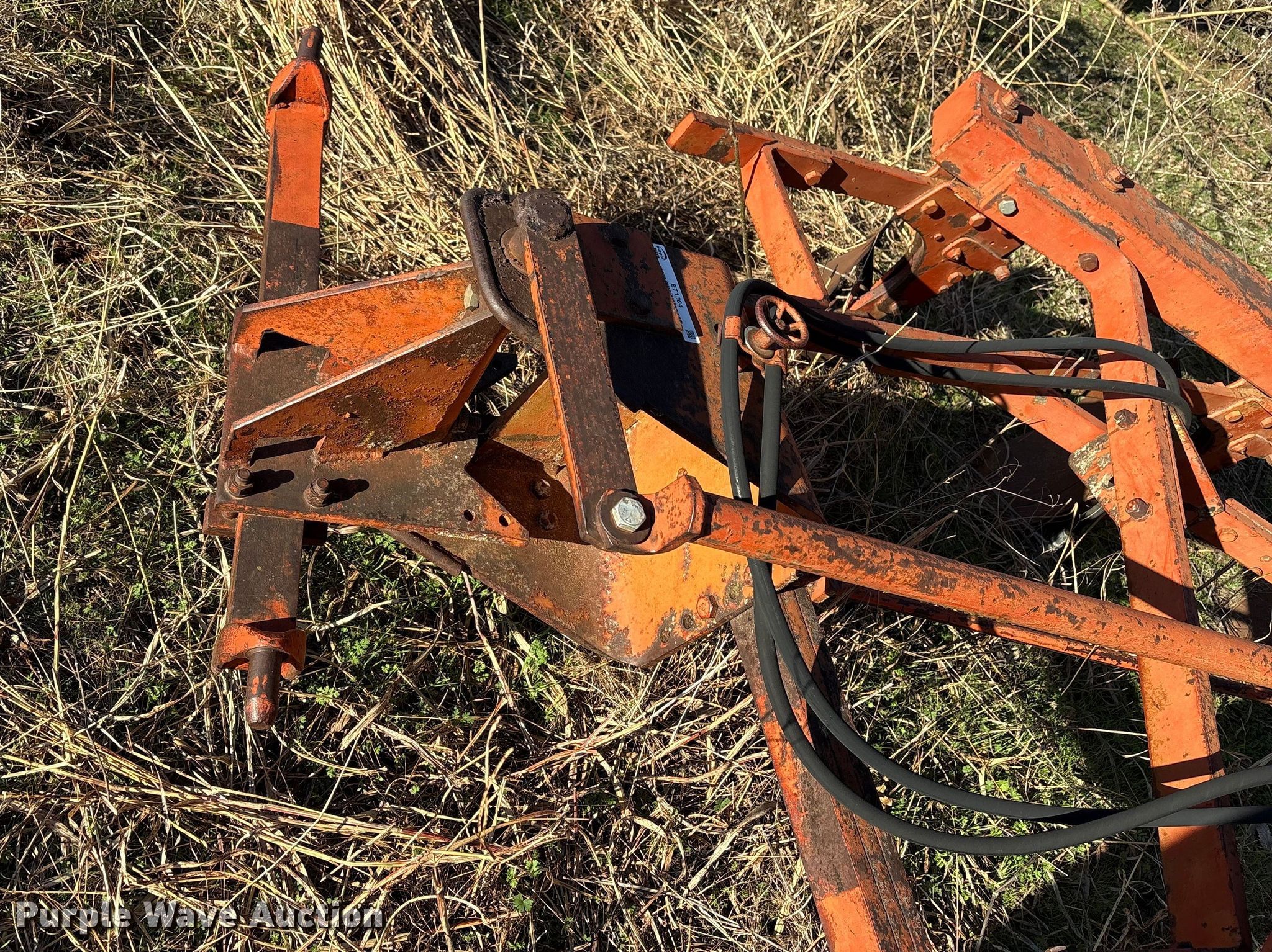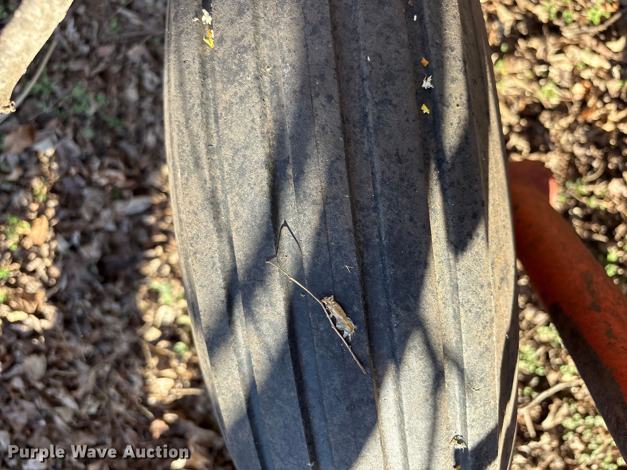 Allis-Chalmers plow. Overall width: 120". Features Diameter: 22", Spacing: 32", Hydraulic fold, Hitch: Three point. Tires Tire size: 185/75R14, Size: 6.70-15SL. Kouba Farms. Yukon, OK 73099