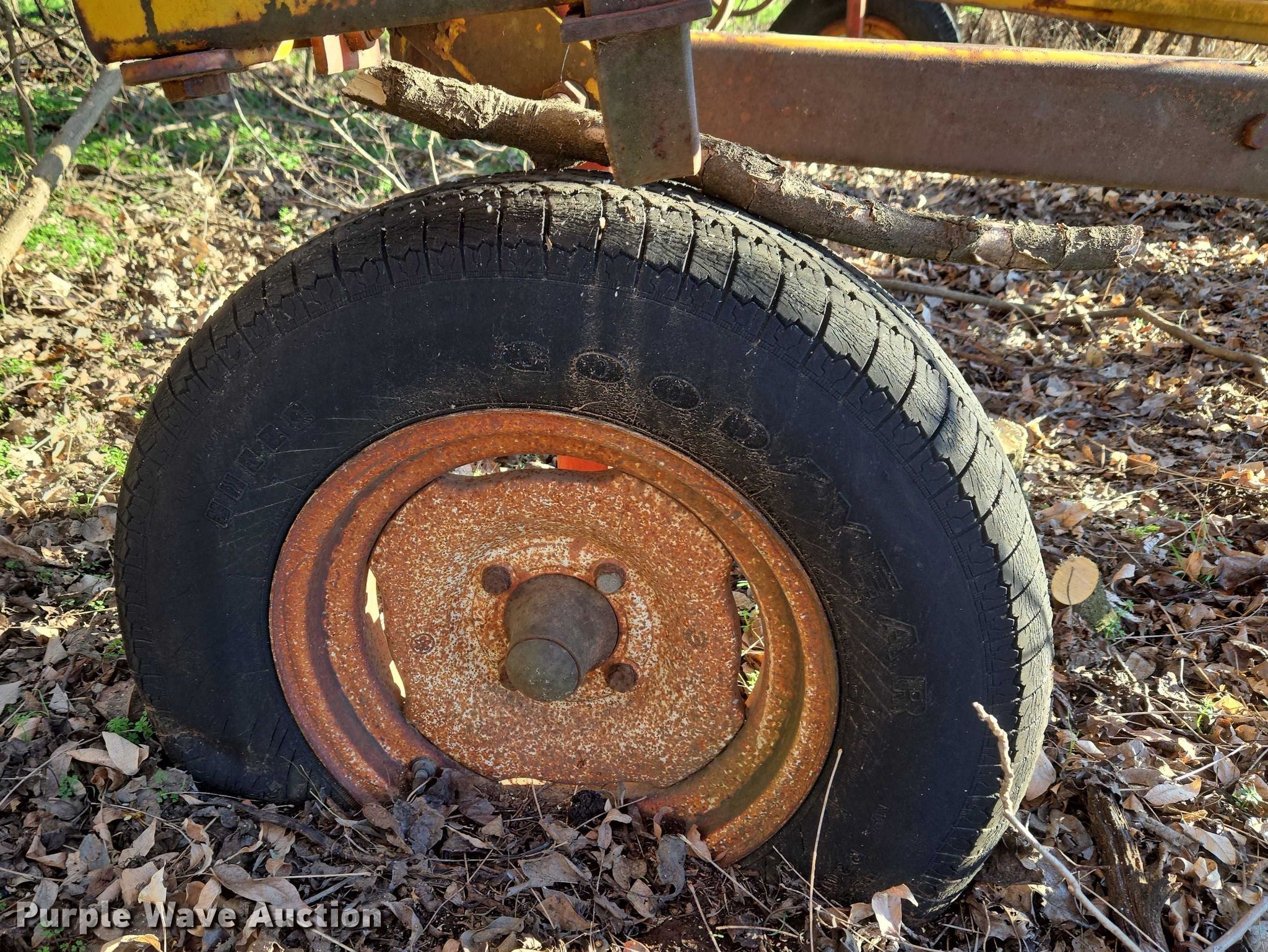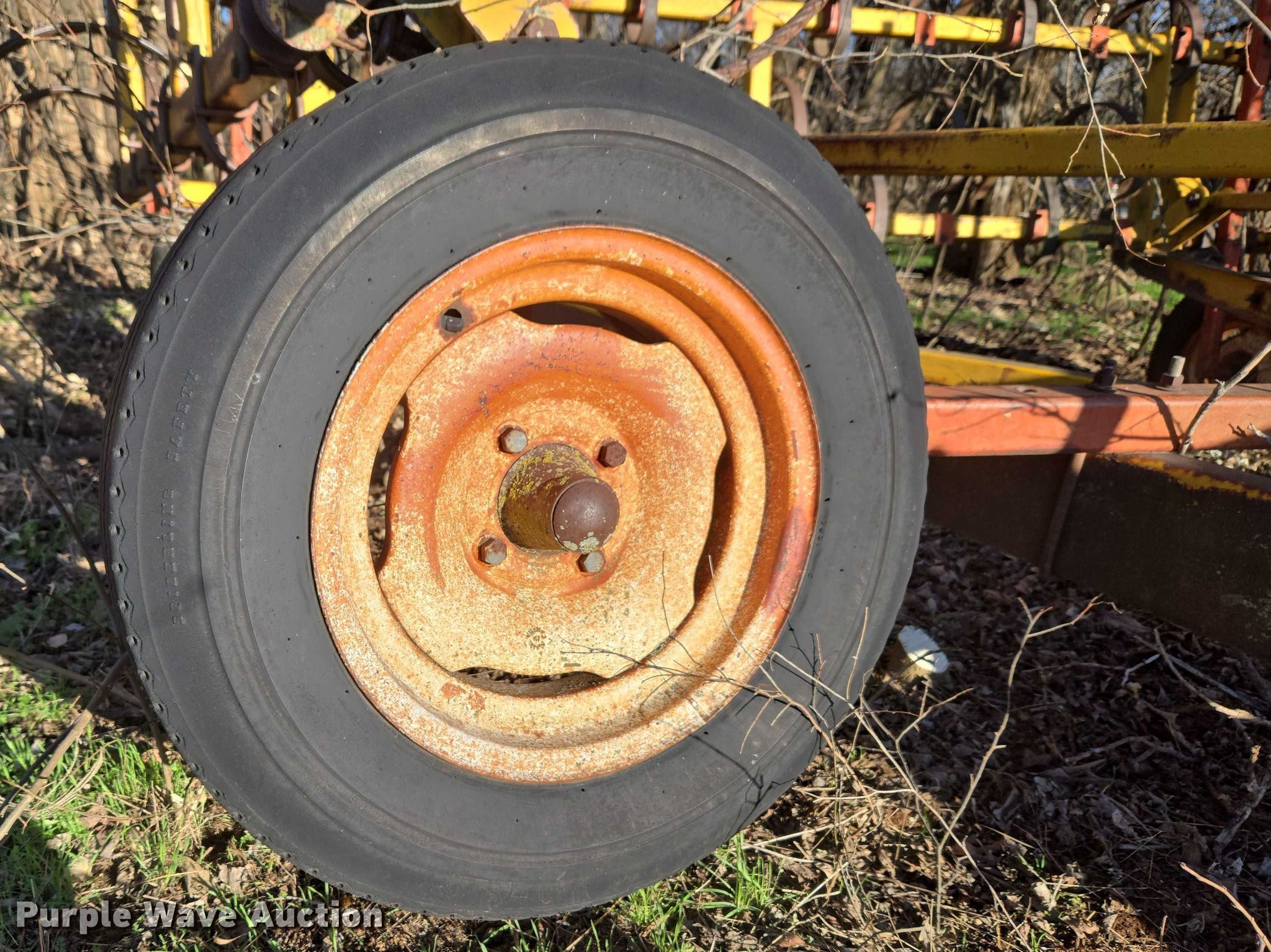 Chisel. Overall width: 28' 8", Serial: 2754. Features Shanks: 62, Sweep width: 2.25", Blade diameter Spacing: 24", Operation Hydraulic lift, Hydraulic fold. Tires Tire size: DOT 145. Notes Flat tires. Kouba Farms. Yukon, OK 73099
