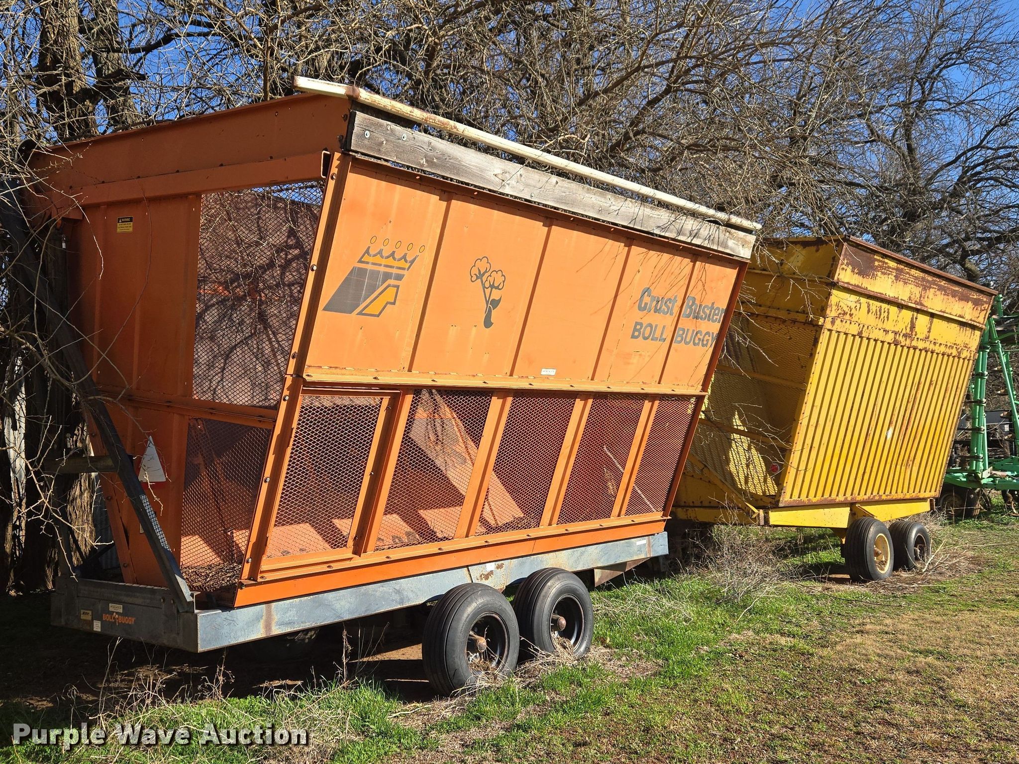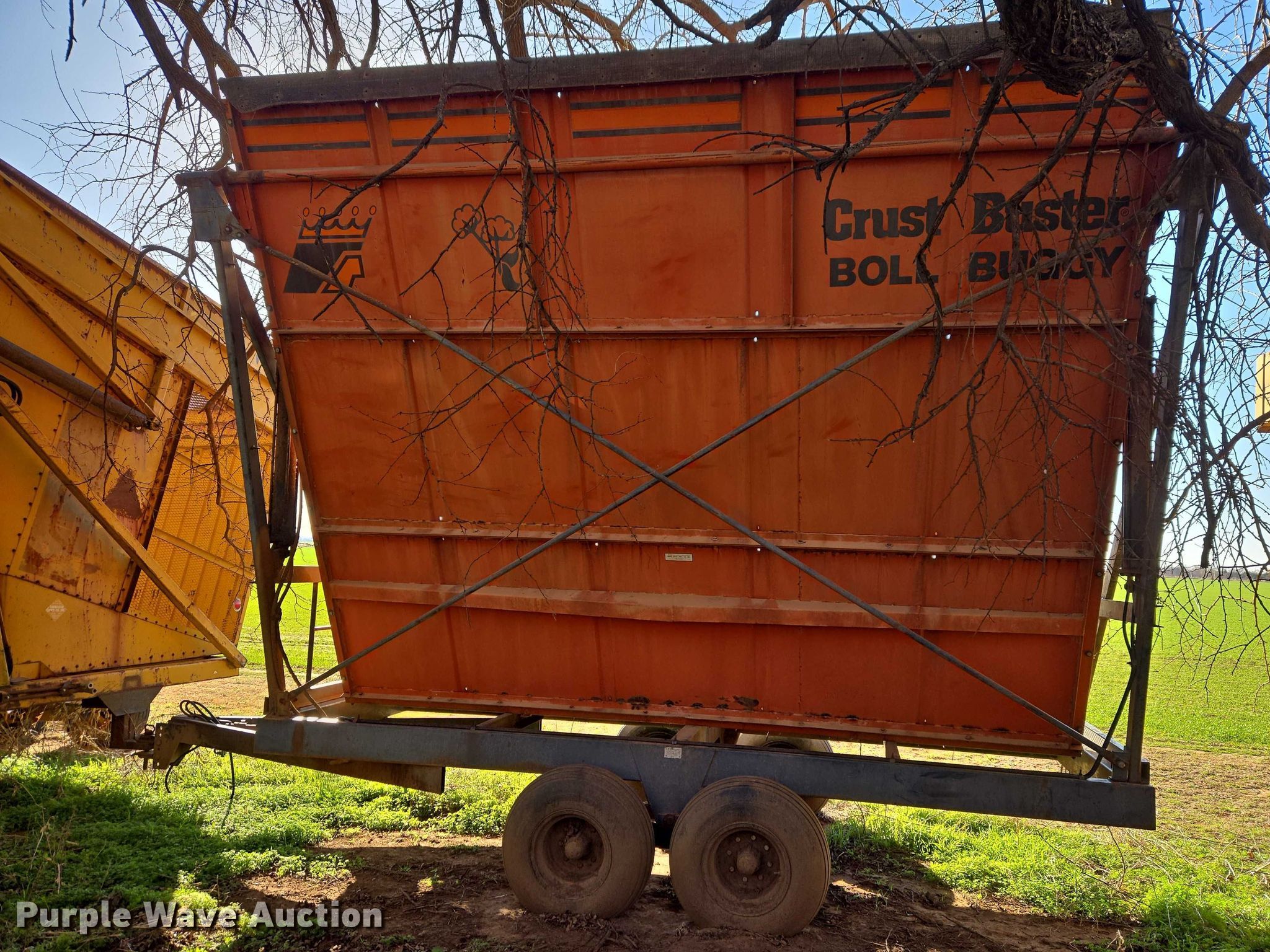 Purple Wave is selling a used Cotton Harvester Equip. in Oklahoma. This item is a (2) cotton wagons with the following: Crust Buster BB-REG 5D, Serial: 12082, GT Cotton Wagon, Serial: 809015