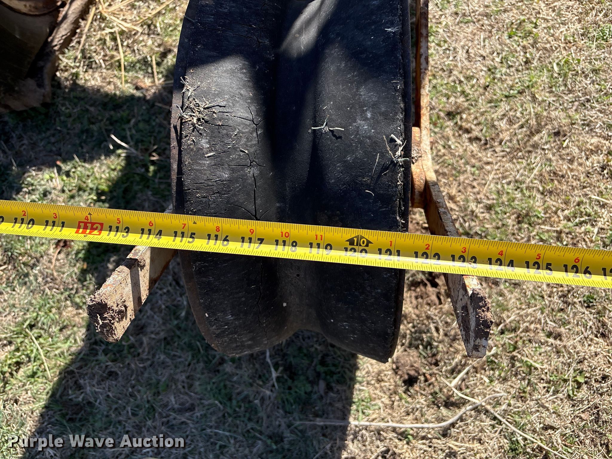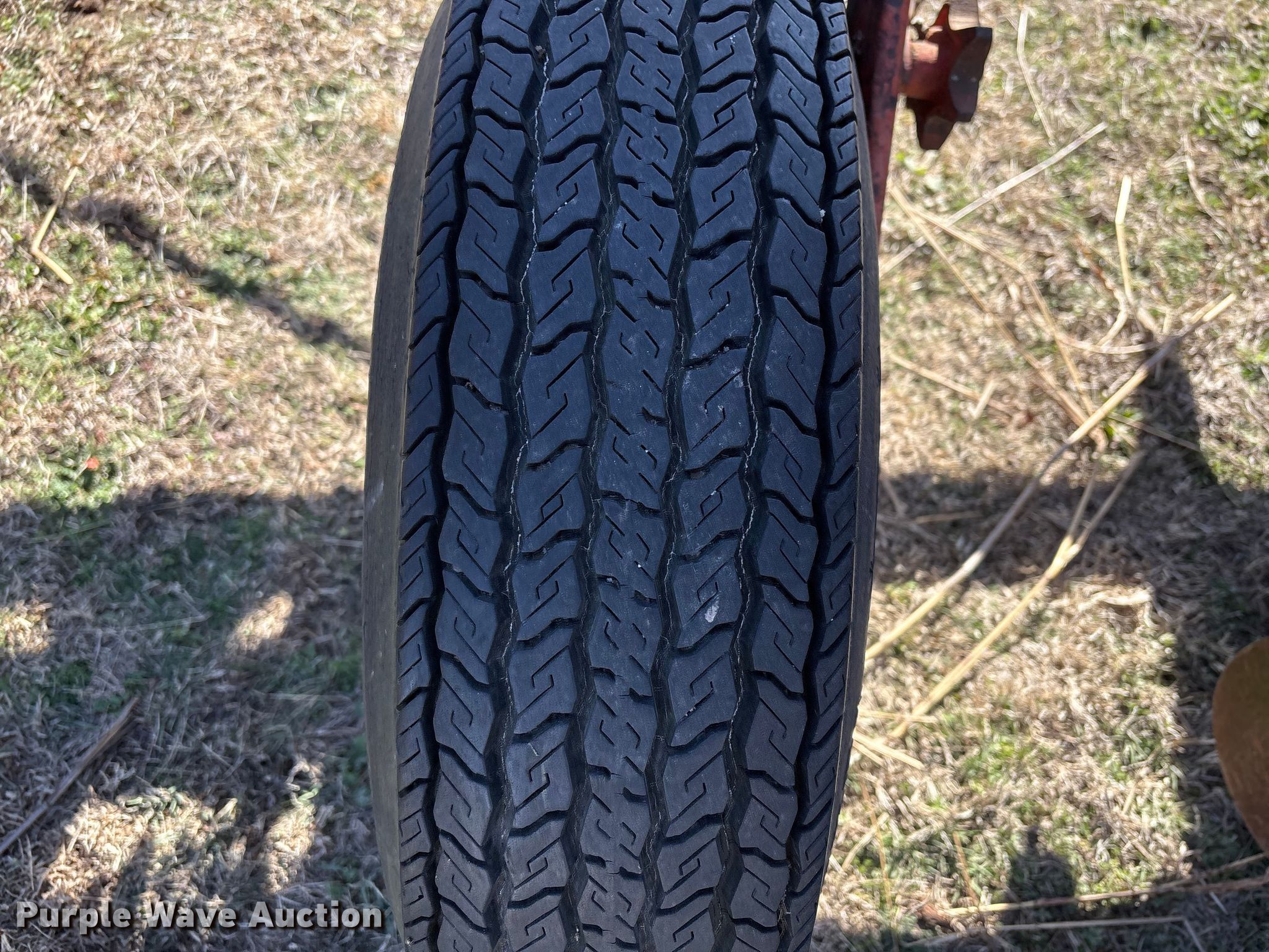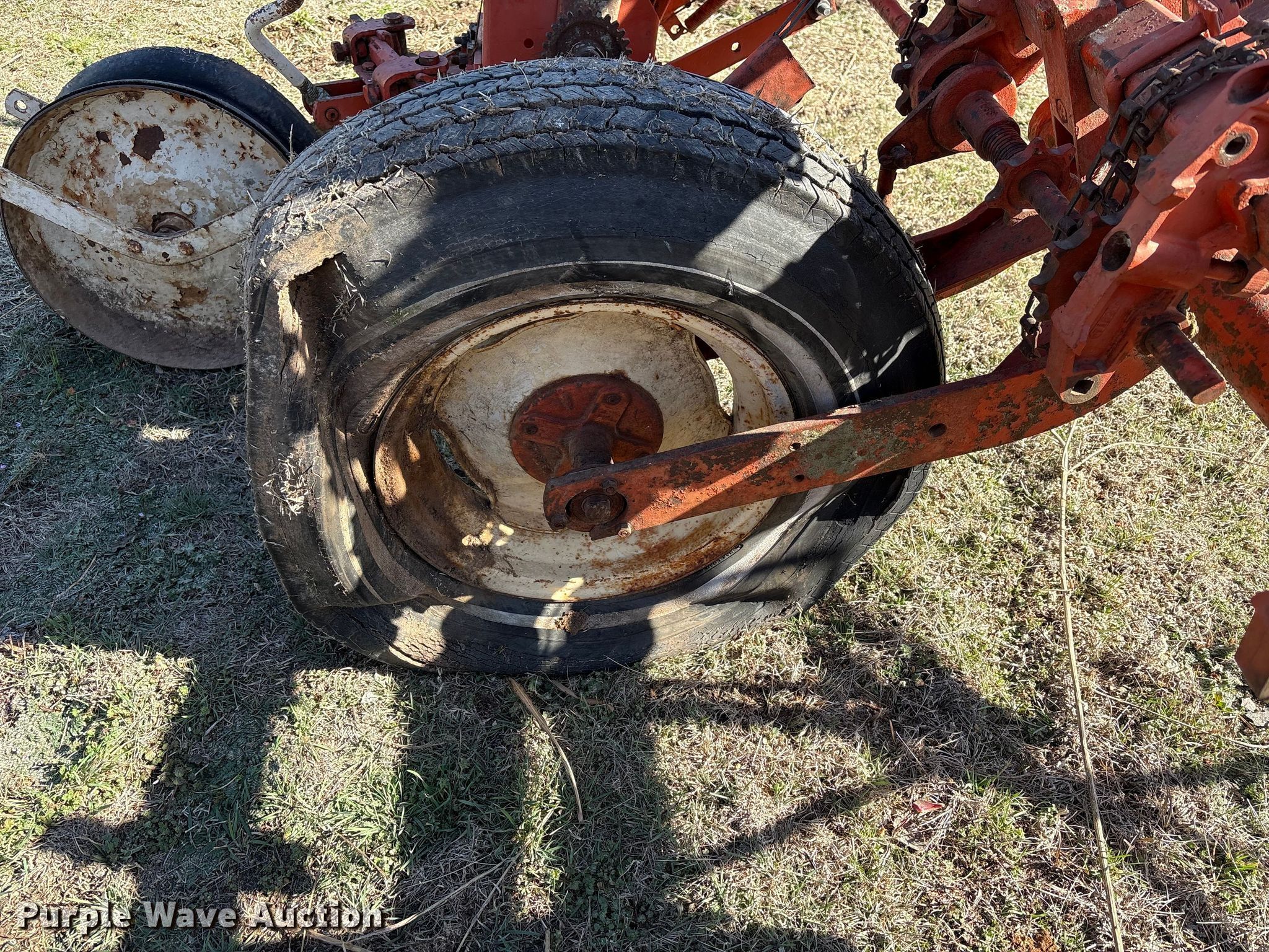 Case planter. Row units: 4, Row spacing: 118". Features Row units Meter drive: Ground, Disk openers: Double, Closing system: Single Type: Rubber, Cast.. Tires Transport tire size: 225/75B15. Notes Parts missing, Grain hoppers damaged, Flat tires, Non-operational unit. Kouba Farms. Yukon, OK 73099