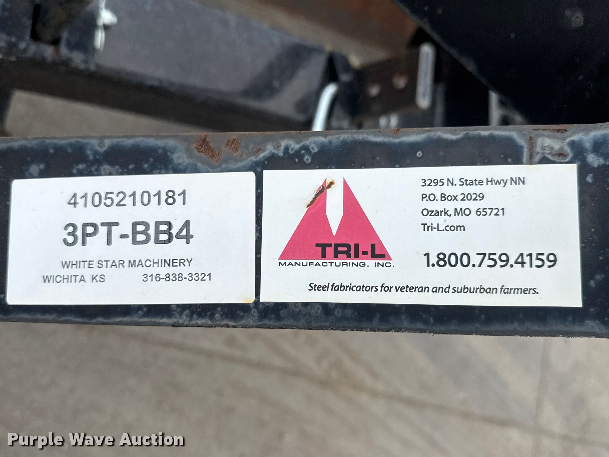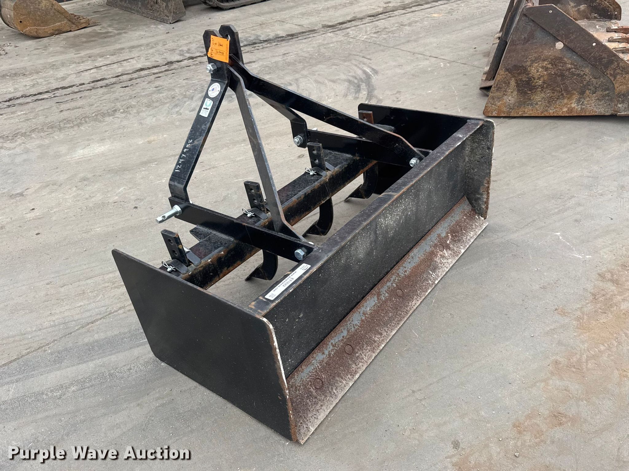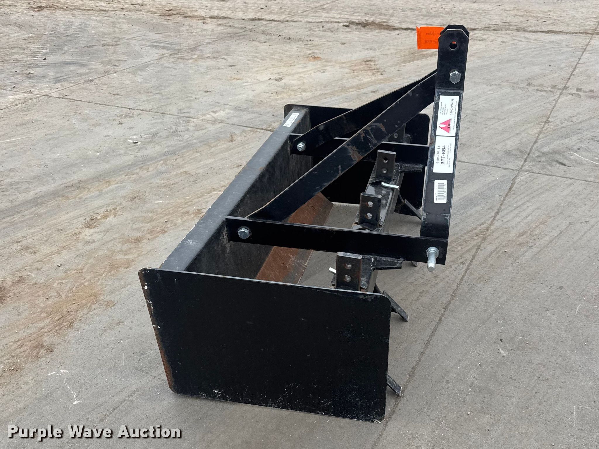 Purple Wave is selling a used Ag Tractor Loader or Attach. in Kansas. This item is a Tri-L 3PT-BB4 box blade with the following: Serial: 4105210181