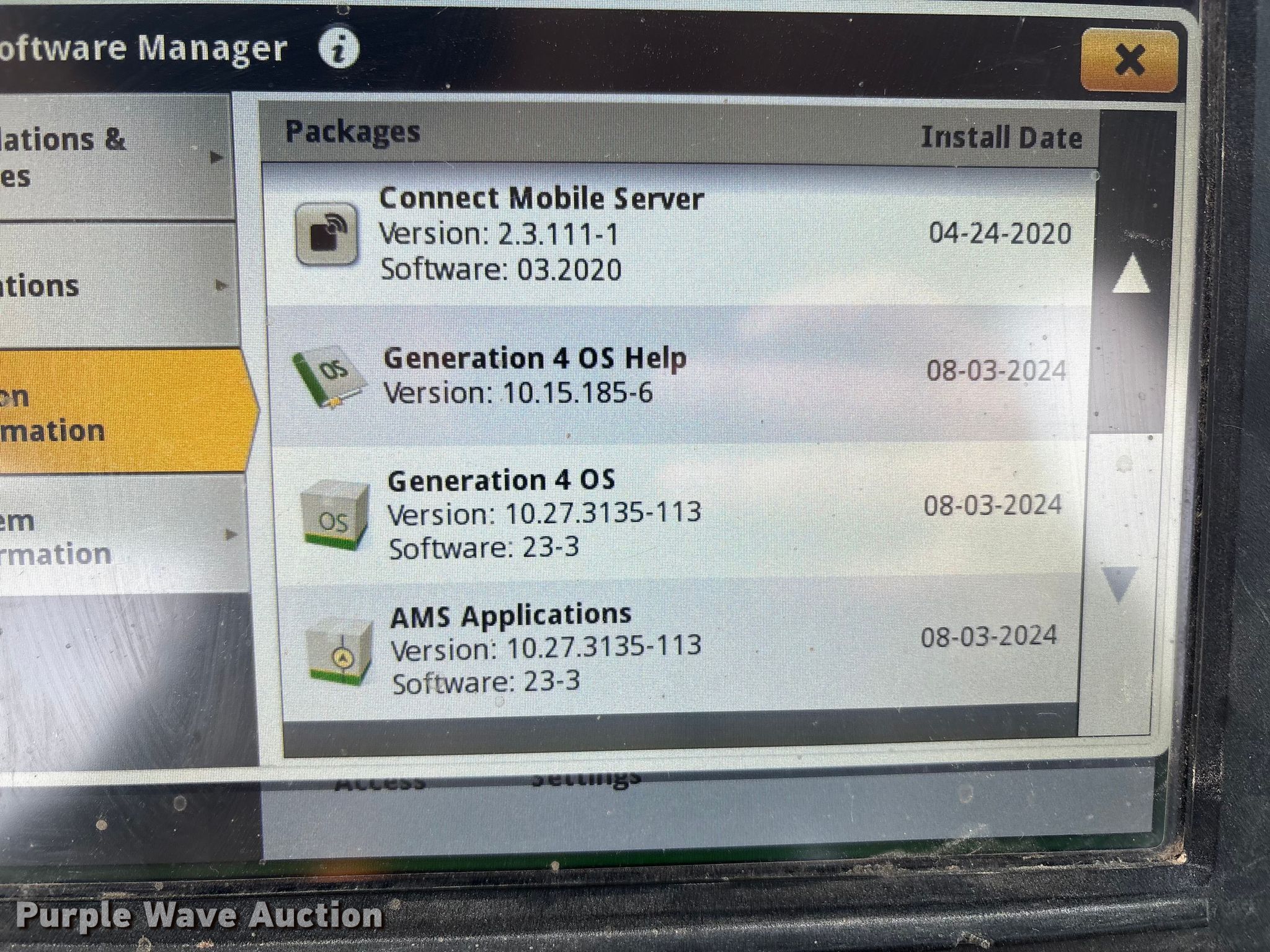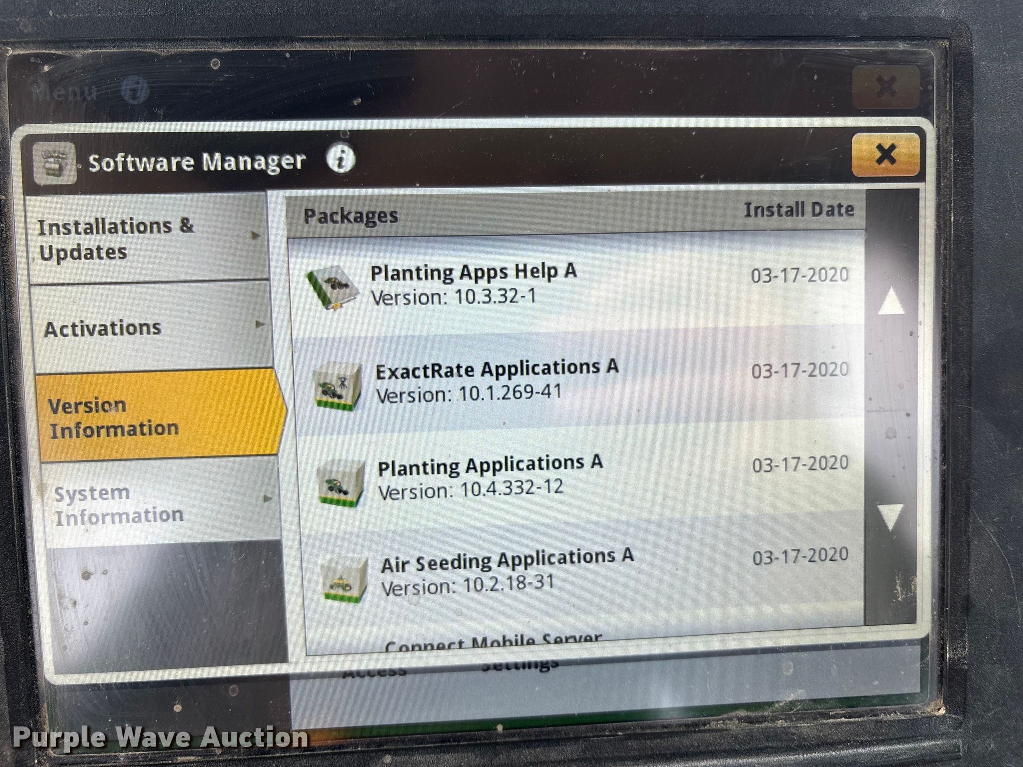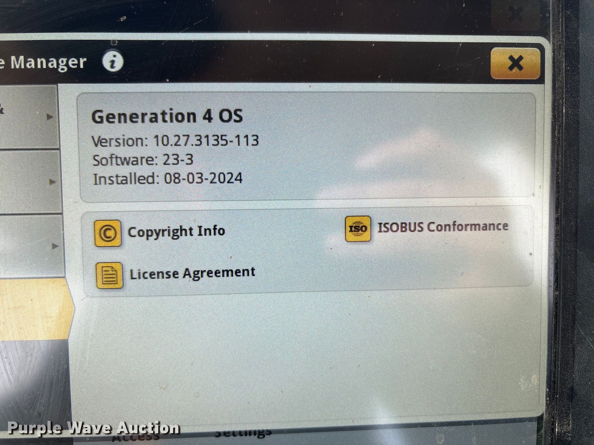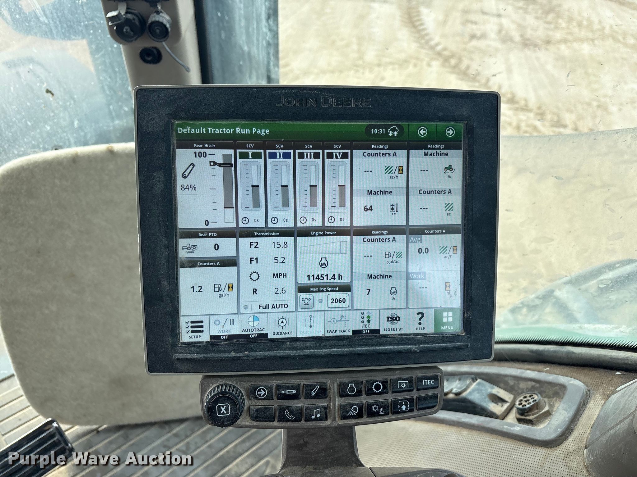 2019 John Deere 8245R MFWD tractor. Hours: 11,451 on meter, Serial: 1RW8245RCKD144074, Unit #: 26920. Engine John Deere, Displacement: 9.0L, Cylinders: 6, Fuel type: Diesel. Transmission IVT, Differential lock. Operators station AC, Heat, Display John Deere, Auto steer. Features PTO: 1 3/4" 1000, Three point Top link, Quick attach, Seven pin outlet, ISOBUS outlet, Hydraulic remote sets Rear: 4, Power beyond (hydraulics), Suitcase weights: 8. Tires Front: 420/85R34, Rear: 480/80R50, Duals. Notes Jump start required during on-site data collection. Rango. Monahans, TX 79756
