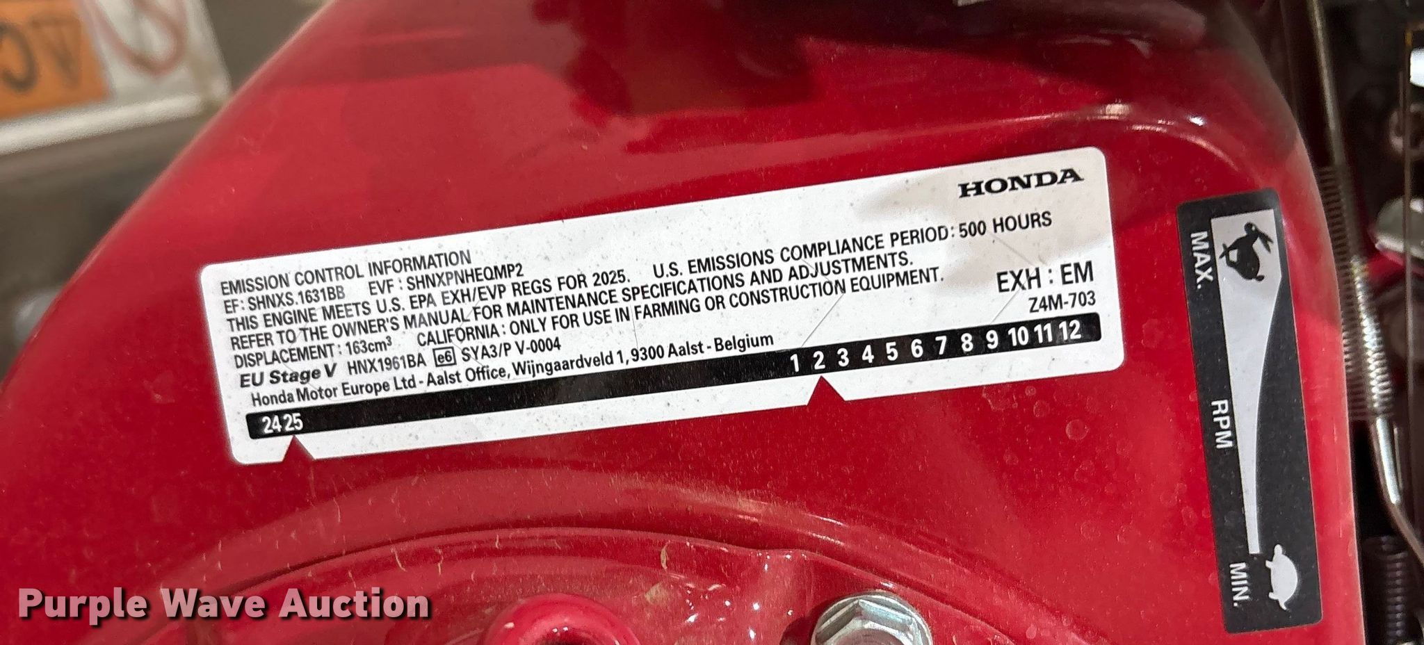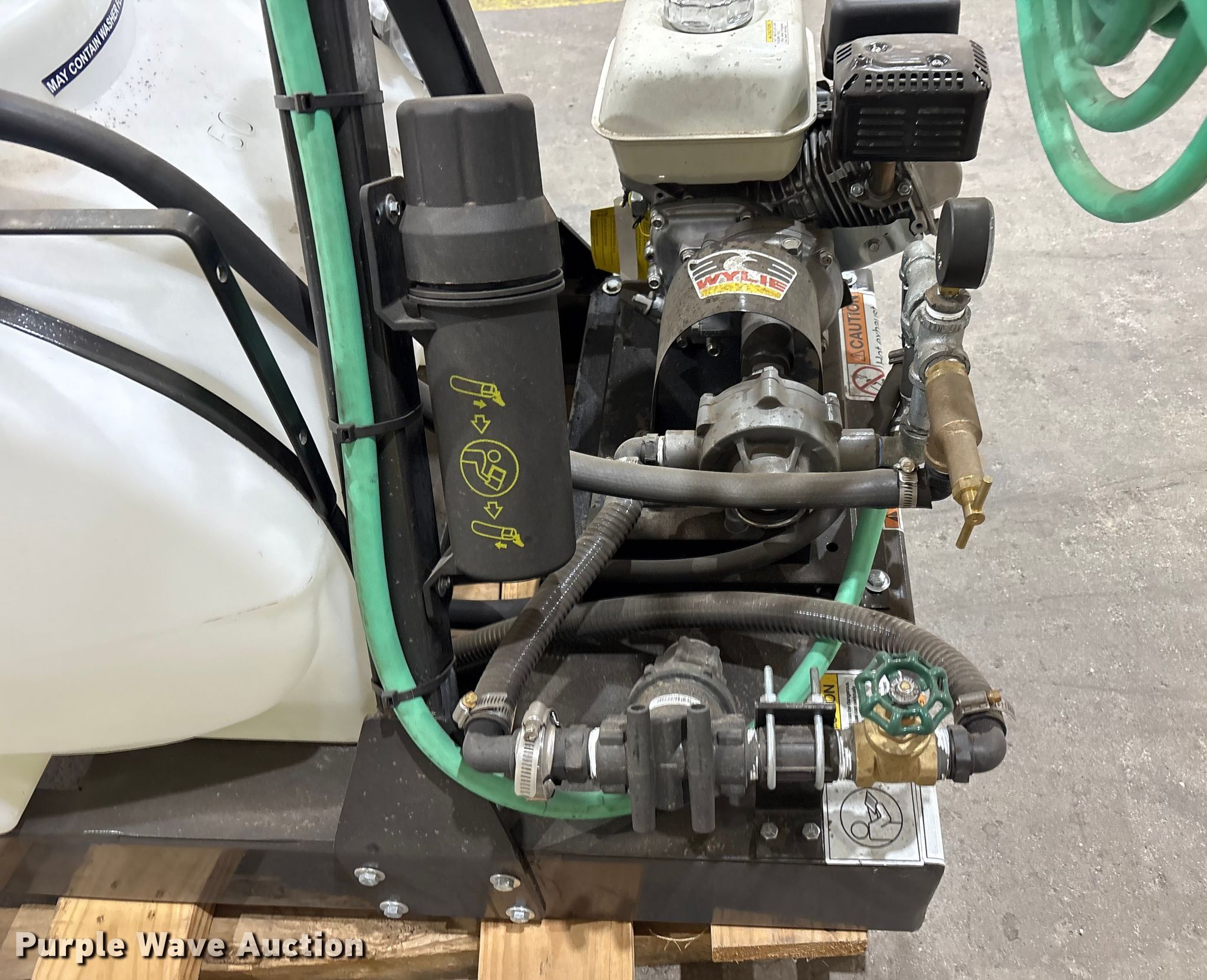 Wylie sprayer. Dimensions. Overall Length: 3' 10", Width: 2' 6", Height: 3' 8". Engine Honda GX160, Cylinders: 1, Fuel type: Gas. Features Poly tank Capacity: 50 gallons. Notes Unknown operating condition. Hargrave Manufacturing. Slaton, TX 79364