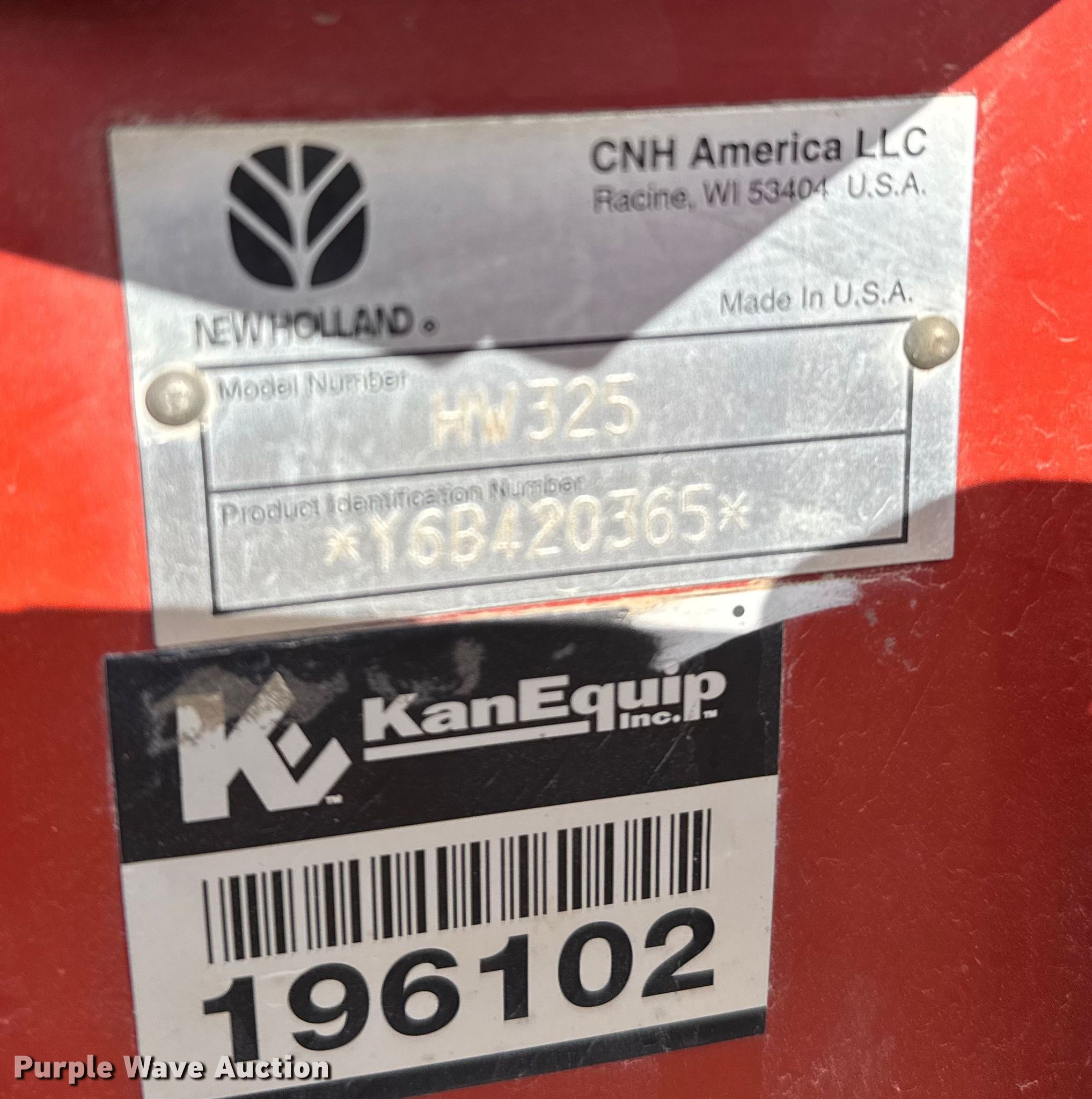 Purple Wave is selling a used Windrower Self Propelled in Kansas. This item is a 2007 New Holland HW325 swather / windrower with the following: Engine hours: 3,158 on meter, Serial: Y6B420365