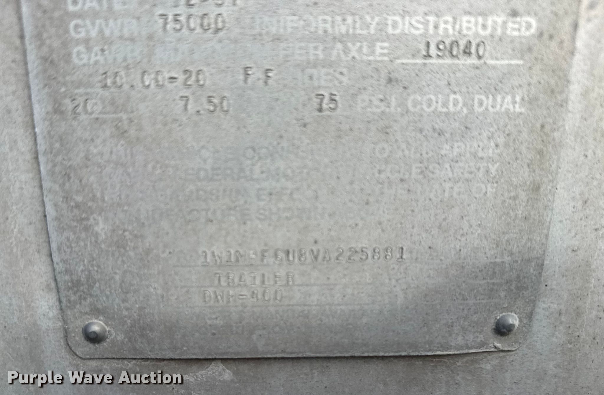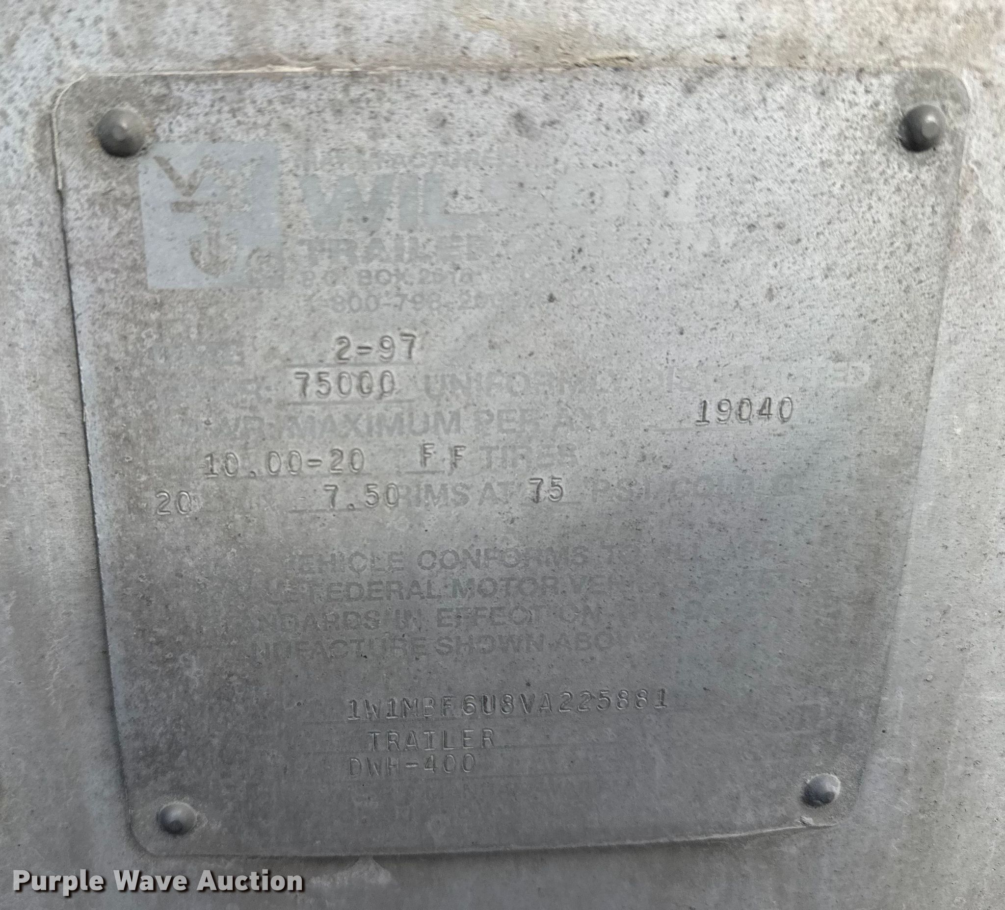 Purple Wave is selling a used Grain or Commodity Trailer in Kansas. This item is a 1997 Wilson DWH-400 grain trailer with the following: VIN: 1W1MBF6U8VA225881