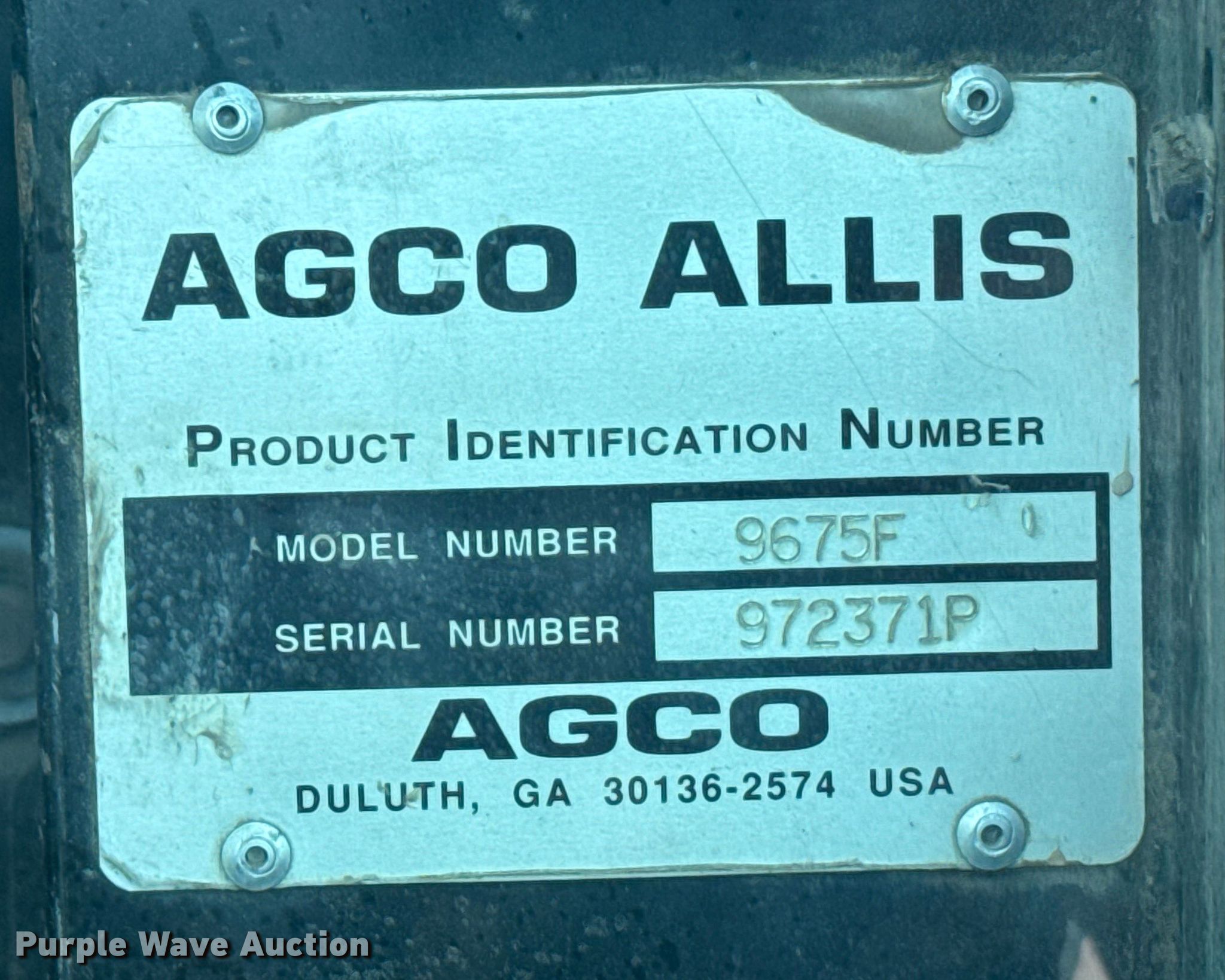 Purple Wave is selling a used Tractor in Kansas. This item is a Agco Allis 9675F tractor with the following: Serial: 972371P