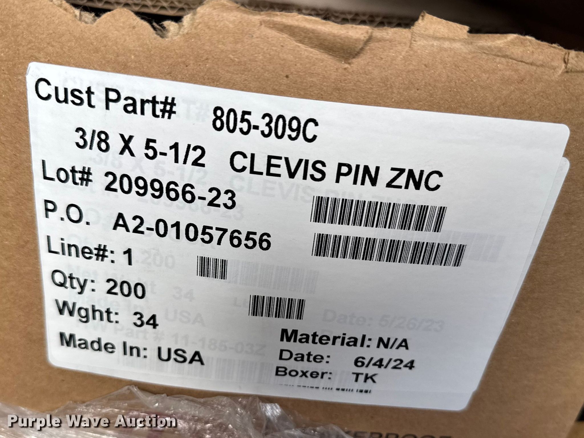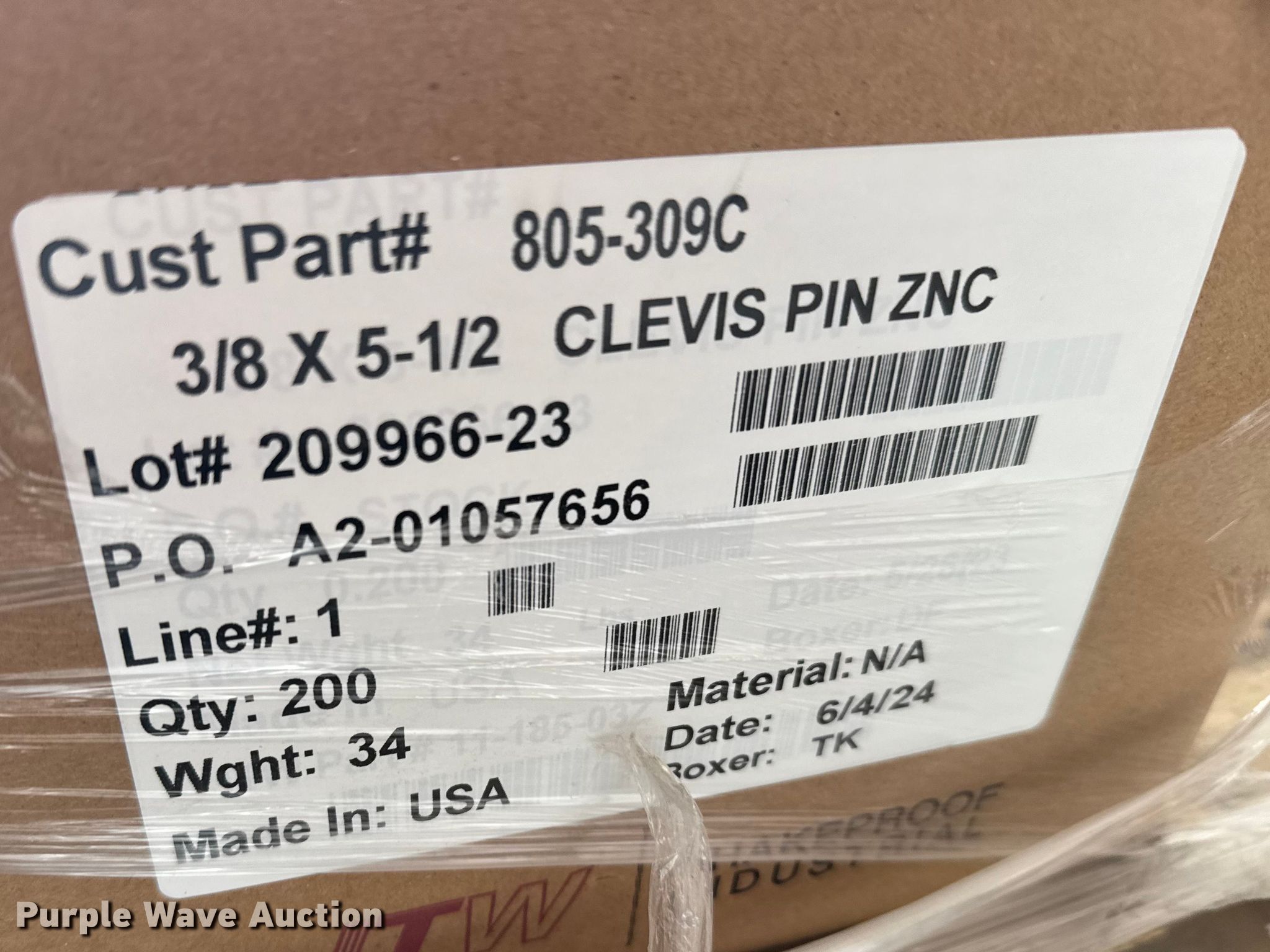 Purple Wave is selling a used Ag Equip. Other in Kansas. This item is a Approximately (850) clevis pins with the following: 3/8", 5 1/2"