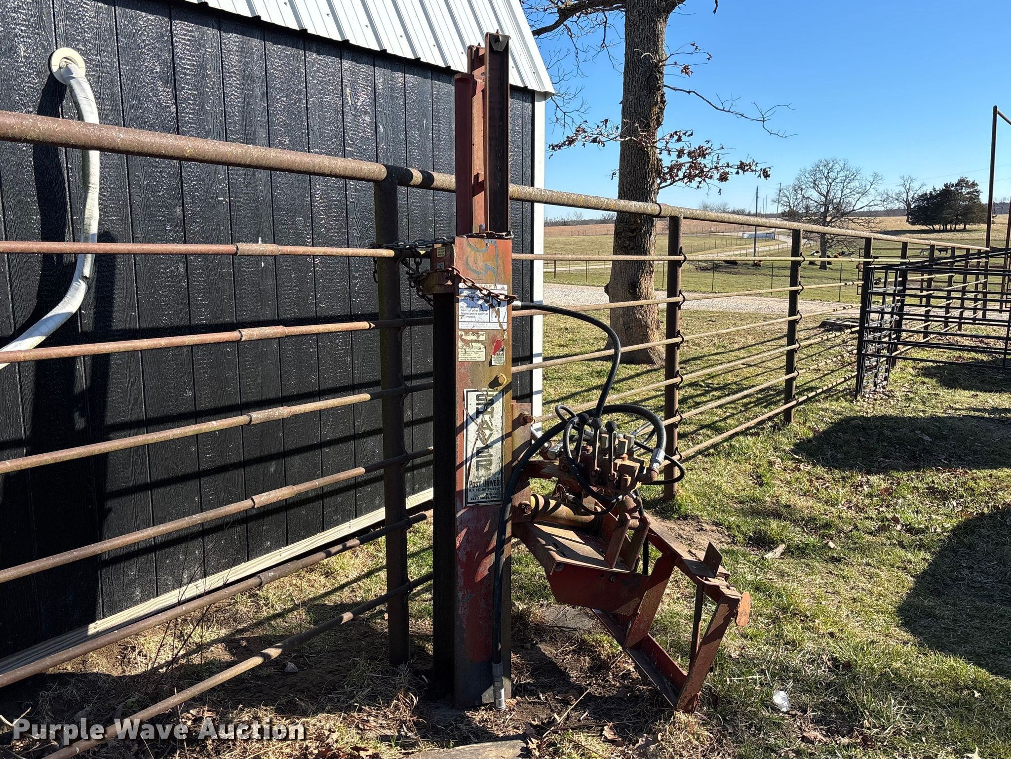 Purple Wave is selling a used Skid Steer Attach. in Missouri. This item is a Shaver HD8 skid steer post driver with the following: Serial: 61020