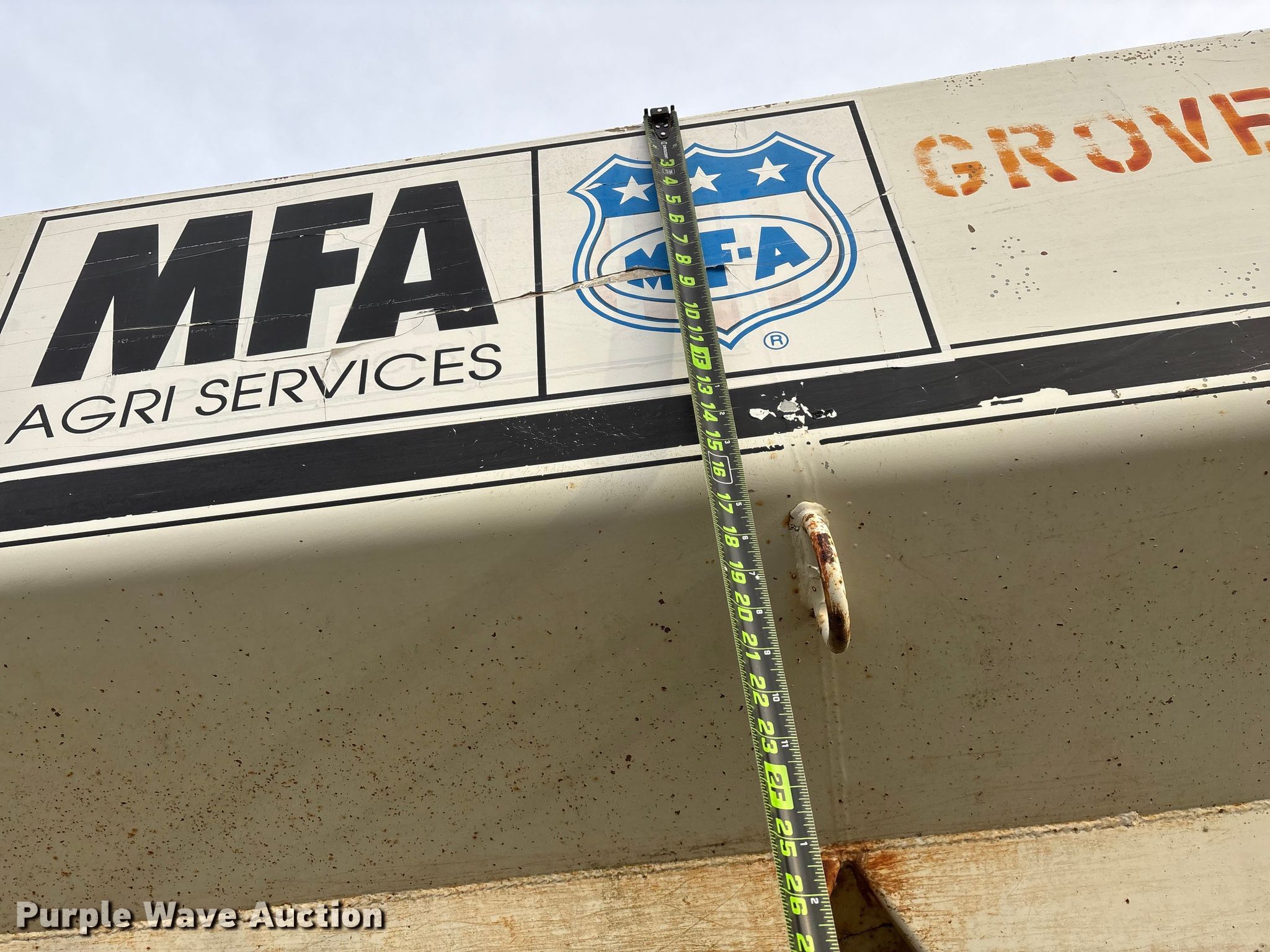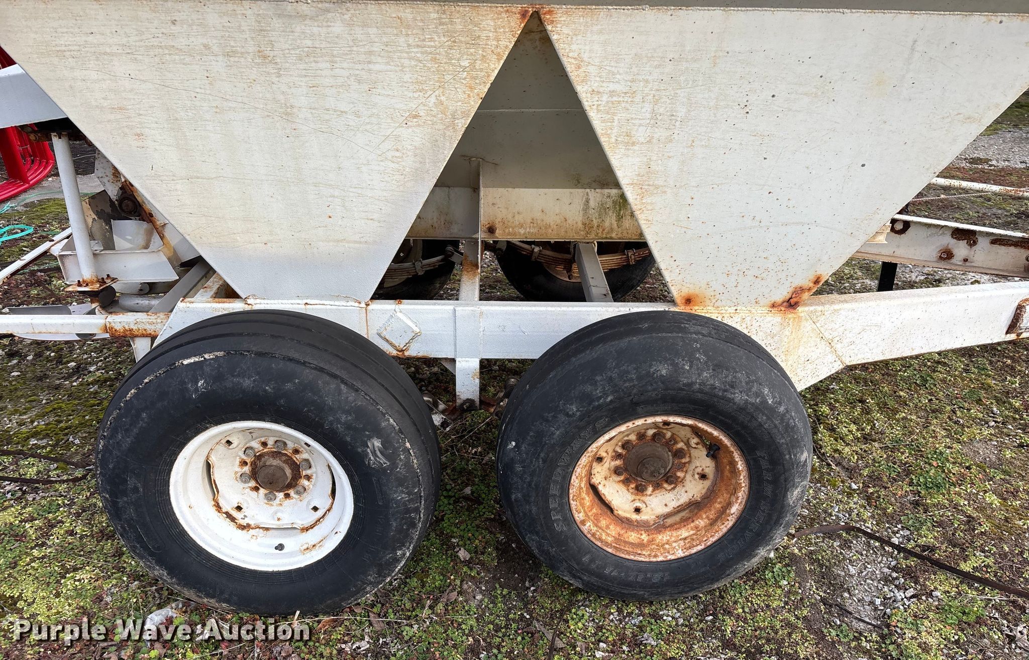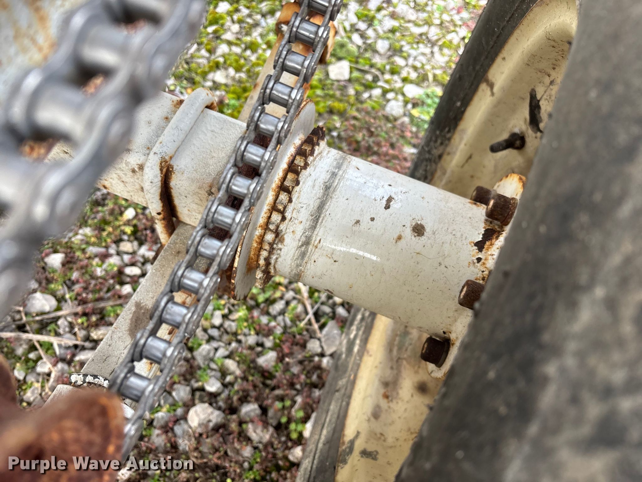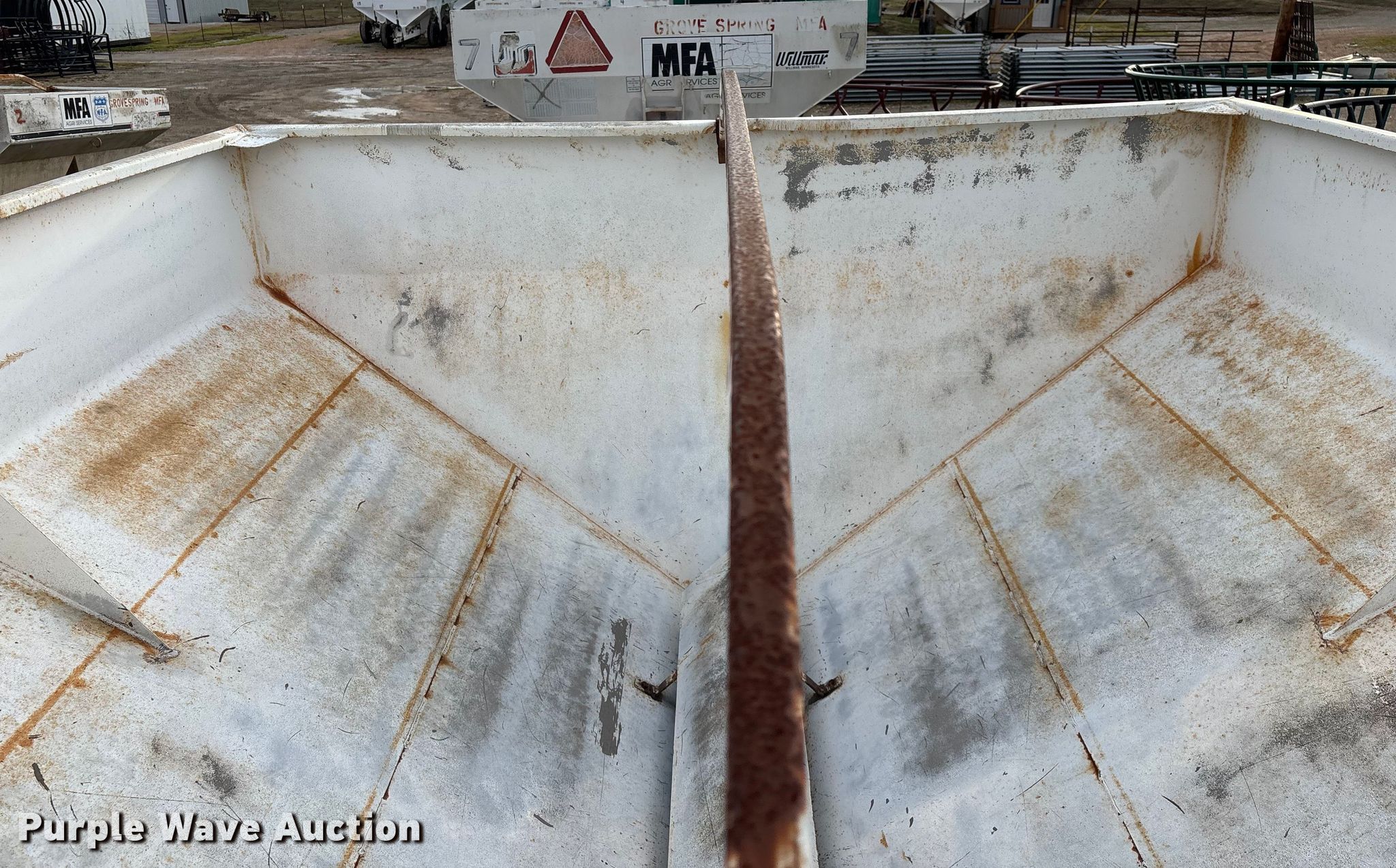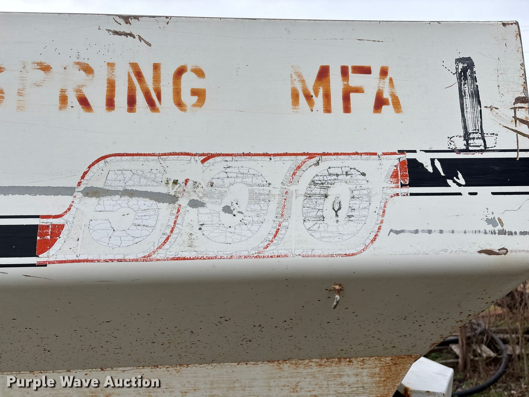Willmar 500 spreader. Unit #: 1. Features PTO: 540, Dry fertilizer spreader Dual spinners, Ground driven, Conveyor/chain Width: 7".. Tires Size: 12.5L-15SL. Notes Frame rust damage, Decals will be removed prior to auction, Tire flat. MFA Farmers Produce Exchange. Grovespring, MO 65662
