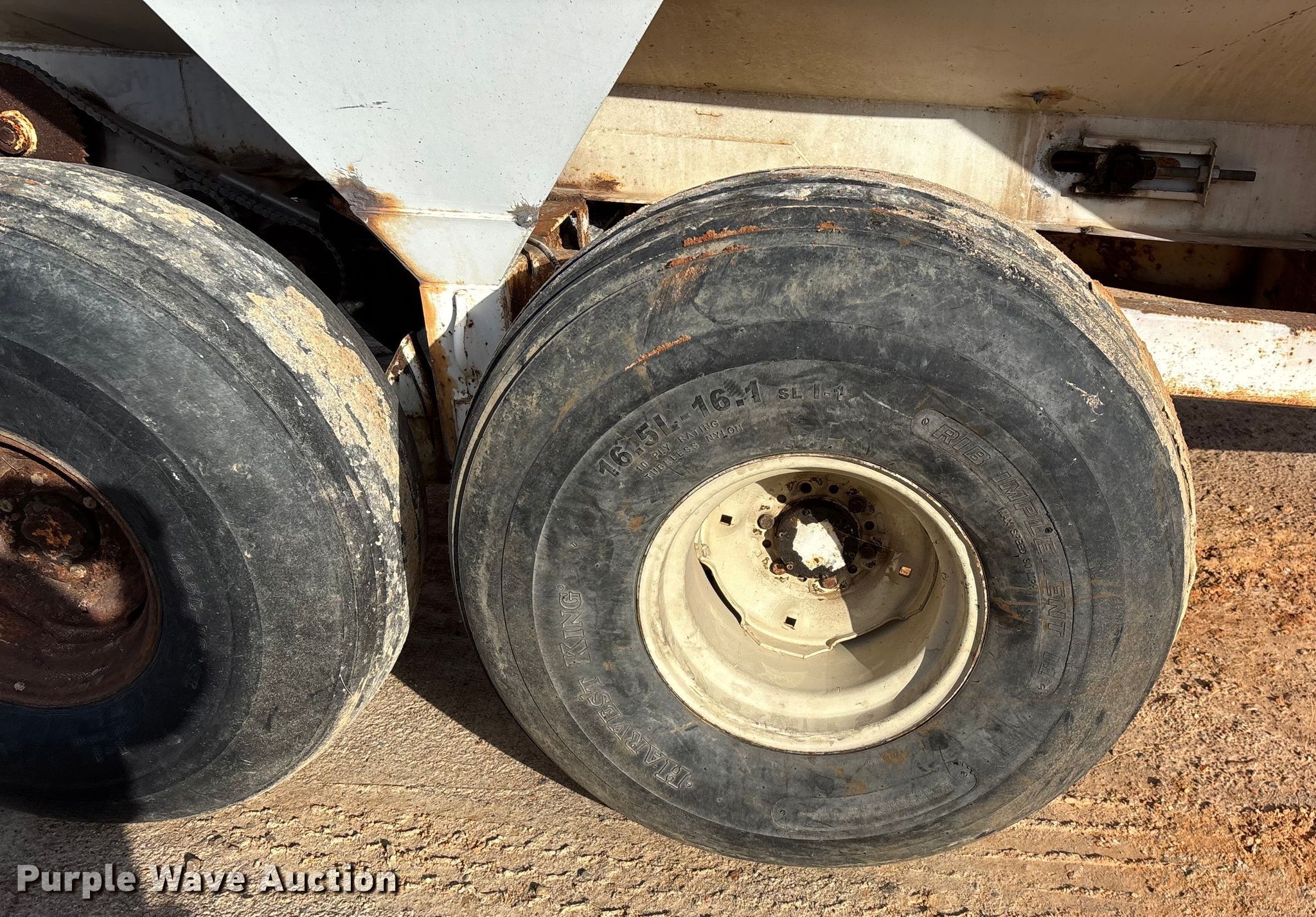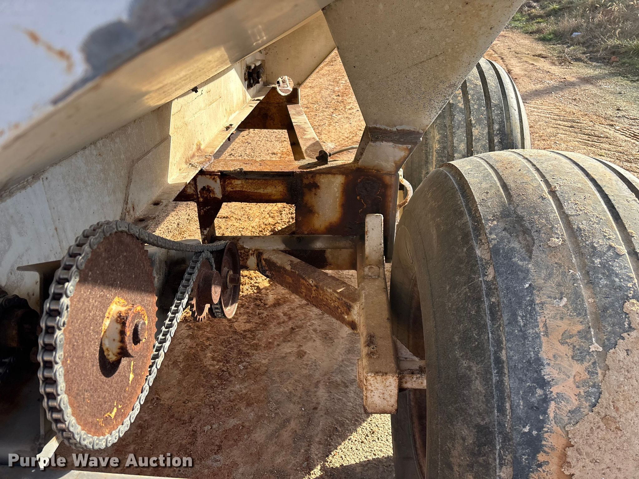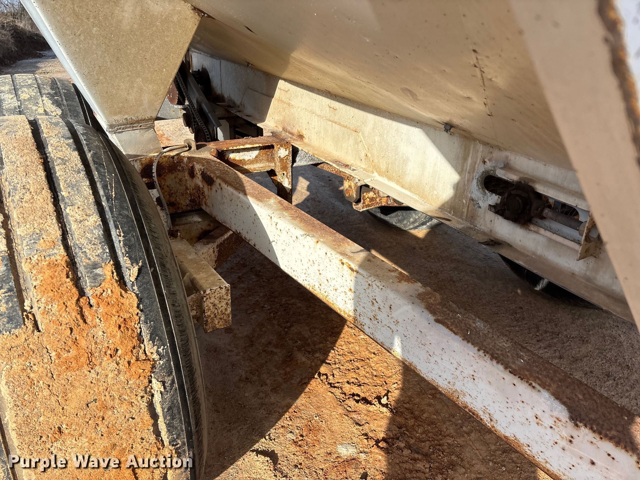Dempster Clipper-200S spreader. Unit #: 3. Features Dry fertilizer spreader Stainless steel, Roll tarp, Ground driven, Conveyor/chain Width: 10".. Tires Size: 16.5L-16.1SL. Notes PTO half shaft missing, Non-operational brakes, parts missing, Contents not included, Decals will be removed prior to auction. MFA Farmers Produce Exchange. Lebanon, MO 65536