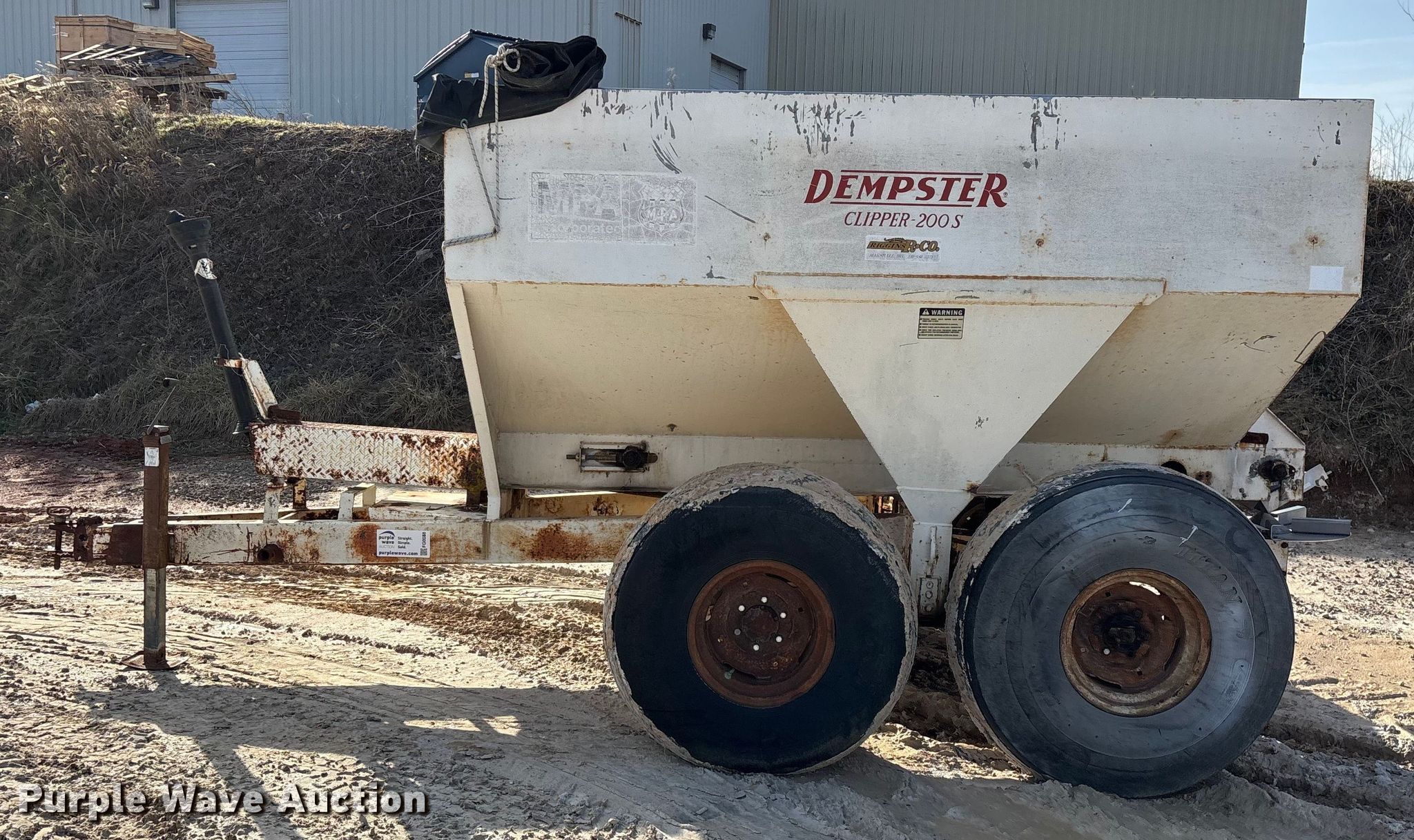 Purple Wave is selling a used Applicator Pull Type in Missouri. This item is a Dempster Clipper - 200S spreader with the following: PTO: 540, Dry fertilizer spreader, Stainless steel, Roll tarp, Ground driven, Conveyor/chain, Width: 10",
