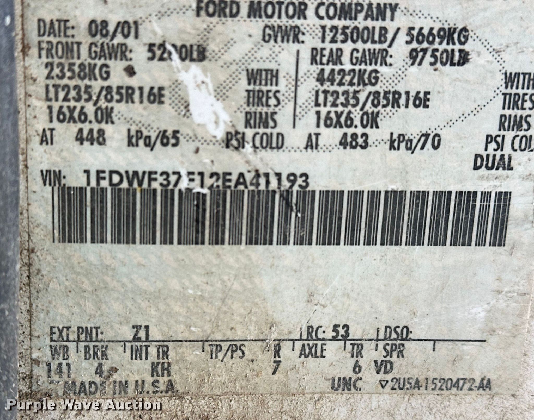 Purple Wave is selling a used Fertilizer or Feed Delivery Truck in Missouri. This item is a 2002 Ford F-350 fertilizer delivery truck with the following: Miles: 332,313 on odometer, VIN: 1FDWF37F12EA41193
