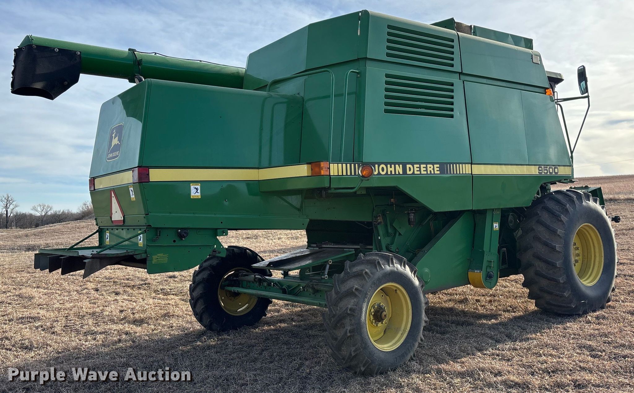 Purple Wave is selling a used Combine in Kansas. This item is a 1992 John Deere 9500 combine with the following: Engine hours: 6,005 on meter, Separator hours: 4,474 on meter, Serial: HO9500X647152