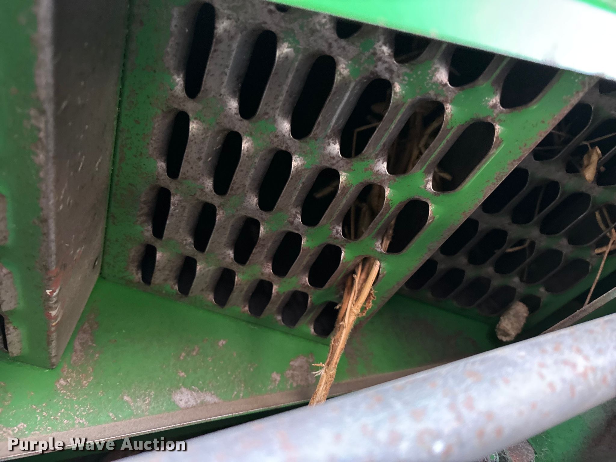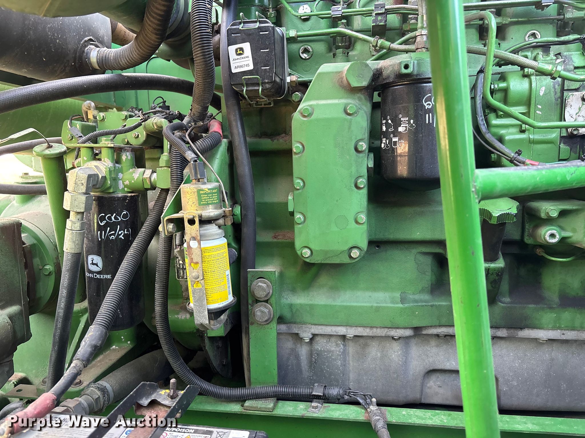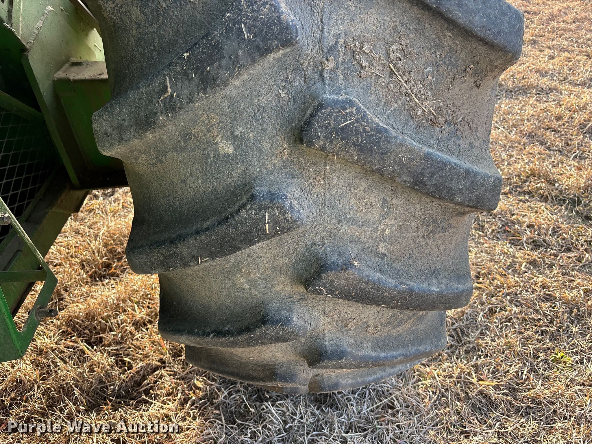 1992 John Deere 9500 combine. Engine hours: 6,005 on meter, Separator hours: 4,474 on meter, Serial: HO9500X647152. Engine John Deere, Cylinders: 6, Fuel type: Diesel. Transmission Hydrostatic. Operators station AC, Heat. Features Operator manual, Feederhouse: Variable speed, Concaves: Round, Straw chopper, Unloading auger length: 16' 6". Tires Front: 24.5-32, Rear: 14.9-24/13/24. Notes Jump start required during on-site data collection. View repairs. Flint Hills Stone. Alma, KS 66401