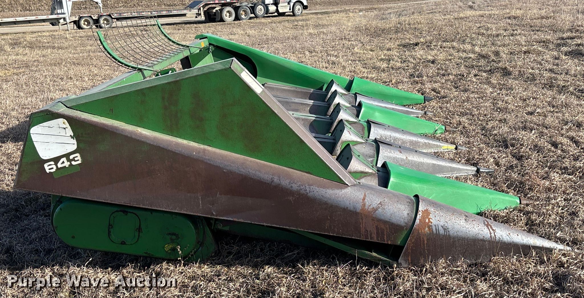 Take a look at this used John Deere 643 corn head being sold on March 18th, 2026 in the Wednesday March 18 Ag Equipment Auction made by John Deere. Take a look at all of the item information below or take a look at similar auctions for Harvesters.