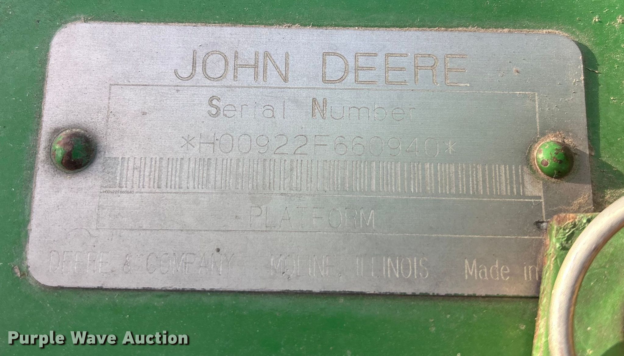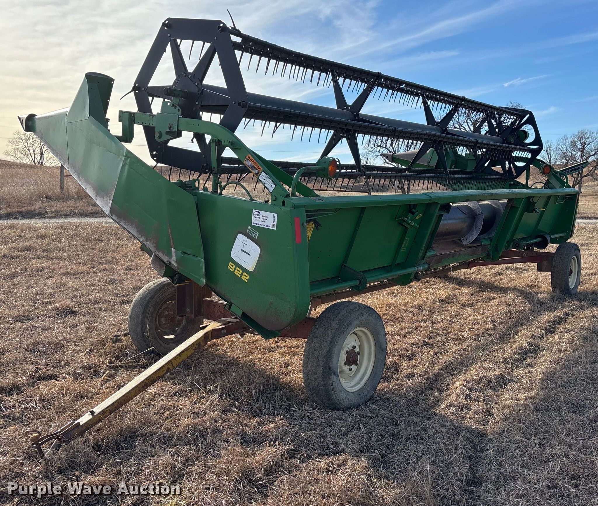 Purple Wave is selling a used Platform or Stripper Head in Kansas. This item is a John Deere 922 rigid head with the following: Serial: H00922F660940
