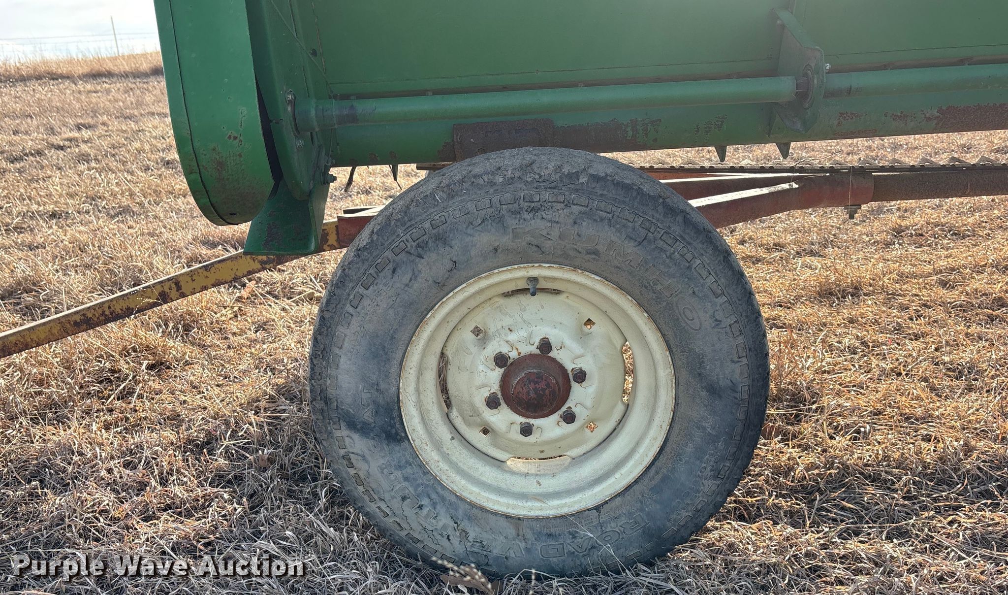 John Deere 922 rigid head. Serial: H00922F660940. Features Width: 21', Reel: Finger Hydraulic reel height control, Skid plates: Poly, Drivelines: Dual. Trailer 25' L x 84" W, Hitch: Pintle, Tire size: 245/75R16. Notes Tongue damage. Flint Hills Stone. Alma, KS 66401
