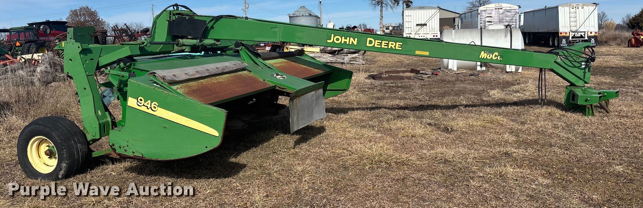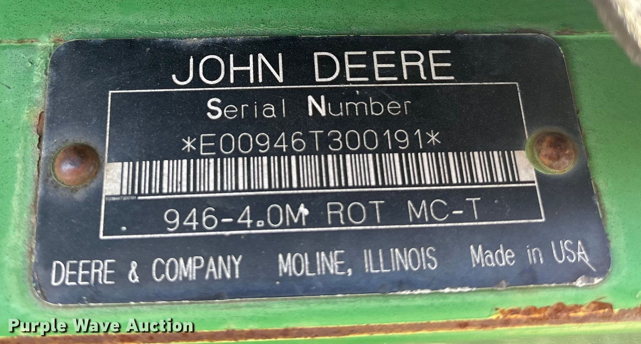 Purple Wave is selling a used Windrower Pull Type in Missouri. This item is a John Deere 946 swather / windrower with the following: Serial: E00946T300191, Unit #: 74057755