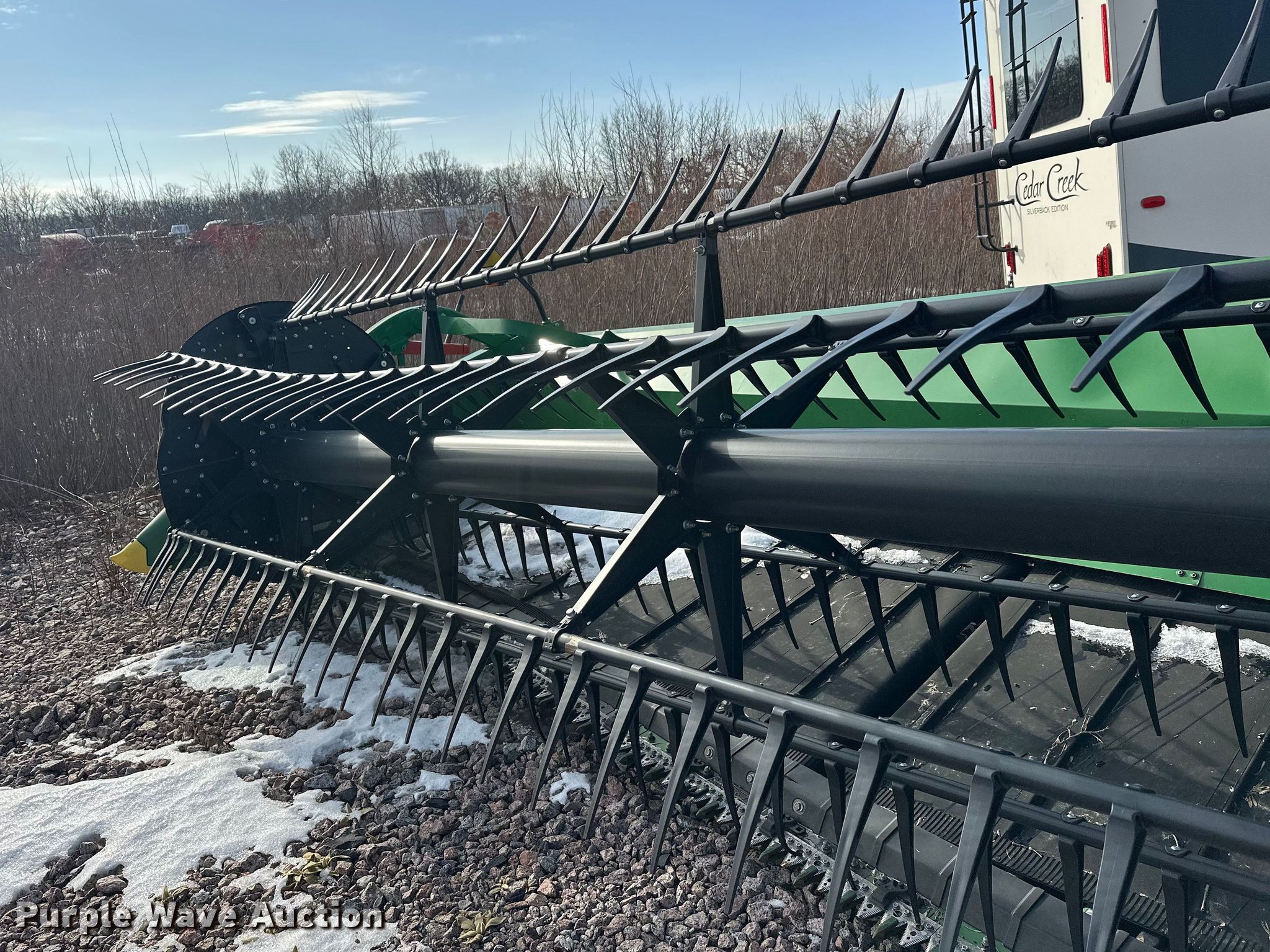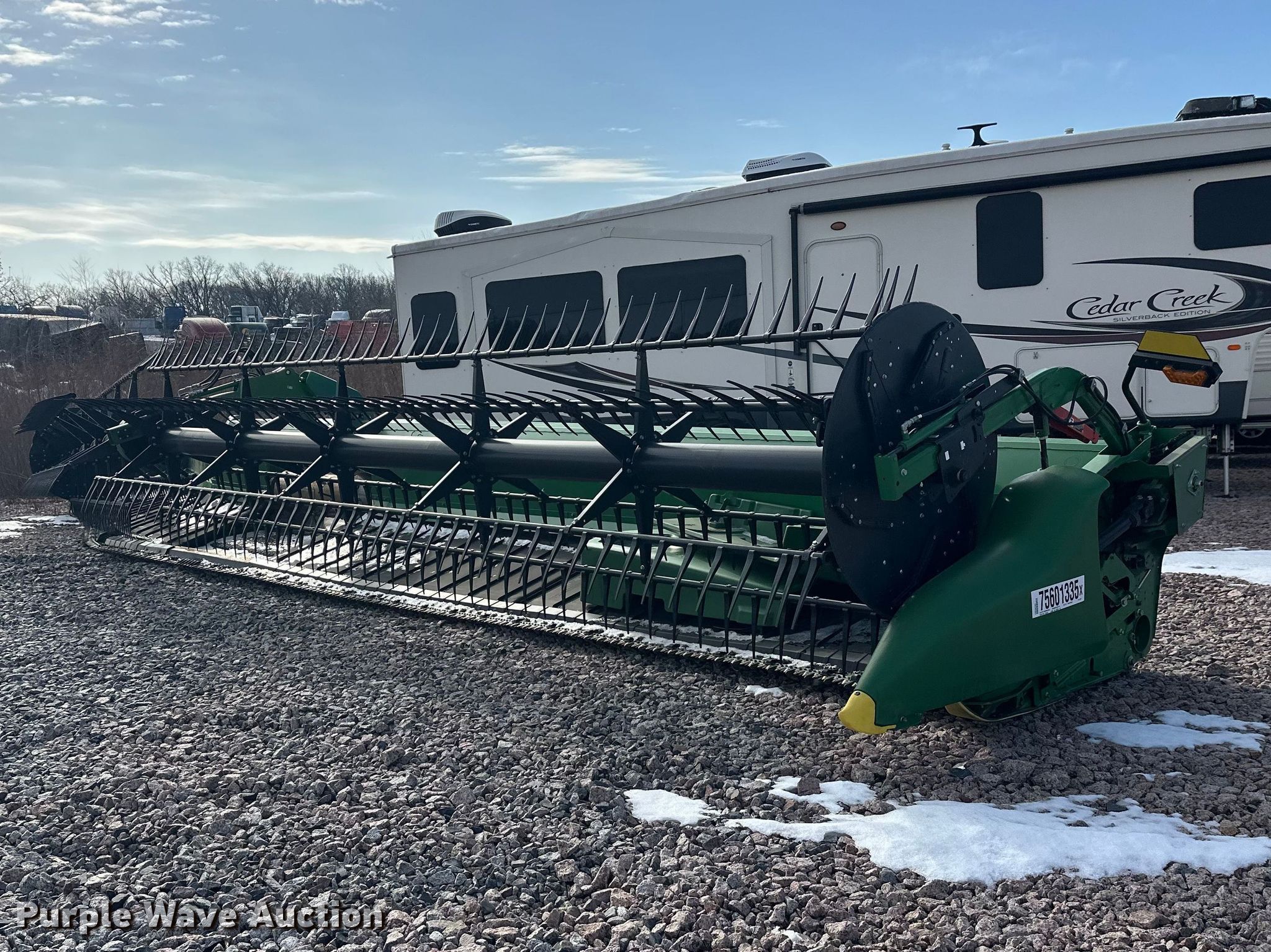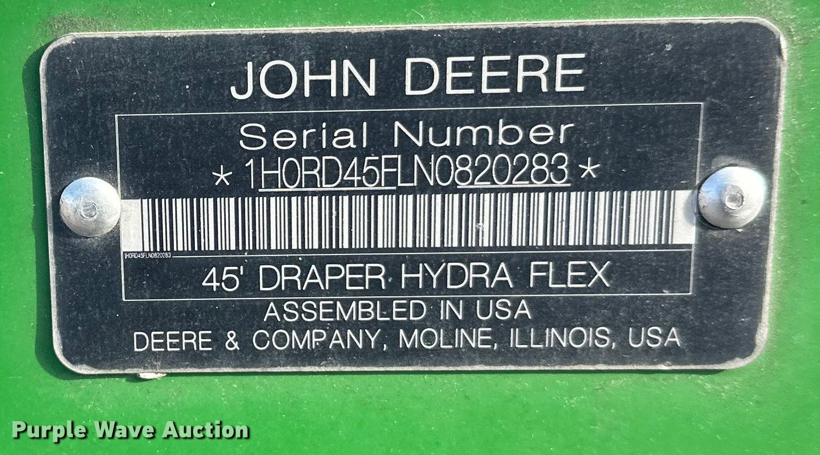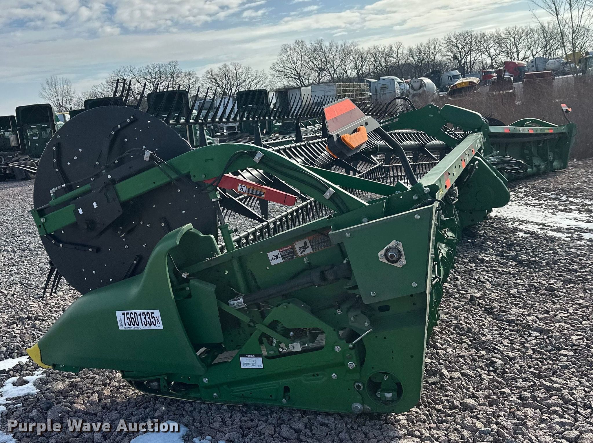 Purple Wave is selling a used Platform or Stripper Head in Minnesota. This item is a 2022 John Deere RD45F flex draper head with the following: Serial: 1HORD45FLN0820283, Unit #: 75601335