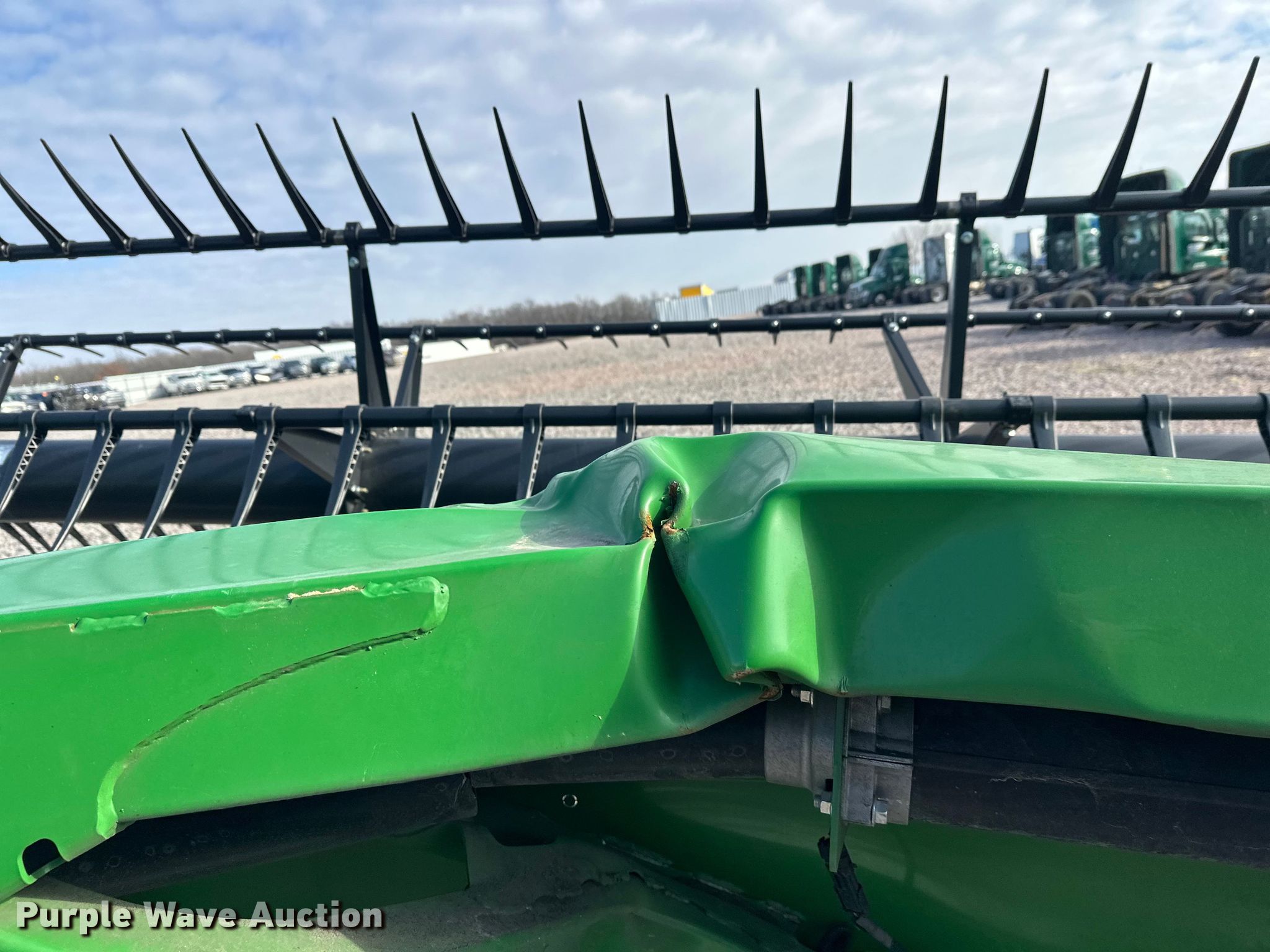 2022 John Deere RD45F flex draper head. Serial: 1HORD45FLN0820283, Unit #: 75601335. Features Width: 45', Reel: Finger Hydraulic fore/aft, Hydraulic reel height control, Single point coupler, Drivelines: Single. Notes Frame damage, Collision damage, Unknown operating condition. Buyer responsible for all aspects of loadout and removal. Insurance salvage, stored at a secured facility. Please review REQUIRED REMOVAL INSTRUCTIONS. Insurance Salvage. Big Lake, MN 55309