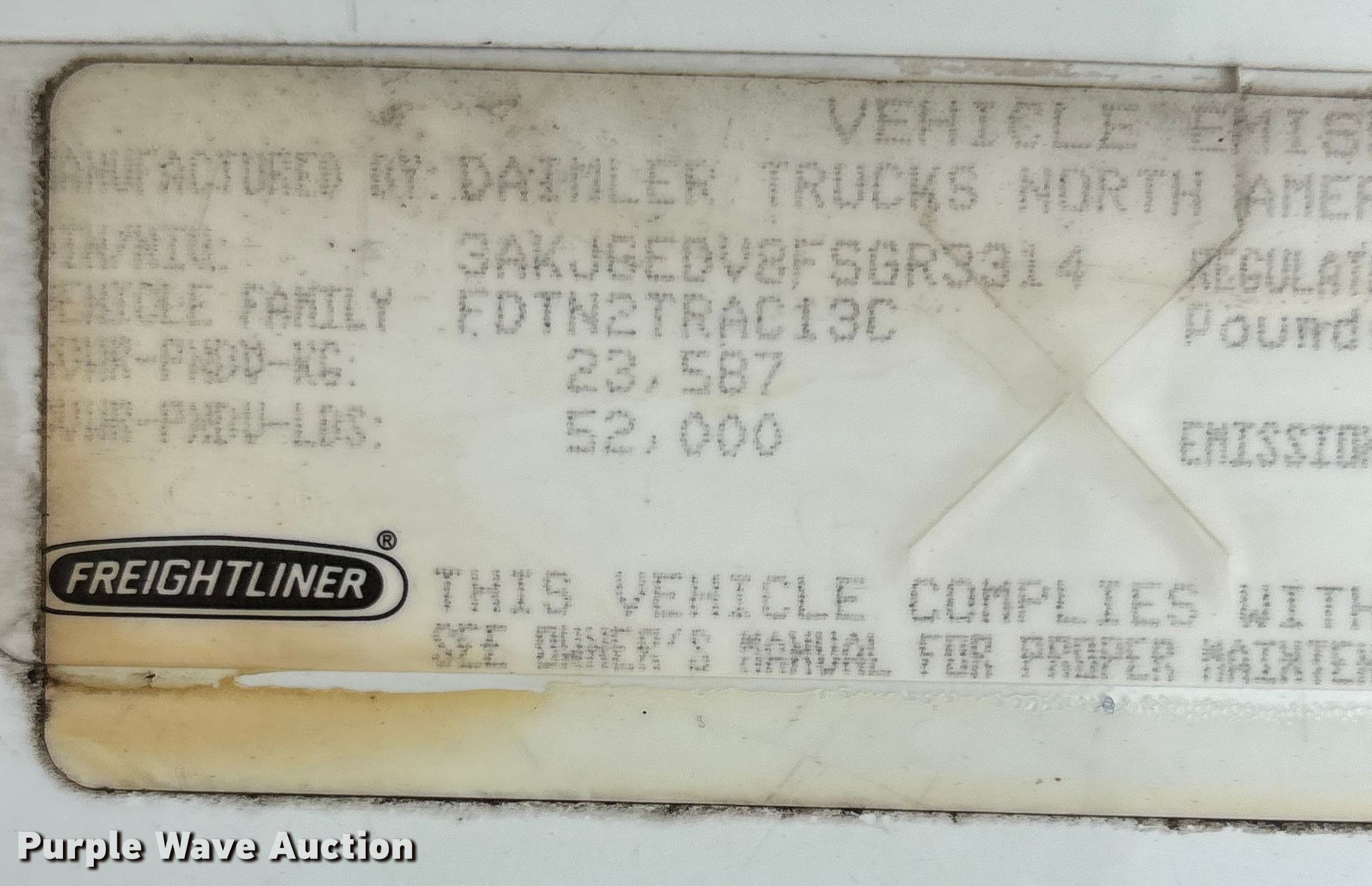 - VIN: 3AKJGEDV8FSGR3314
