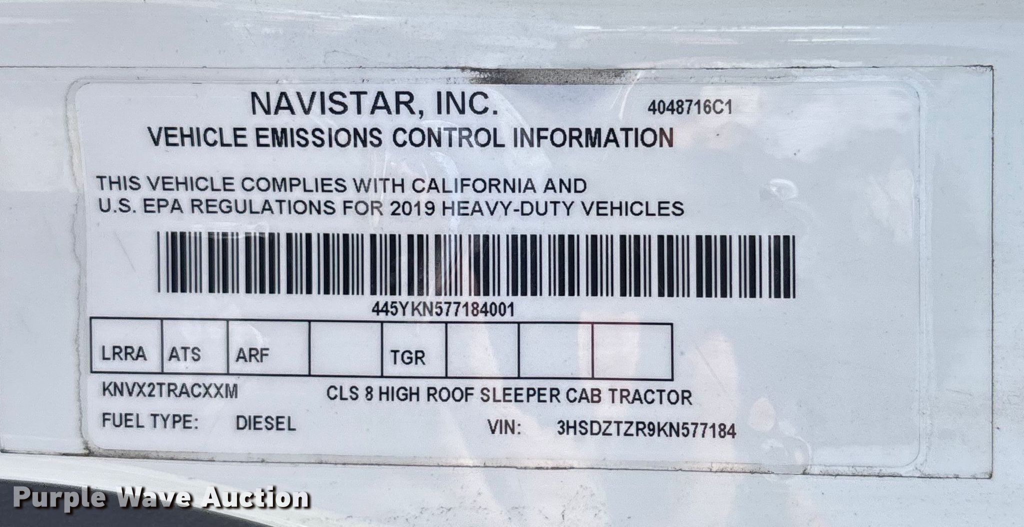 - VIN: 3HSDZTZR9KN577184