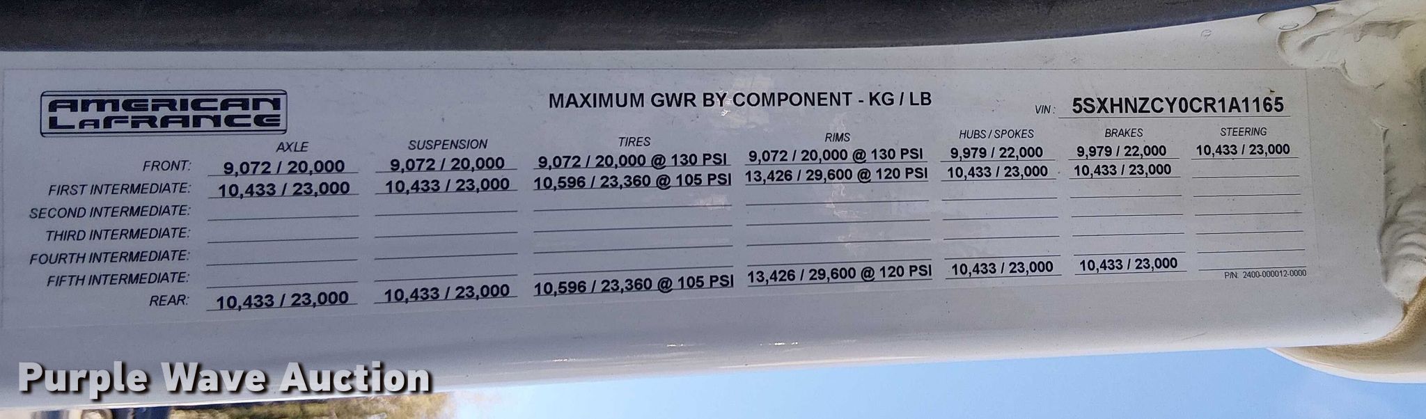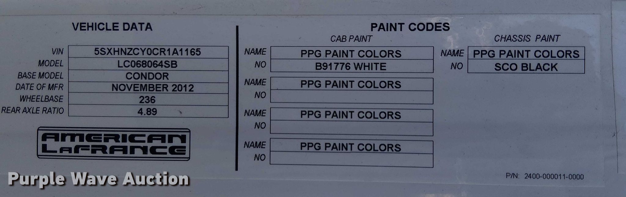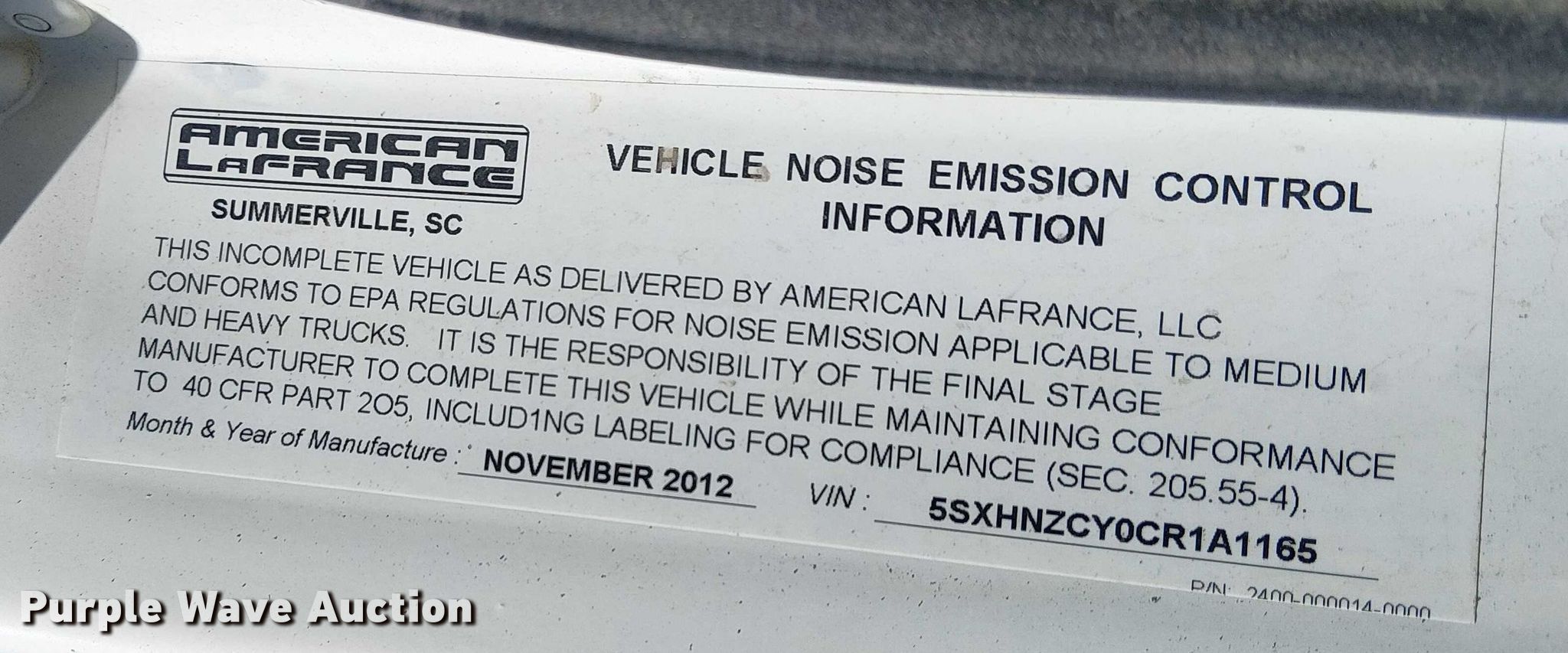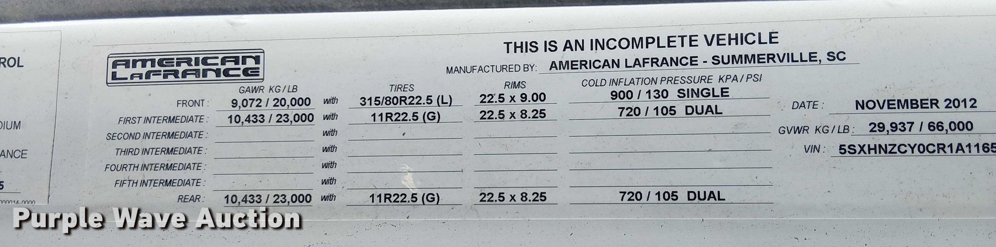 Purple Wave is selling a used Truck Chassis in California. This item is a 2012 Condor American LaFrance road marking removal truck with the following: Miles: 113,052 on odometer, Miles or hours may vary, unit still in use, VIN: 5SXHNZCY0CR1A1165