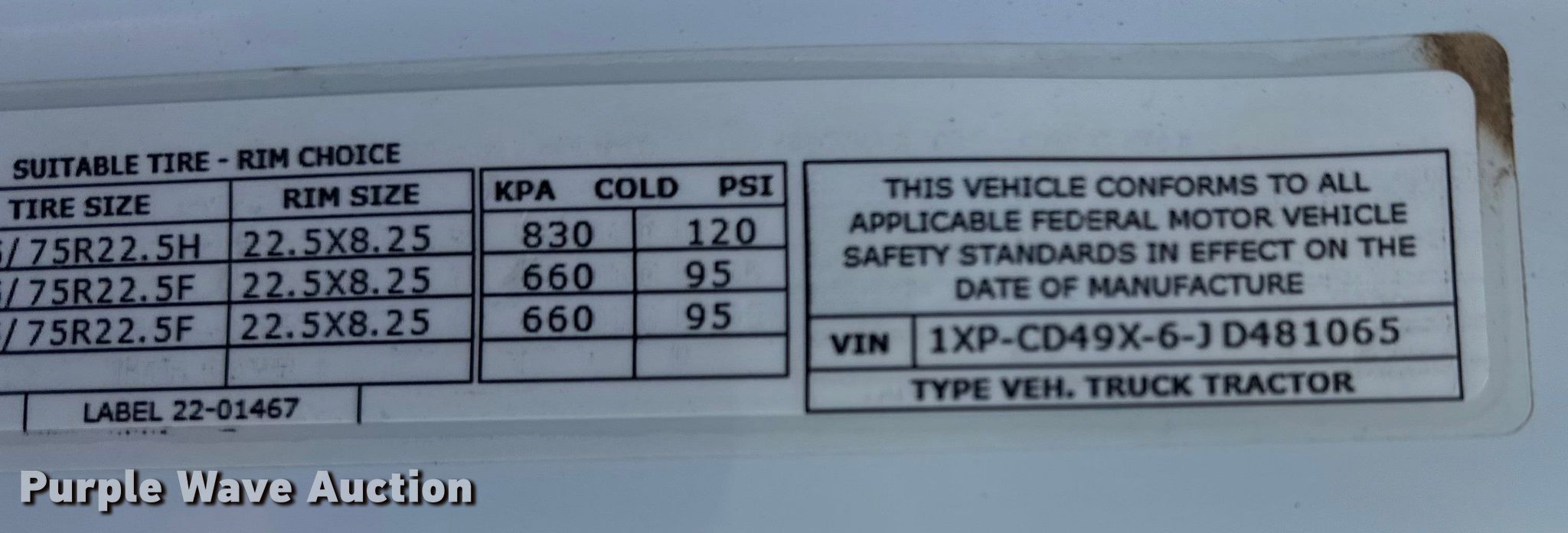 - VIN: 1XPCD49X6JD481065