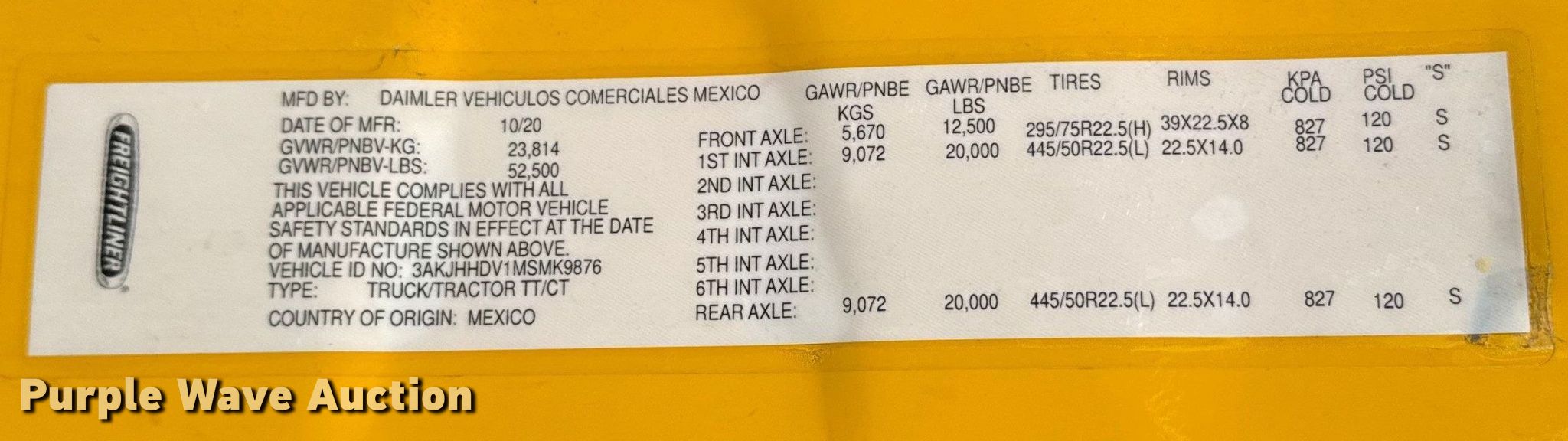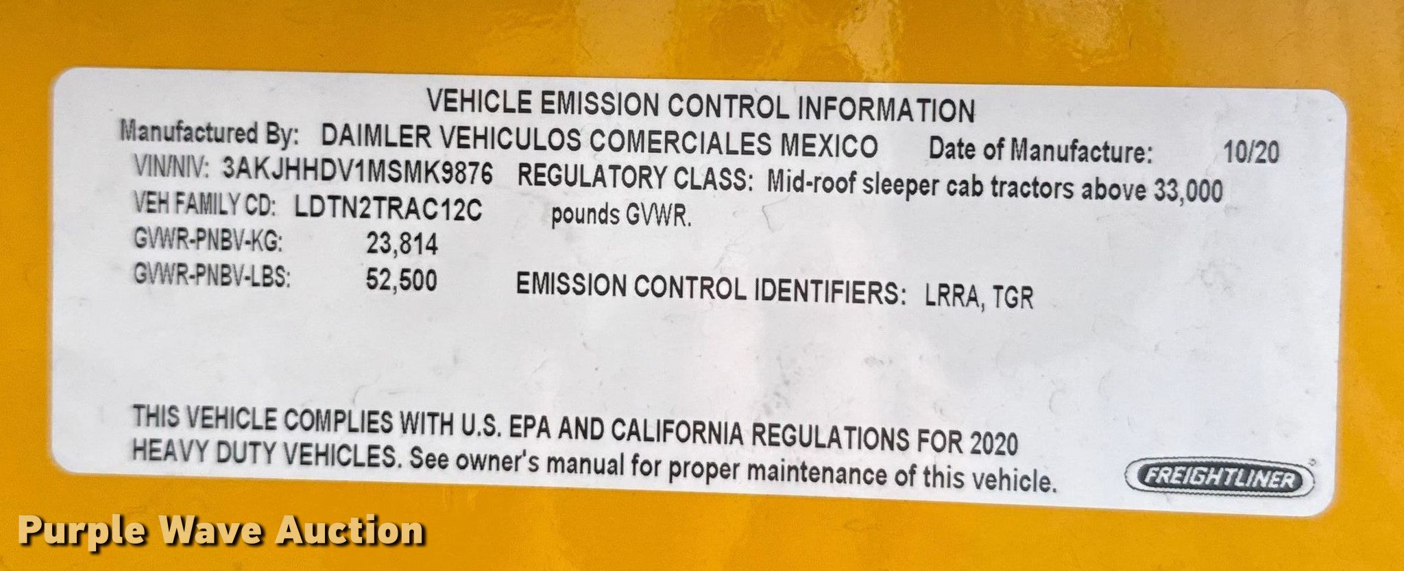 - VIN: 3AKJHHDV1MSMK9876