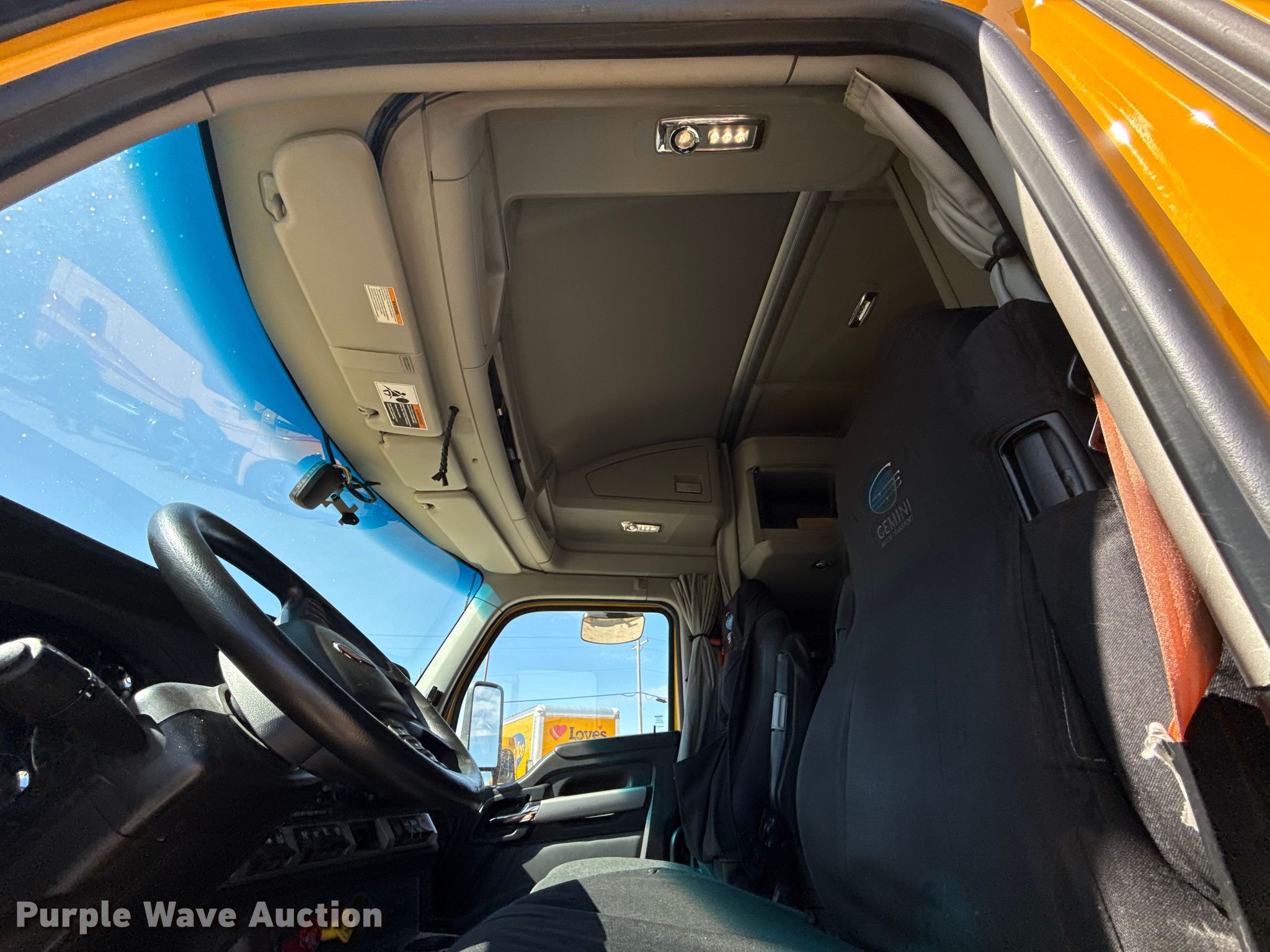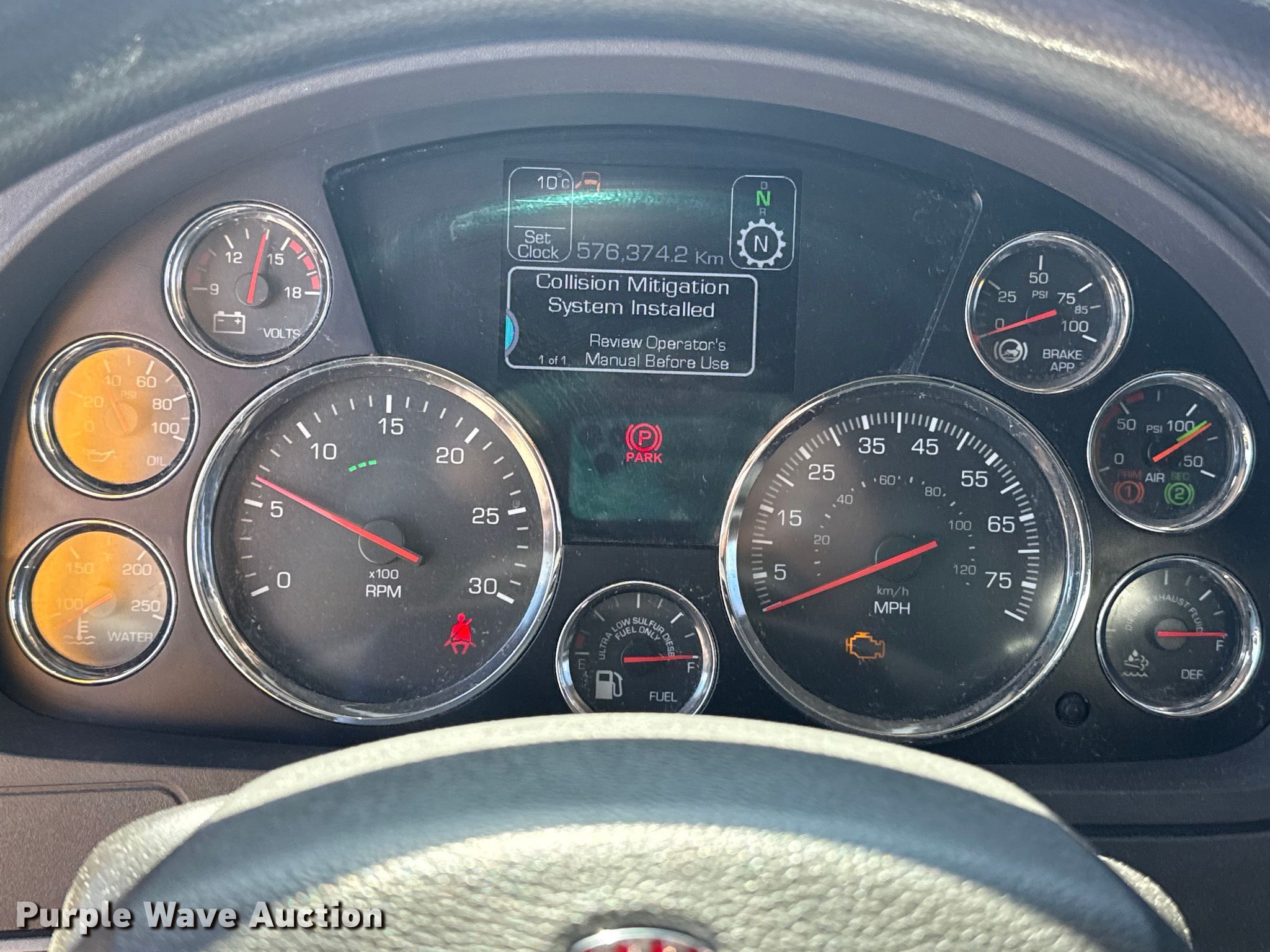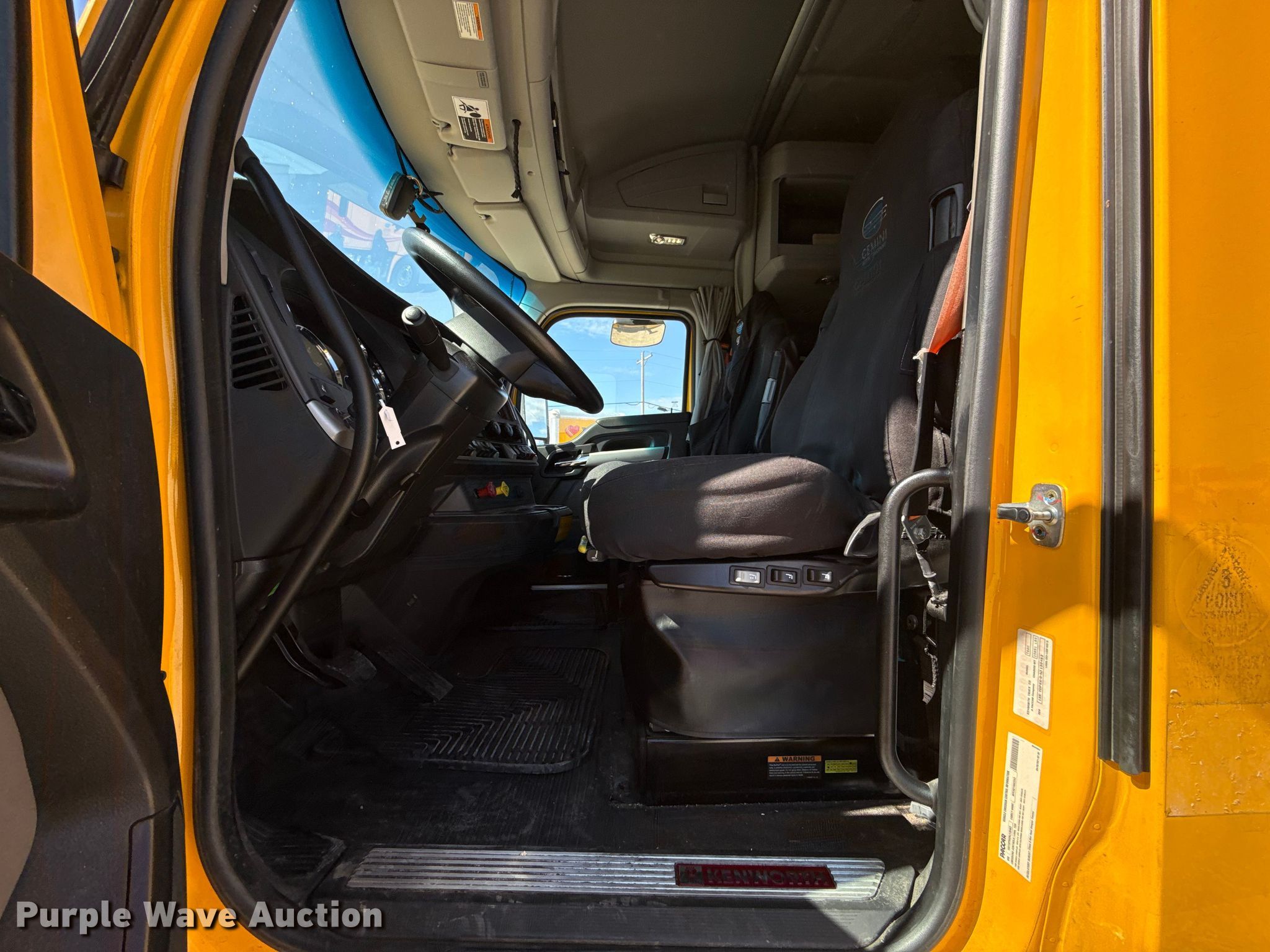 2022 Kenworth T680 semi truck. Miles: 358,142 on odometer, Hours: 16,912 on meter, VIN: 1XKYDP9X0NJ130463, Unit #: 22574. Engine Paccar MX-13, Serial: Y256822, Displacement: 12.9L, Cylinders: 6, Fuel type: Diesel, HP: 455, Engine brake. Transmission Automated manual. Chassis Axles: Tandem, Differential lock: Inter-axle, Suspension: Air Dump valves, Brakes: Air, GVWR: 50,500 lbs FAWR: 12,500 lbs, IAWR: 19,000 lbs, RAWR: 19,000 lbs. Interior AC, Heat, Heated mirrors, Power windows, Power locks, Cruise control, Air ride cab, Sleeper Sleeper length: 64", Beds: Single, Refrigerator, Microwave, Rear climate control. Features Deck plate: Aluminum, Fifth wheel type: Fixed, Fuel tank: Dual. Tires Front: 295/75R22.5, Rear: 445/50R22.5. Notes Dash warning indicator: Check engine, Windshield chipped or cracked. Oklahoma title. Title distribution may be delayed up to 30 days from verification of funds. Gemini Motor Transport. Oklahoma City, OK 73127