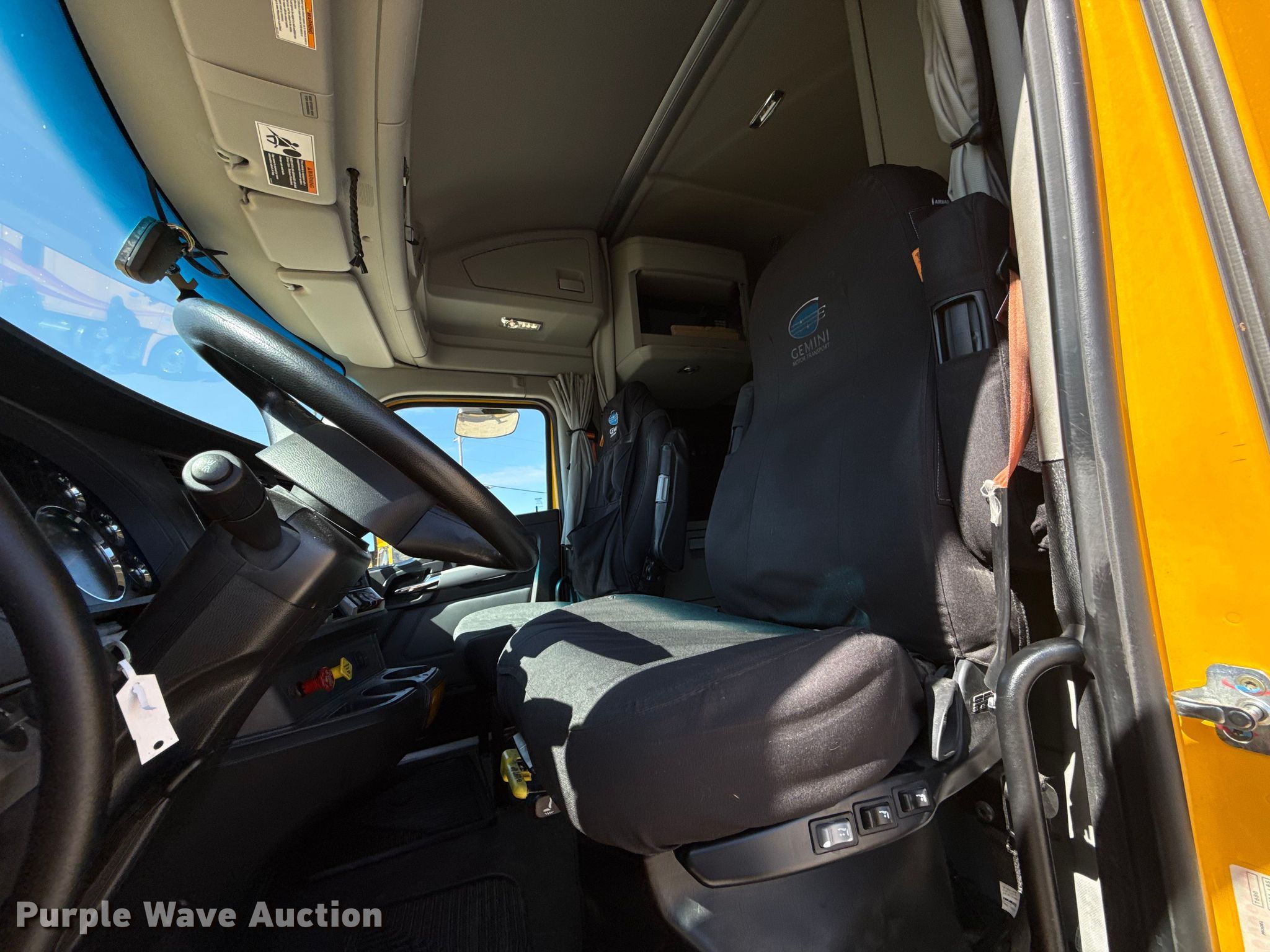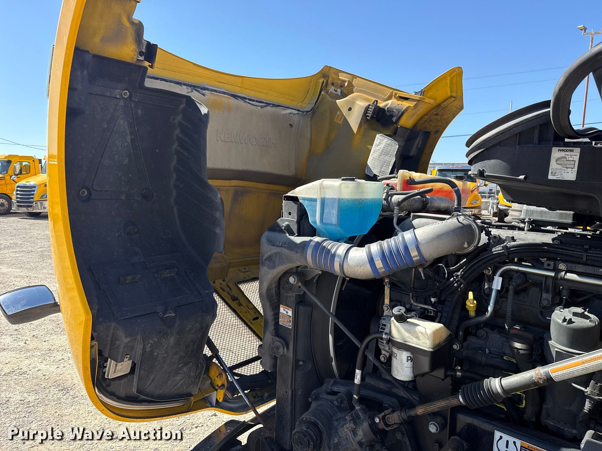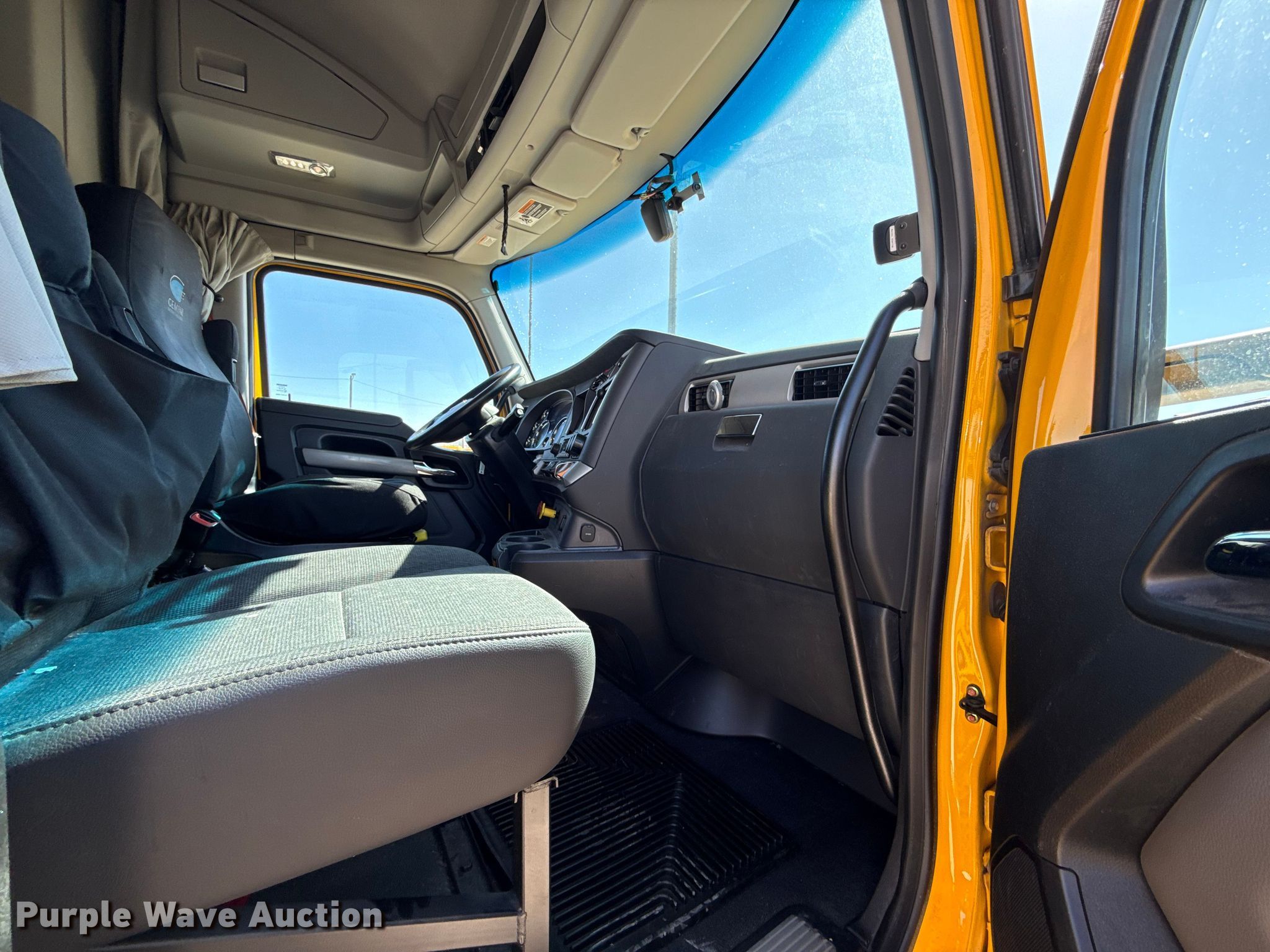 2022 Kenworth T680 semi truck. Miles: 358,142 on odometer, Hours: 16,912 on meter, VIN: 1XKYDP9X0NJ130463, Unit #: 22574. Engine Paccar MX-13, Serial: Y256822, Displacement: 12.9L, Cylinders: 6, Fuel type: Diesel, HP: 455, Engine brake. Transmission Automated manual. Chassis Axles: Tandem, Differential lock: Inter-axle, Suspension: Air Dump valves, Brakes: Air, GVWR: 50,500 lbs FAWR: 12,500 lbs, IAWR: 19,000 lbs, RAWR: 19,000 lbs. Interior AC, Heat, Heated mirrors, Power windows, Power locks, Cruise control, Air ride cab, Sleeper Sleeper length: 64", Beds: Single, Refrigerator, Microwave, Rear climate control. Features Deck plate: Aluminum, Fifth wheel type: Fixed, Fuel tank: Dual. Tires Front: 295/75R22.5, Rear: 445/50R22.5. Notes Dash warning indicator: Check engine, Windshield chipped or cracked. Oklahoma title. Title distribution may be delayed up to 30 days from verification of funds. Gemini Motor Transport. Oklahoma City, OK 73127