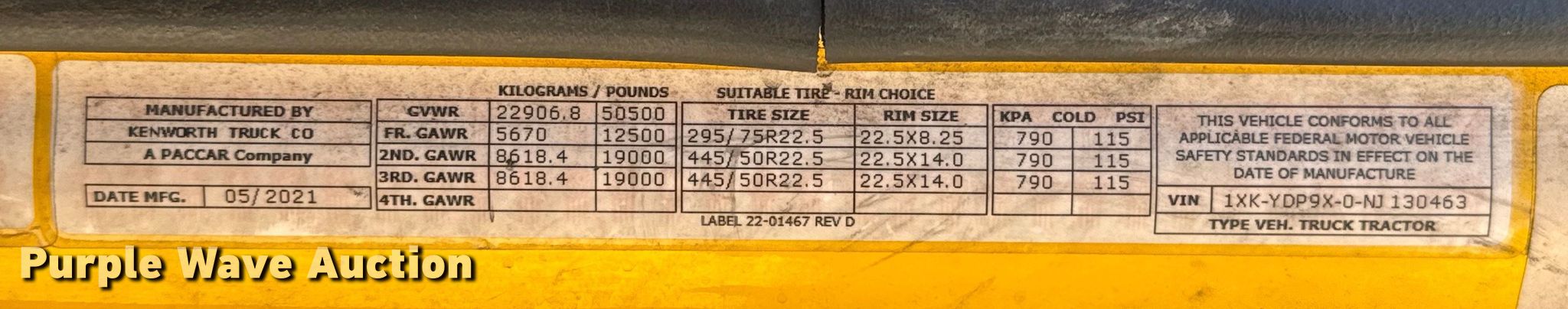 - VIN: 1XKYDP9X0NJ130463