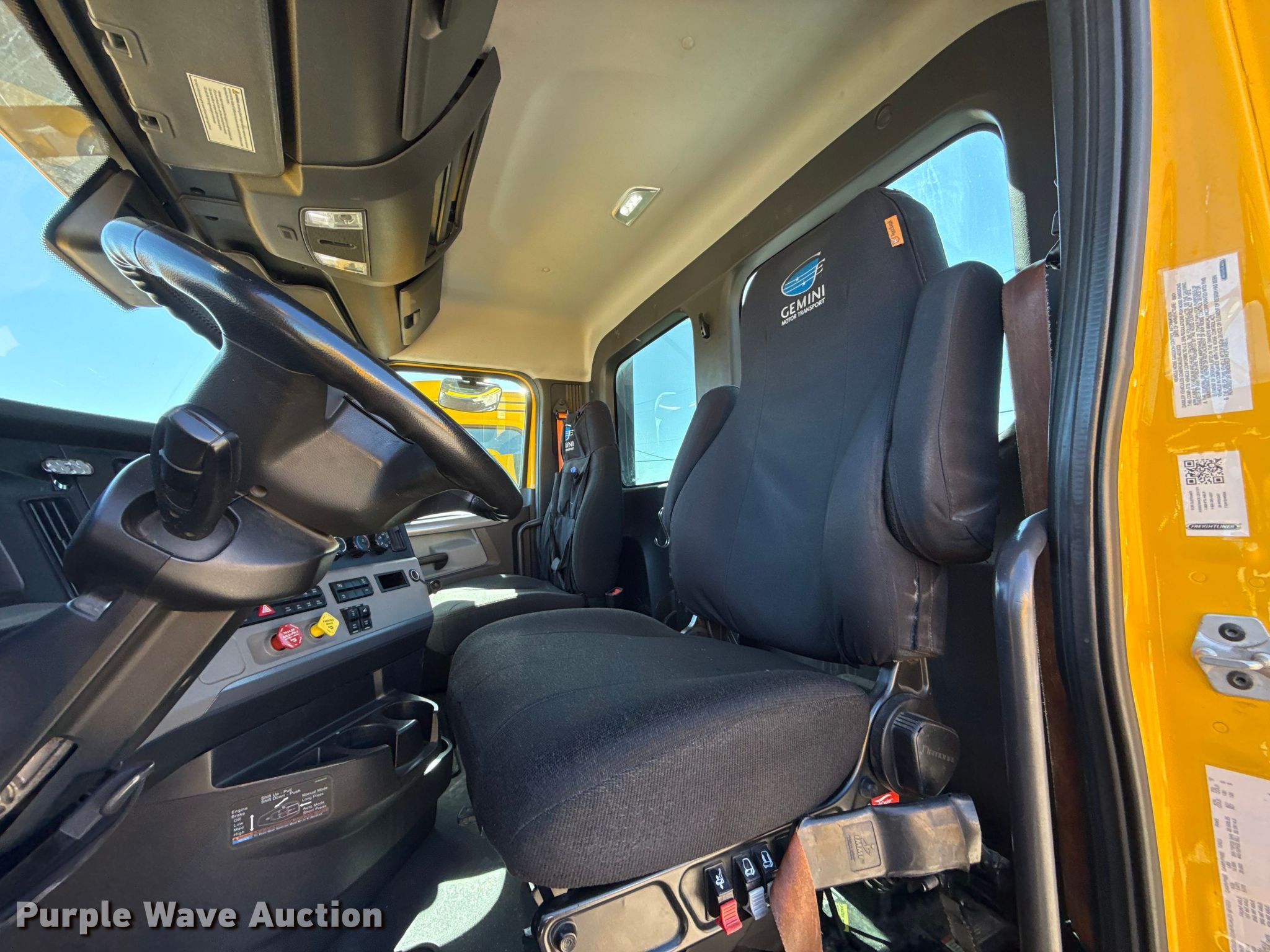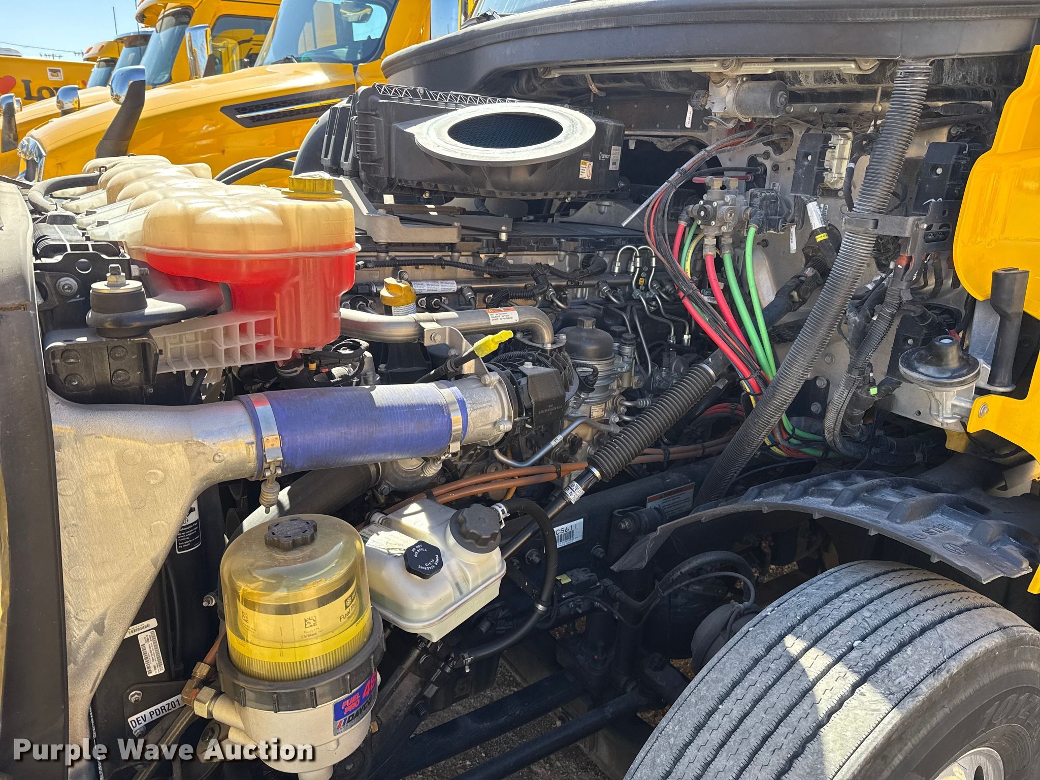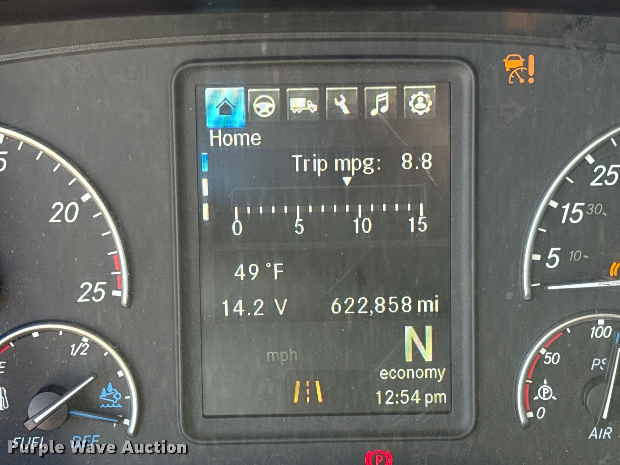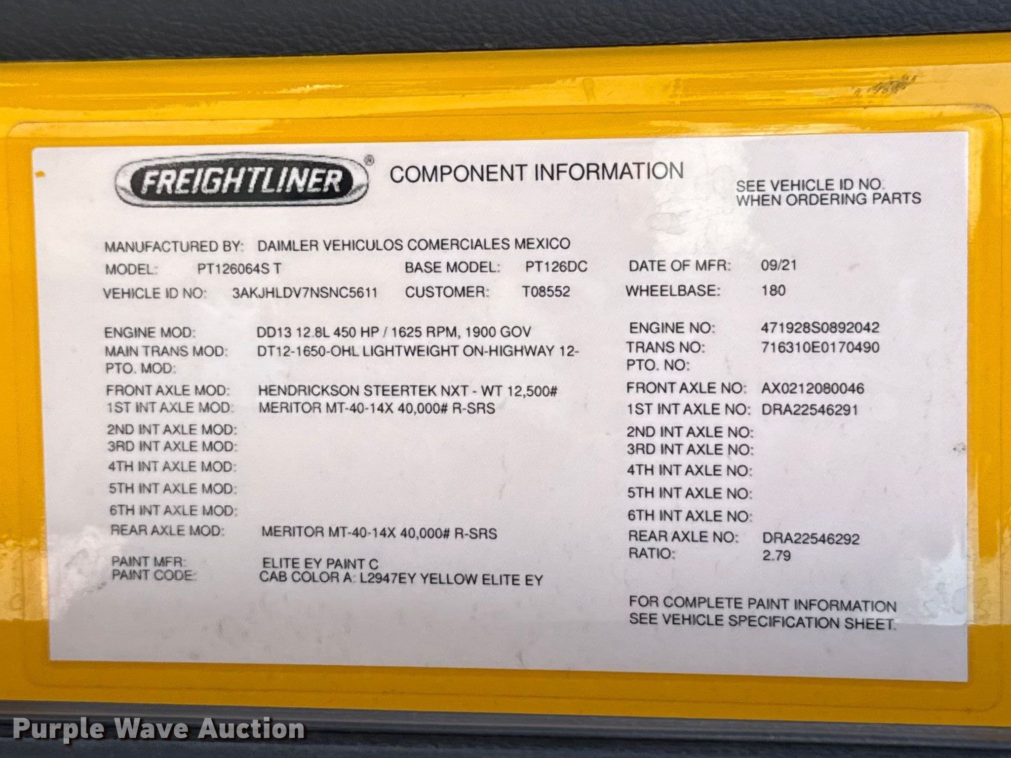 2022 Freightliner Cascadia 126 semi truck. Miles: 622,858 on odometer, Hours: 15,643 on meter, VIN: 3AKJHLDV7NSNC5611, Unit #: 22024. Engine Detroit Diesel DD13, Serial: 471928S0892042, Displacement: 12.8L, Cylinders: 6, Fuel type: Diesel, HP: 450, Engine brake. Transmission Automated manual. Chassis Axles: Tandem, Differential lock: Inter-axle, Suspension: Air Dump valves, Brakes: Air, GVWR: 52,500 lbs FAWR: 12,500 lbs, IAWR: 20,000 lbs, RAWR: 20,000 lbs, Wheelbase: 180". Interior AC, Heat, Heated mirrors, Power windows, Power locks, Cruise control, Air ride cab. Features Deck plate: Aluminum, Fifth wheel type: Fixed, Fuel tank: Single. Tires Front: 295/75R22.5, Rear: 445/50R22.5. Notes Dash warning indicator: Check engine, Adaptive cruise control unavailable, Active brake assist, Jump start required during on-site data collection. Oklahoma title. Title distribution may be delayed up to 30 days from verification of funds. Gemini Motor Transport. Oklahoma City, OK 73127