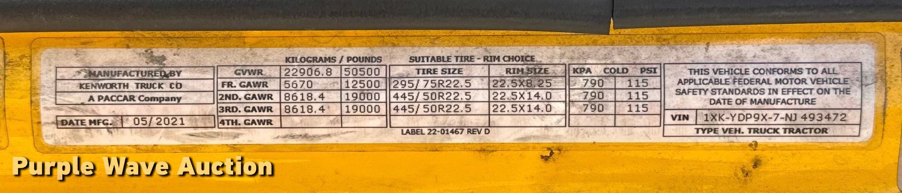 - VIN: 1XKYDP9X7NJ493472