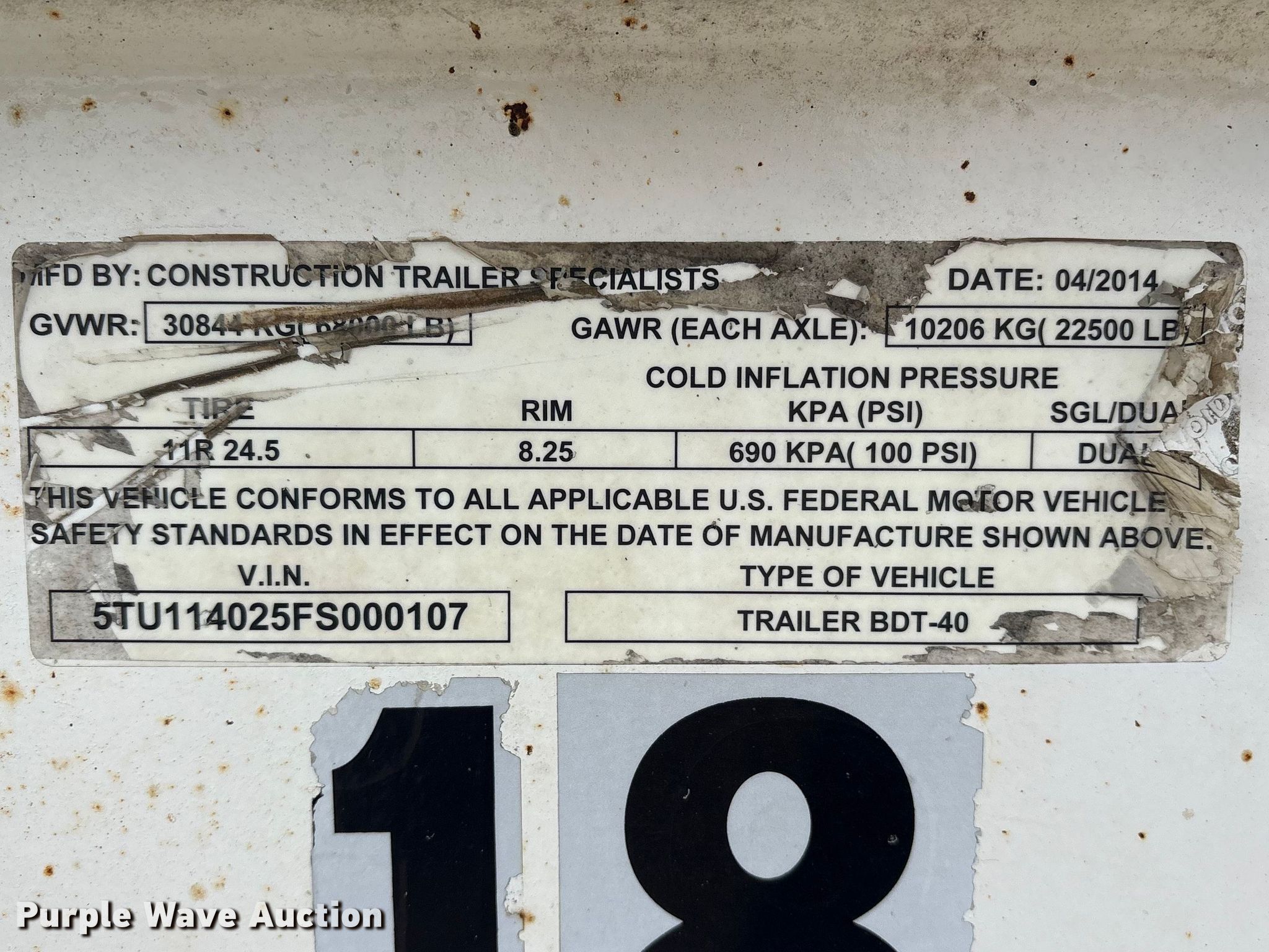 Purple Wave is selling a used End Dump Rock Trailer in Oklahoma. This item is a 2015 Construction Trailer Specialists BDT-40 Belly dump trailer with the following: VIN: 5TU114025FS000107, Unit #: 18