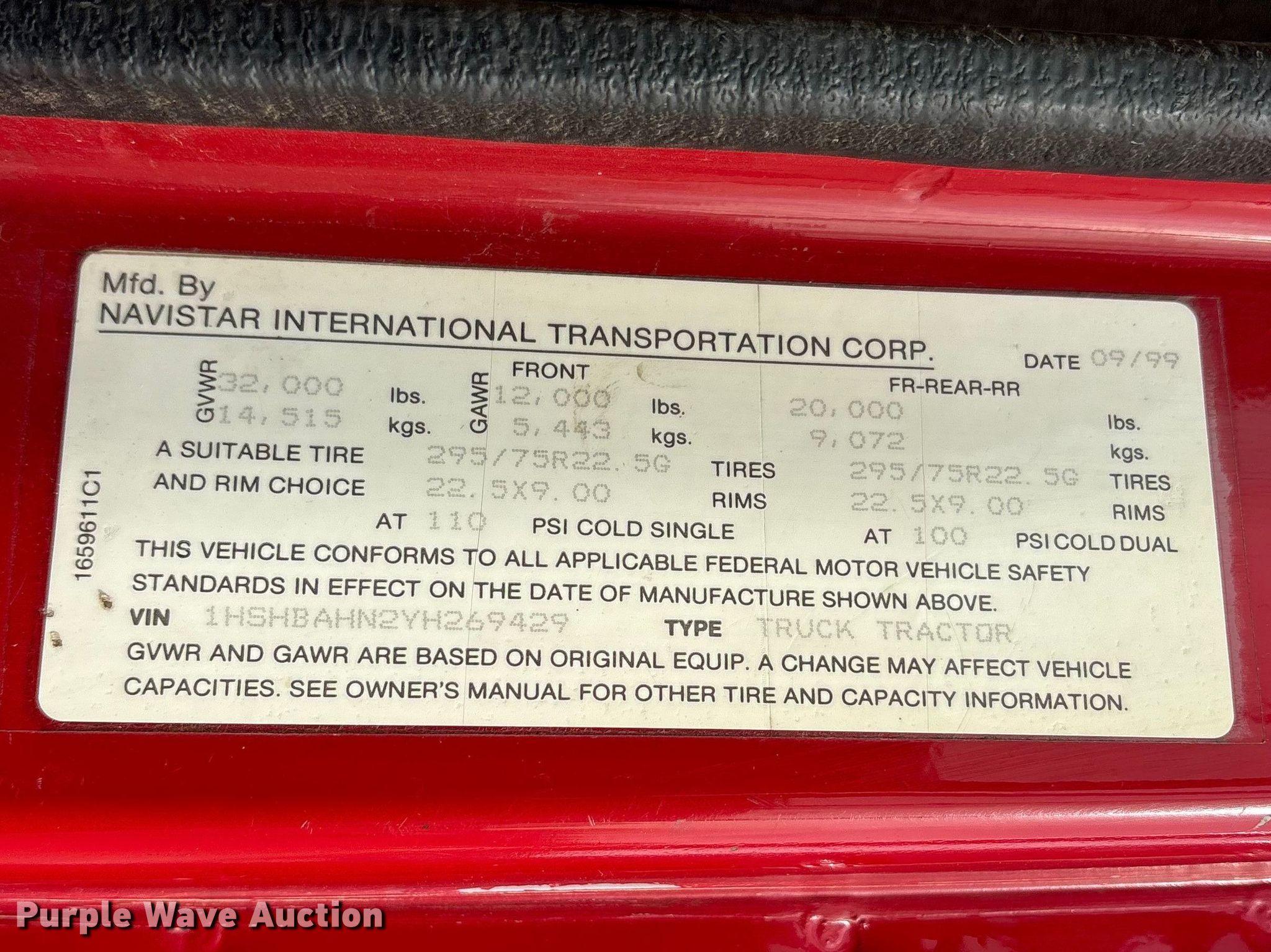 Purple Wave is selling a used Truck Tractor in Oklahoma. This item is a 2000 International 8100 semi truck with the following: Miles: 63,337 on odometer, VIN: 1HSHBAHN2YH269429
