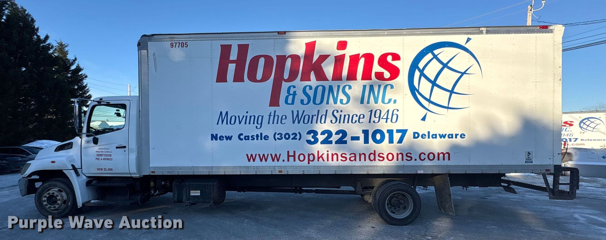 2008 Hino 268 box truck. Miles: 287,498 on odometer, VIN: 5PVNJ8JV082S51659. Engine Hino J08E-TV/TW, Displacement: 7.6L, Cylinders: 6, Fuel type: Diesel, HP: 220. Transmission Automatic. Chassis Axles: Single, Suspension: Air, Brakes: Air, GVWR: 25,500 lbs. Interior AC, Heat, Heated mirrors, Power windows, Cruise control. Features Bed Box bed, Morgan GVSD10326096, Serial: MPA08VB00500007, Length: 26', Width: 96", Height: 103", Slider ramp. Tires Size: 245/70R19.5. Notes Camera not included, Contents in bed not included, Decals will be removed prior to auction, Windshield chipped or cracked, Oil leak, Steering box issues, leaks, Box bed floor damaged, Possible injector issues, fuel residue. Delaware title. Title distribution may be delayed up to 14 days from verification of funds. Hopkins & Sons Inc. New Castle, DE 19720