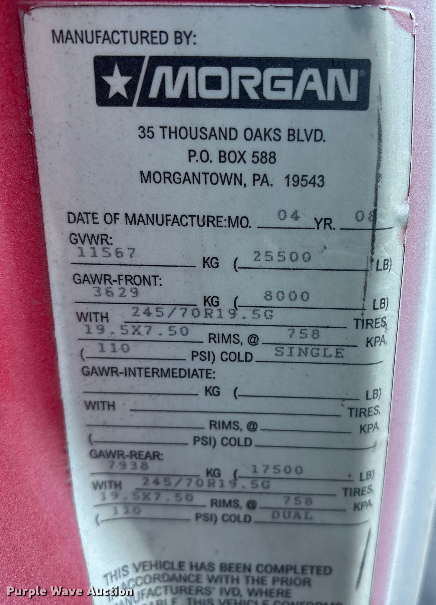 - GVWR: 25,500 lbs