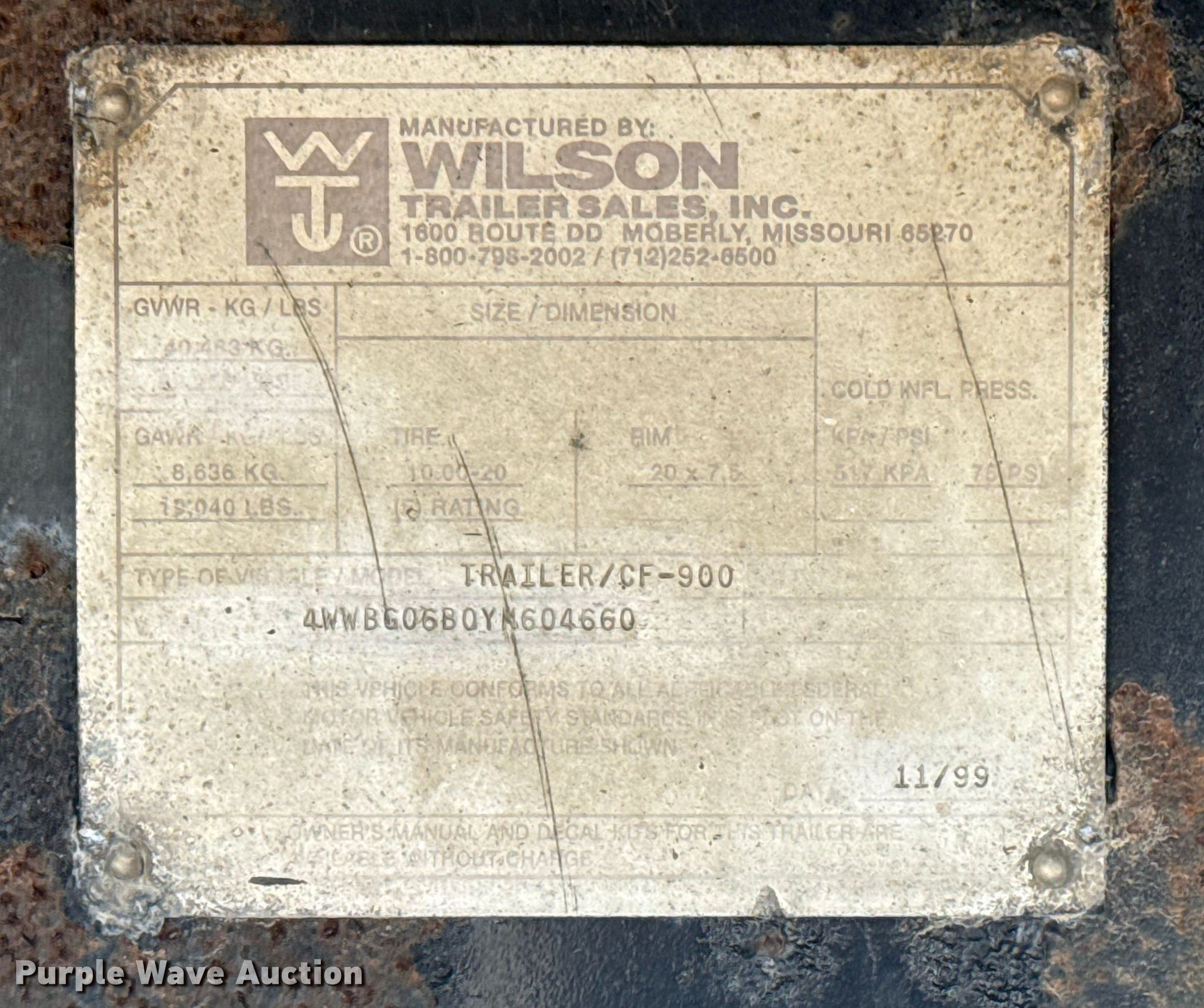 Purple Wave is selling a used Flat or Drop Deck Trailer in Oklahoma. This item is a 2000 Wilson CF-900 flatbed trailer with the following: VIN: 4WWBG06B0YM604660