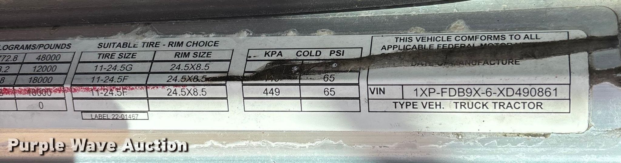 - VIN: 1XPFDB9X6XD490861