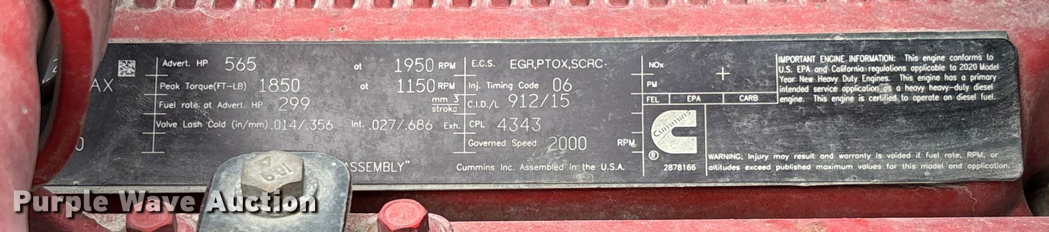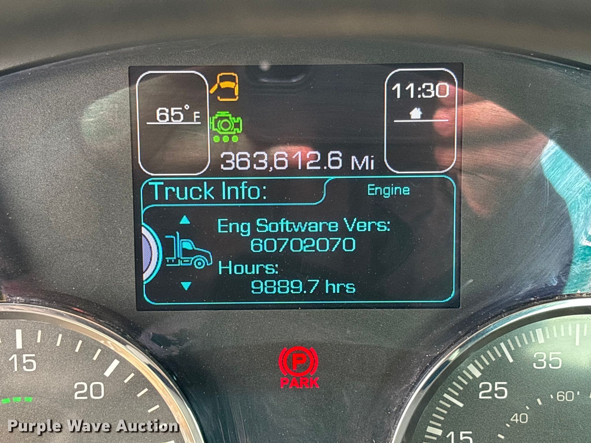 2021 Kenworth T880 semi truck. Miles: 363,613 on odometer, Hours: 9,890 on meter, VIN: 1XKZP4TX5MJ464876. Engine Cummins X15, Serial: 80287223, Displacement: 15.0L, Cylinders: 6, Fuel type: Diesel, HP: 565, Engine brake. Transmission Eaton Fuller RTLO2091, Manual, Speed: 18. Chassis Axles: Triple, Pusher axle Steerable, Differential lock: Full, Suspension: Air Dump valves, Brakes: Air, PTO, Wet kit, Truck chassis: 21' 8", GVWR: 84,500 lbs FAWR: 20,000 lbs, RAWR: 46,000 lbs, Lift axle GAWR: 18,500 lbs, Wheelbase: 272". Interior AC, Heat, Heated mirrors, Power windows, Power locks, Cruise control, Air ride cab, Auxiliary controls, Brake controller. Features Deck plate: Aluminum, Fifth wheel type: Air operated, Sliding, Fuel tank: Dual. Tires Front: 425/65R22.5, Rear: 11R24.5, Lift axle: 425/65R22.5. Notes Windshield chipped or cracked. Missouri title. Title distribution may be delayed up to 30 days from verification of funds. Capital Railroad Contracting Inc... Columbia, MO 65201