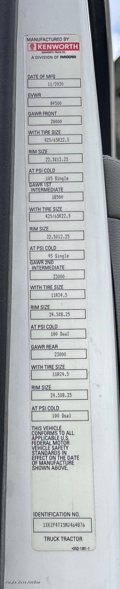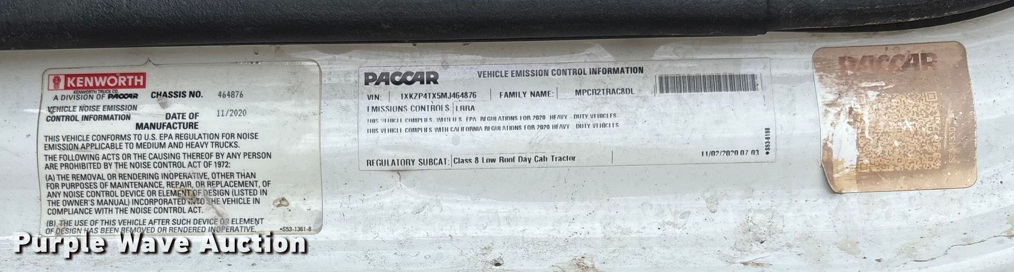 Purple Wave is selling a used Truck Tractor in Missouri. This item is a 2021 Kenworth T880 semi truck with the following: Miles: 363,613 on odometer, Hours: 9,890 on meter, VIN: 1XKZP4TX5MJ464876