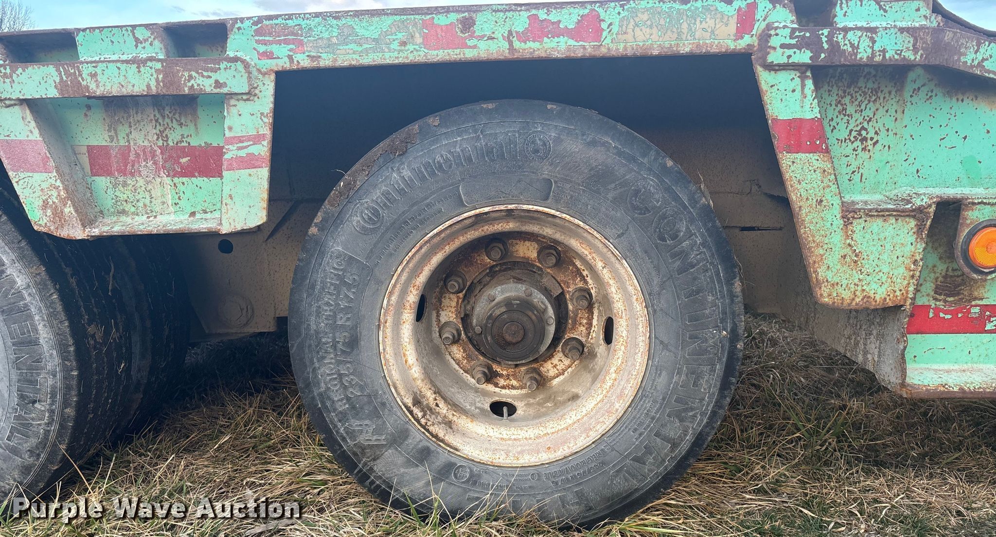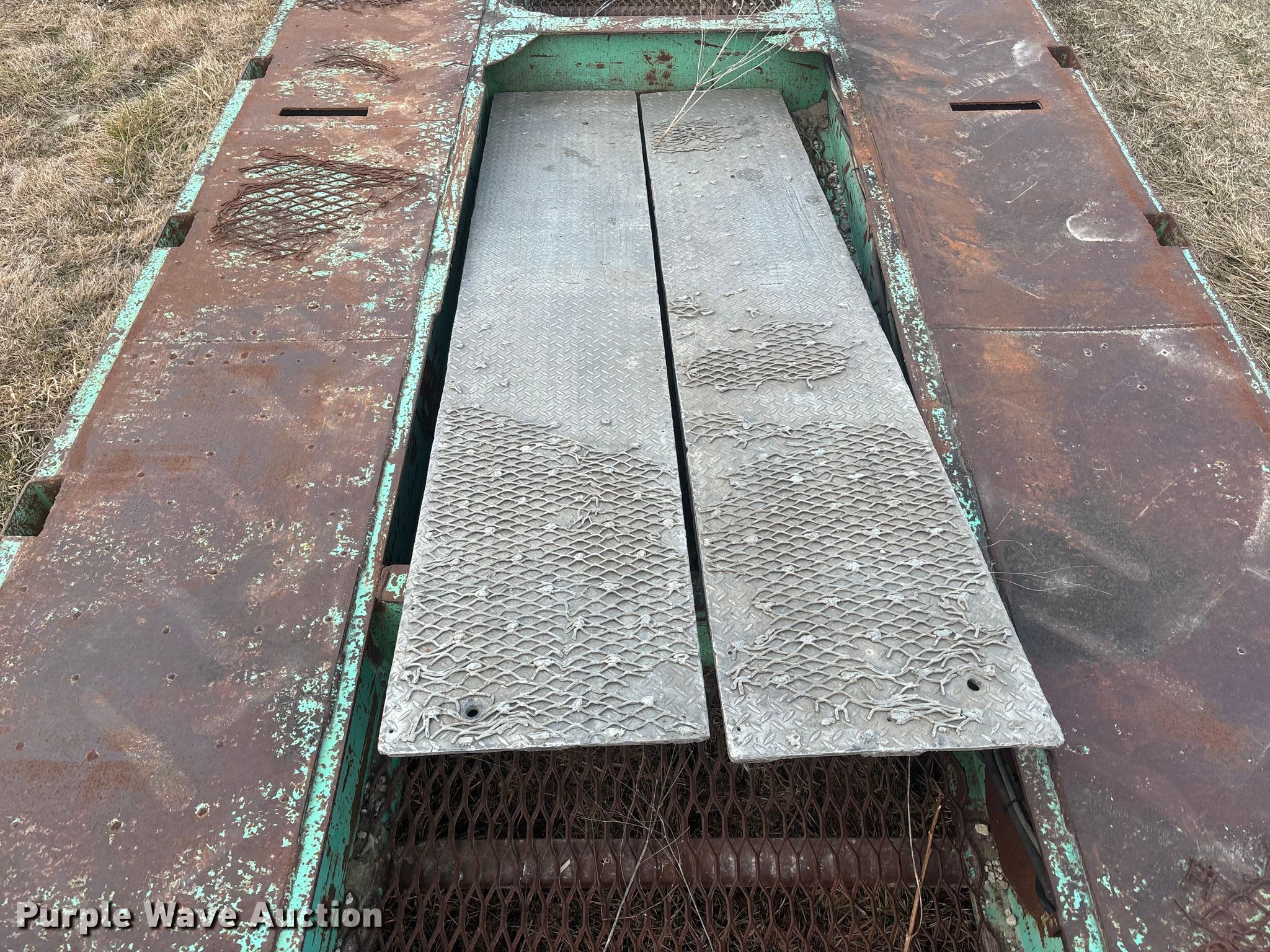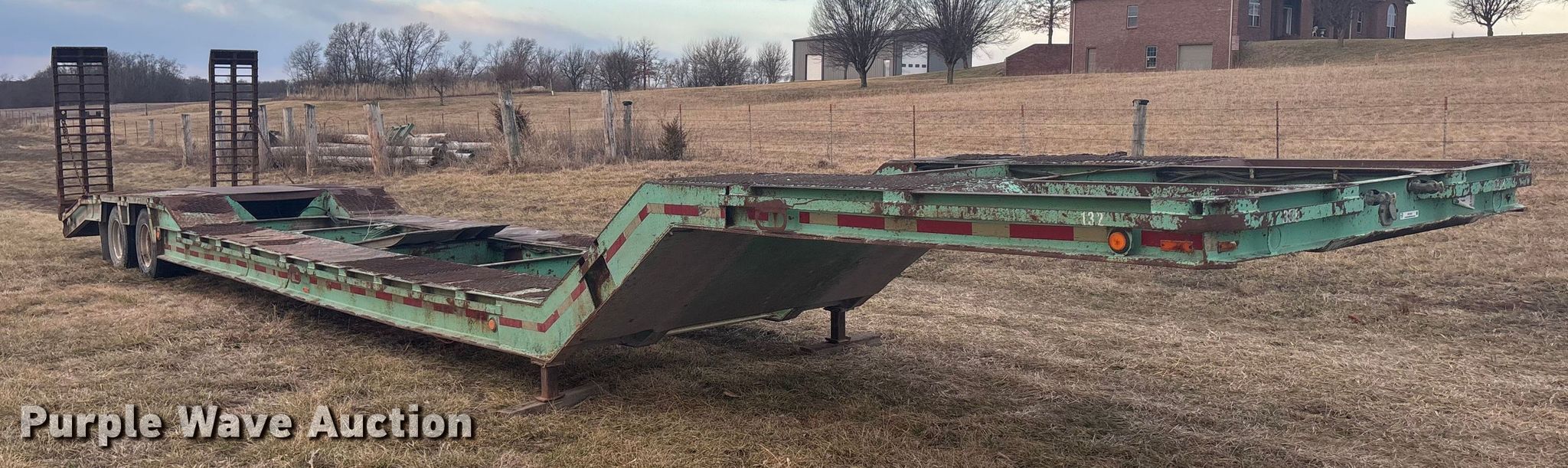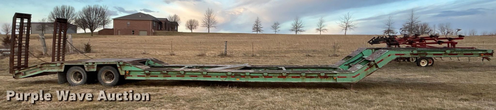 1987 Shop Built double drop deck equipment trailer. VIN: T064830. Dimensions Overall Length: 52' 8", Width: 96", Deck Length: 23', Width: 96", Top deck length: 10' 2", Rear deck length: 13' 5", Ramps: Manual Length: 82". Features Deck type: Steel. Chassis Landing gear: Dual, Suspension: Air, Brakes: Air, Axles: Tandem. Tires Steel wheels, Size: 235/75R17. Notes Chains and binders not included. Missouri title. Title distribution may be delayed up to 14 days from verification of funds. Kurtis Grier Farms. Gower, MO 64454