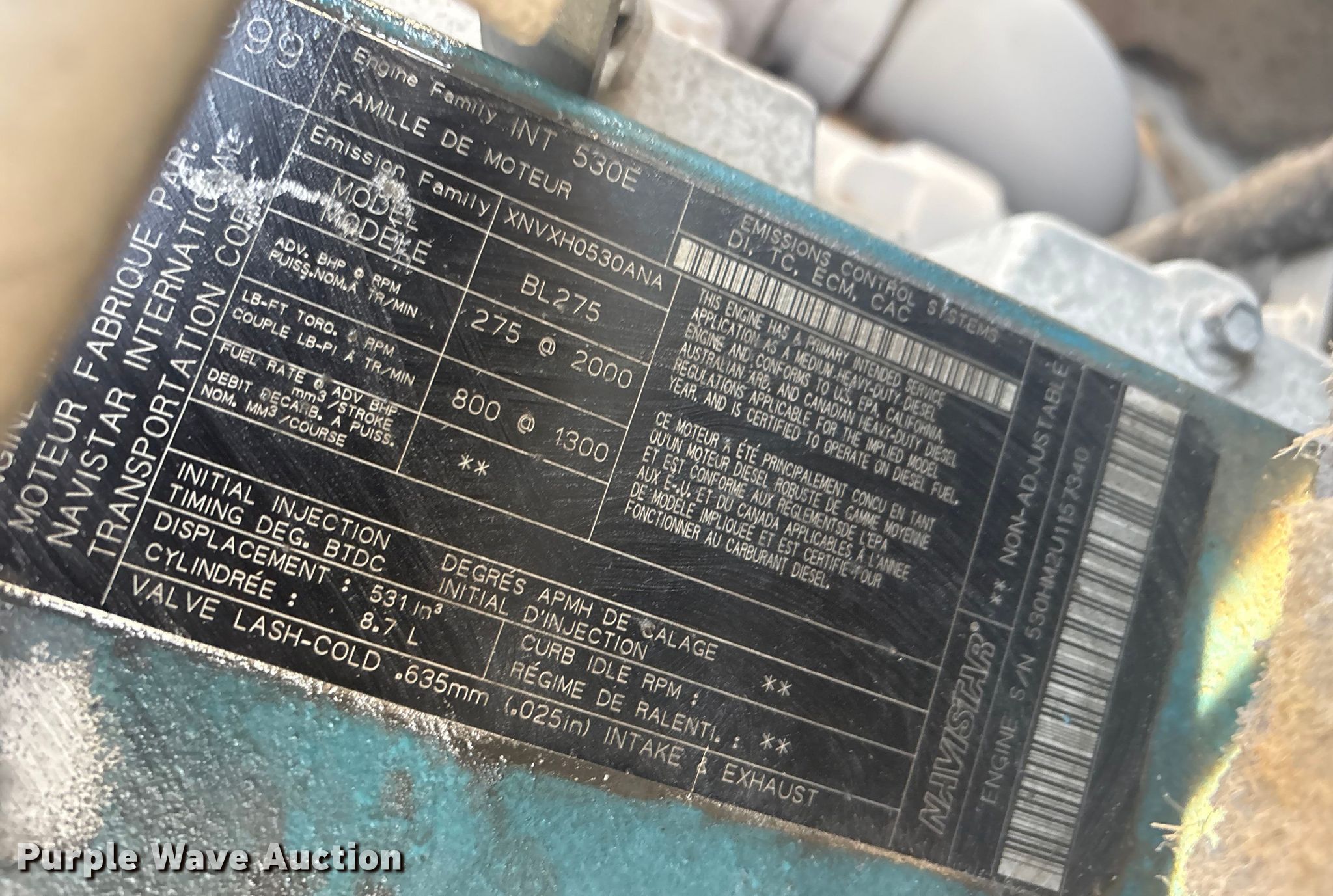 1999 International 4900 semi truck. Miles: 106,953 on odometer, Hours: 6,809 on meter, VIN: 1HSSDADN7XH218495. Engine International BL275, Serial: 530HMU21157340, Displacement: 8.69L, Cylinders: 6, Fuel type: Diesel. Transmission Spicer, Manual, Speed: 7. Chassis Axles: Single, Suspension: Spring, Brakes: Air, GVWR: 32,000 lbs FAWR: 12,000 lbs, RAWR: 20,000 lbs, Wheelbase: 140". Interior AC, Heat, Cruise control. Features Deck plate: Aluminum, Fifth wheel type: Fixed, Fuel tank: Single. Tires Size: 11R22.5. Notes Dash warning indicator: ABS. Oklahoma title. Title distribution may be delayed up to 14 days from verification of funds. Tulsa, OK 74115