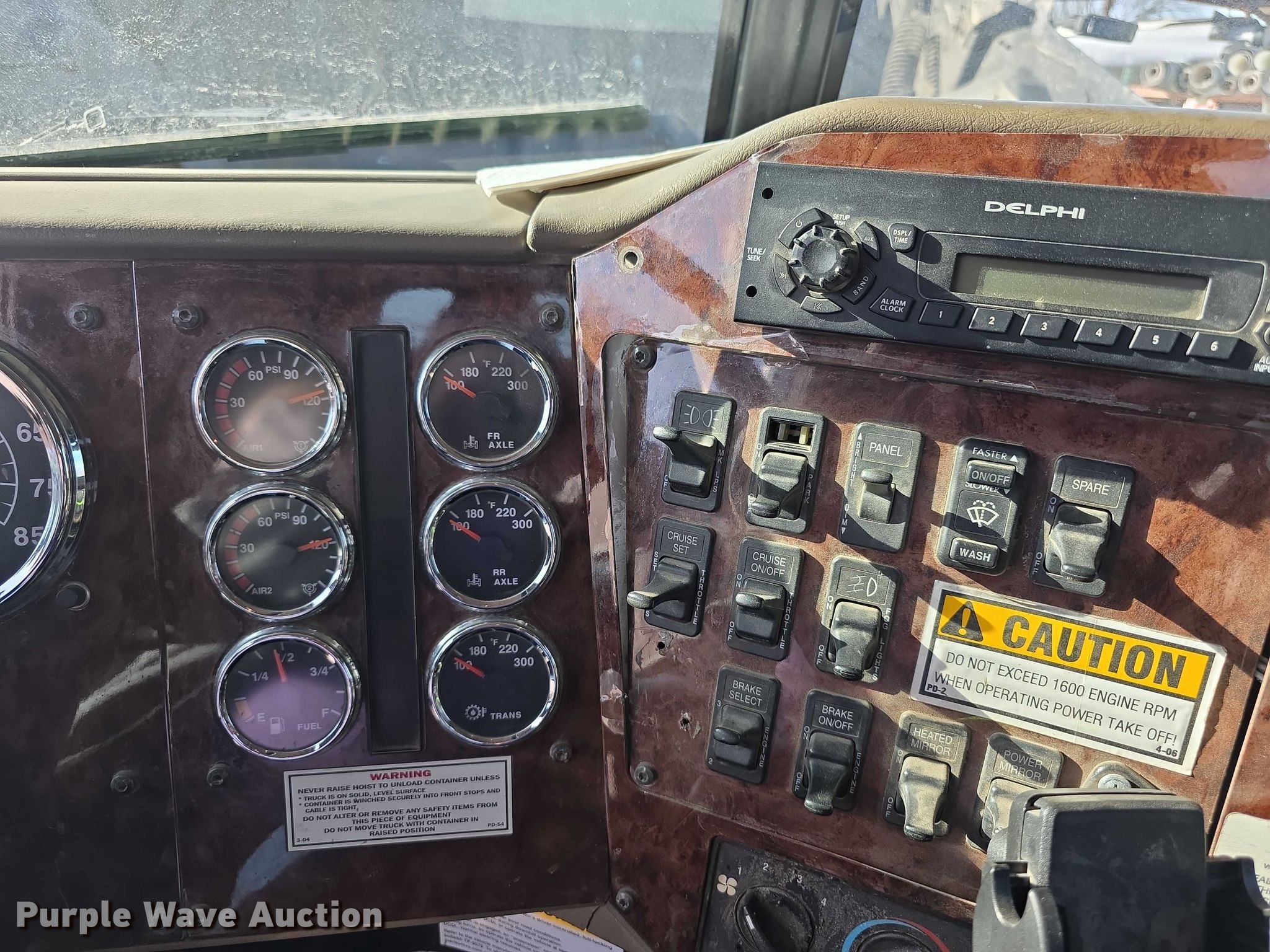 2007 International 5900i roll-off container truck. Miles: 554,342 on odometer, Hours: 20,525 on meter, VIN: 1HTXRSCT47J526001. Engine Caterpillar C15, Displacement: 15.2L, Cylinders: 6, Fuel type: Diesel. Transmission Eaton Fuller, Manual, Speed: 18. Chassis Axles: Tandem, Suspension: Spring, Differential lock: Inter-axle, Brakes: Air, PTO, GVWR: 86,000 lbs, Wheelbase: 274". Interior AC, Heat, Heated mirrors, Power windows, Power locks, Cruise control. Features Bed Roll-off bed, FalFab NOR75174T118, Serial: 1855, Length: 22', Width: 8' 6", Ram: Dual, Winch. Tires Front: 385/65R22.5, Rear: 11R24.5. Notes Dash warning indicator: ABS, Faults 3, Windshield chipped or cracked, Non-operational roll tarp. Missouri title. Title distribution may be delayed up to 14 days from verification of funds. JR & Co., Inc.. Kansas City, MO 64108