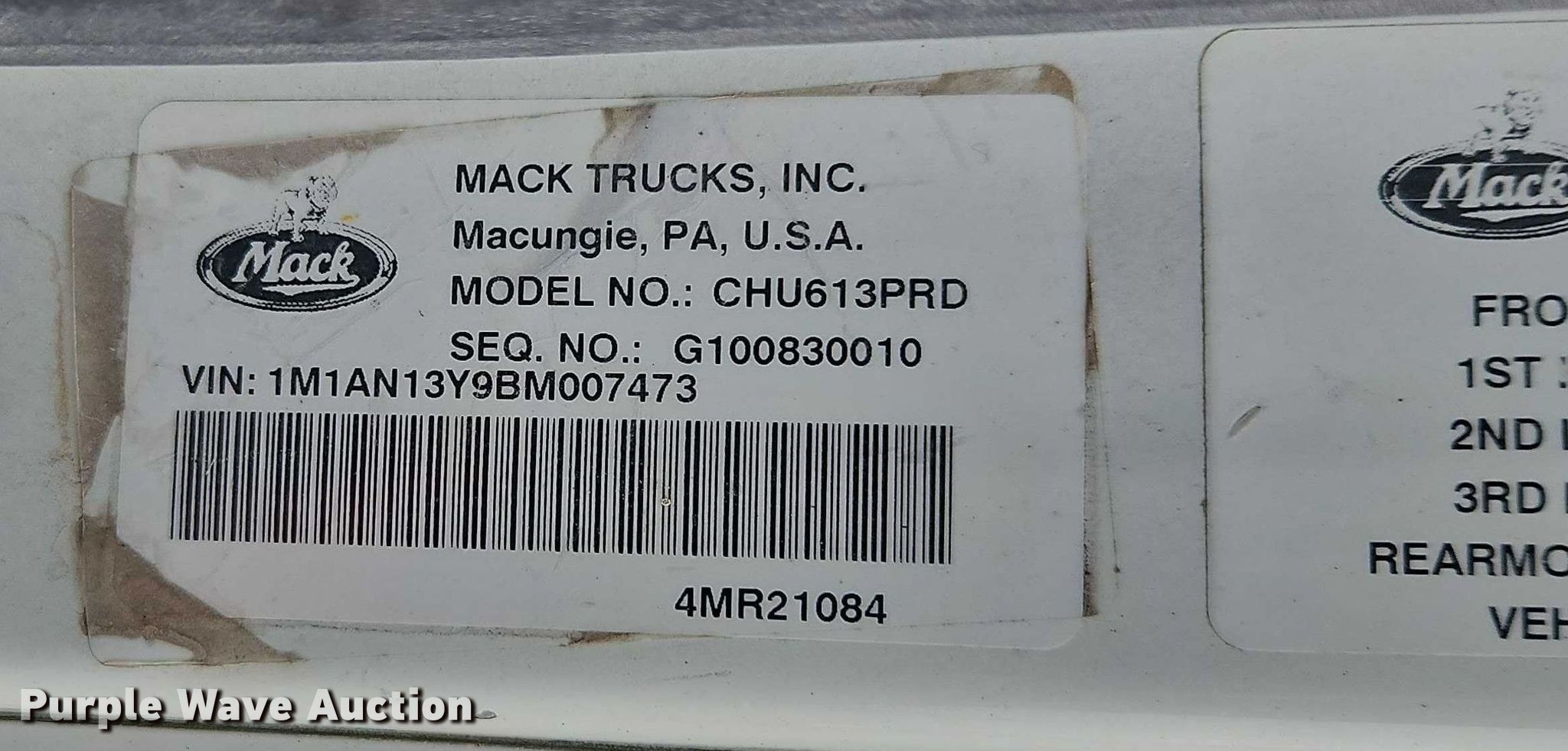 Take a look at this used 2011 Mack CHU613 semi truck being sold on March 19th, 2026 in the Thursday March 19 Truck and Trailer Auction made by Mack. Take a look at all of the item information below or take a look at similar auctions for Trucks.