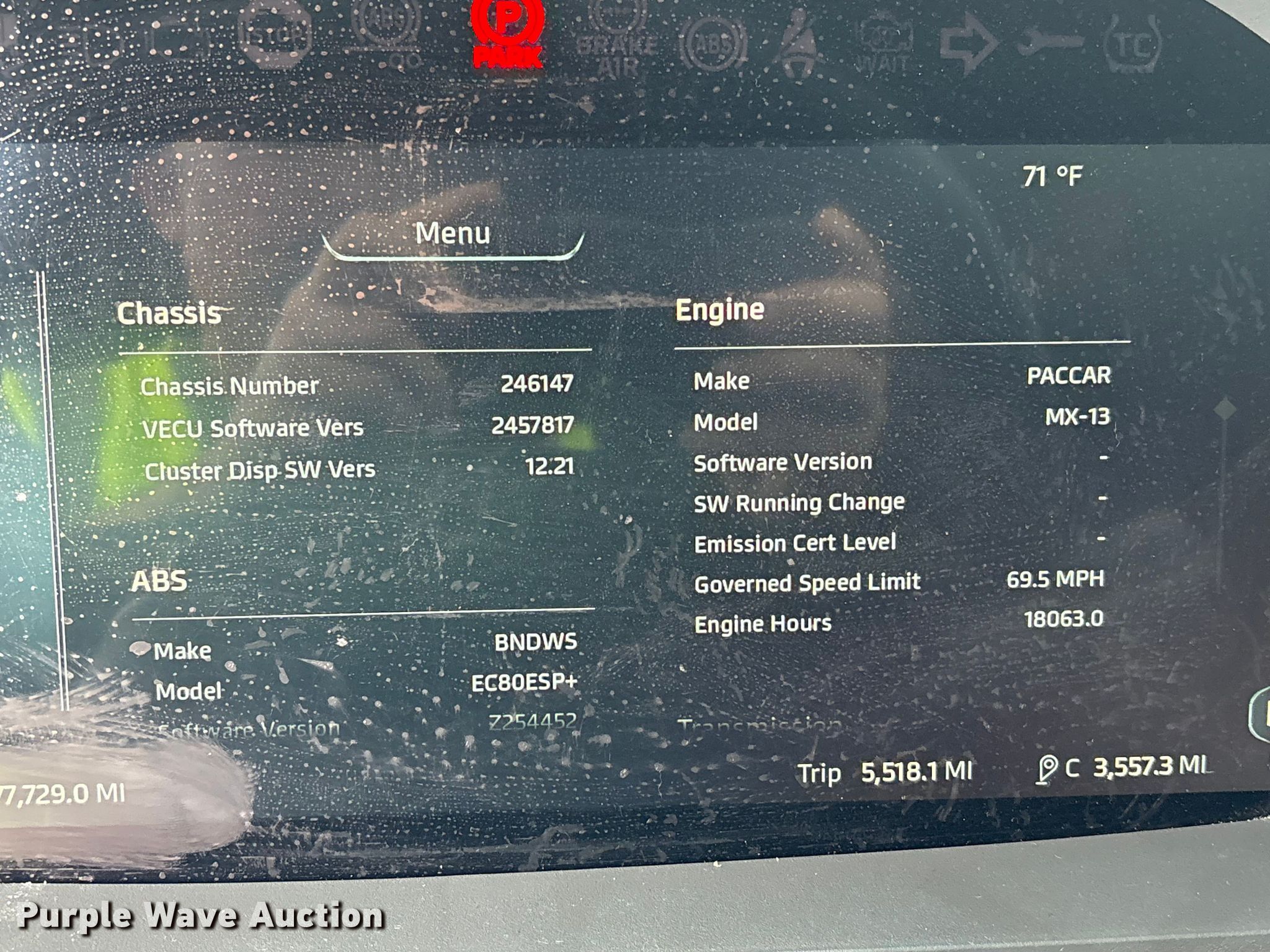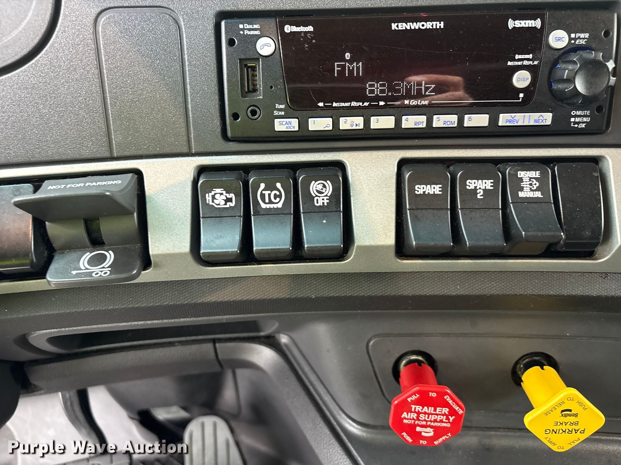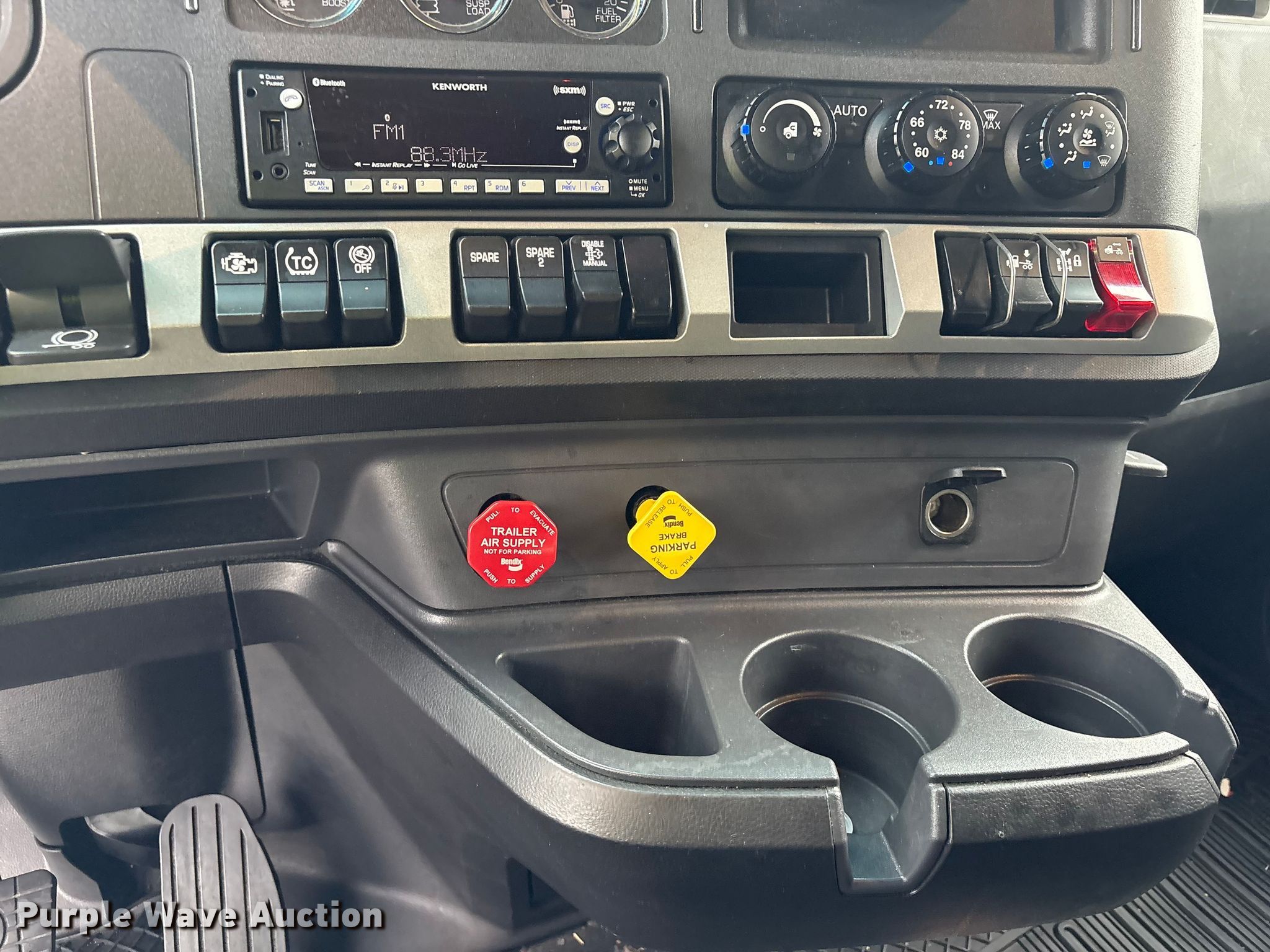 2023 Kenworth T680 semi truck. Miles: 577,729 on odometer, Hours: 18,063 on meter, VIN: 1XKYDP9X7PJ246147, Unit #: 92055225. Engine Paccar MX13, Displacement: 12.9L, Cylinders: 6, Fuel type: Diesel, Engine brake. Transmission Automated manual. Chassis Axles: Tandem, Gear ratio: 2.64, Differential lock: Inter-axle, Suspension: Air Dump valves, Brakes: Air, Truck chassis: 13' 6", GVWR: 55,350 lbs FAWR: 12,350 lbs, RAWR: 40,000 lbs. Interior AC, Heat, Power windows, Power locks, Cruise control, Air ride cab, Brake controller, Sleeper Sleeper length: 48", Beds: Double bunk, Refrigerator, Rear climate control. Features Deck plate: Aluminum, Fifth wheel type: Air operated, Sliding, Fuel tank: Dual. Tires Size: 295/75R22.5. Repossessed item, stored at a secured facility. Please review REQUIRED REMOVAL INSTRUCTIONS. Titles will be distributed after confirmation of payment and removal. Indiana title. Title distribution may be delayed up to 30 days from verification of funds. Lender Owned. 3352 West Orange Blossom Trail. Apopka, FL 32703